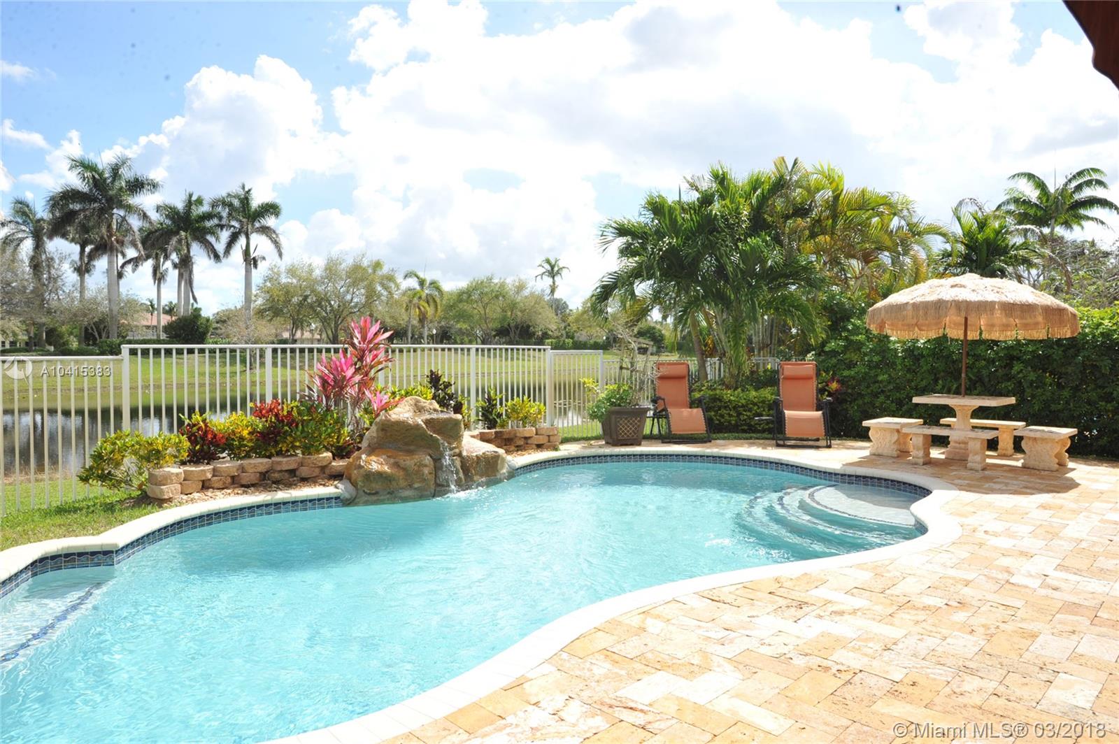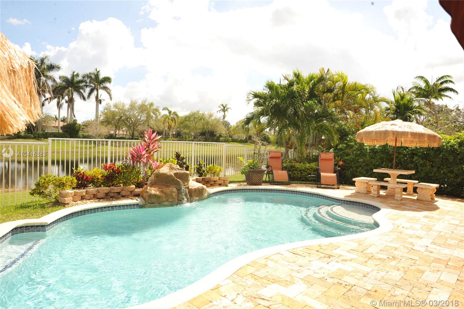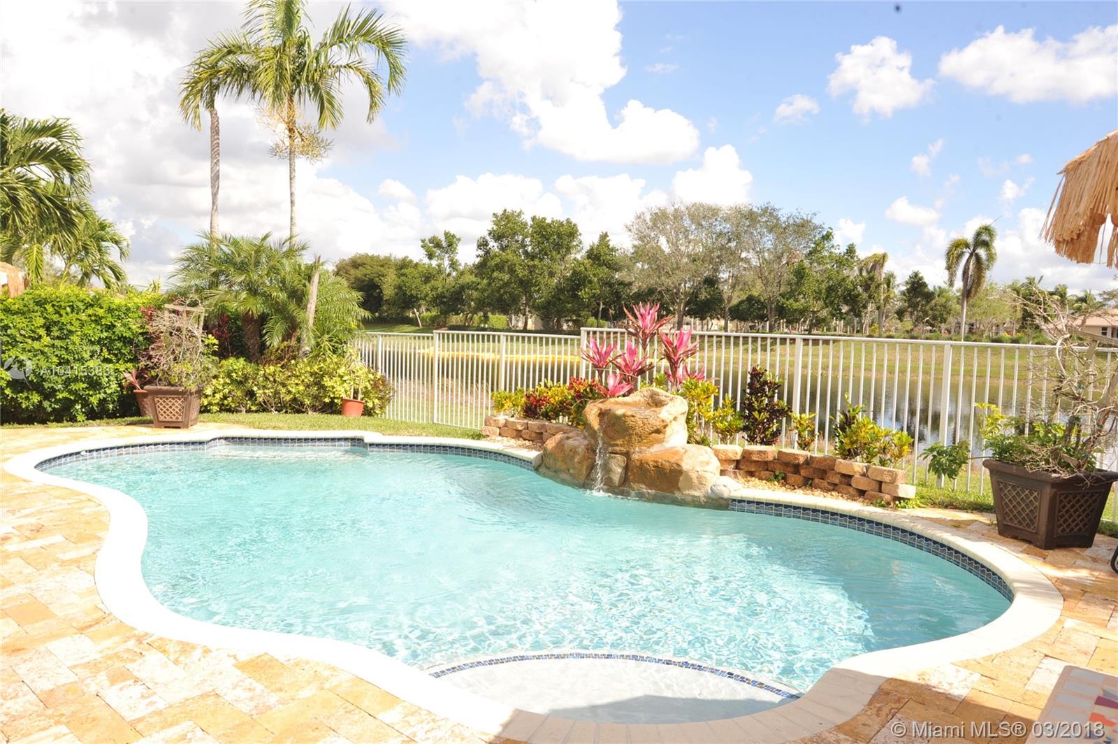 Stunning lakefront home, 5 full bedrooms, 4 full baths plus 6 BR could be office or den off spacious master bedroom suite. Completely remodeled kitchen- granite counter tops. Separate breakfast area. Huge family room, new designer flooring thru-out. Formal dining room. 1 Bedroom downstairs. could be in-laws or maids room. Pool built 2012. Huge patio for entertaining. Roll down hurricane shutters on 2nd floor. very private, No backyard neighbors, on cul-de-sac street. A+ schools. a pleasure to show.