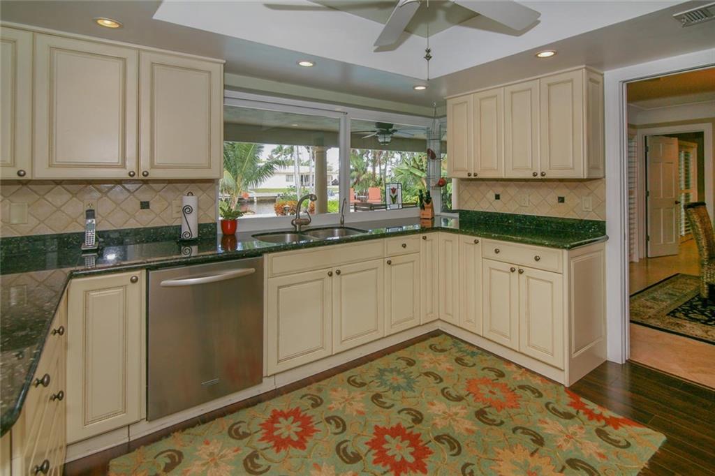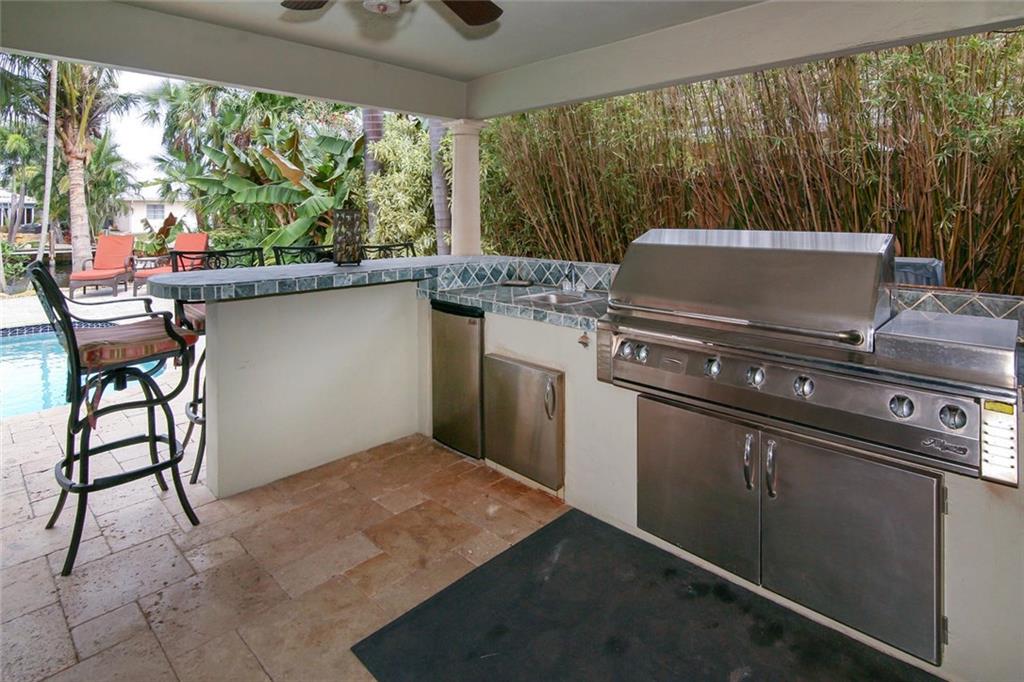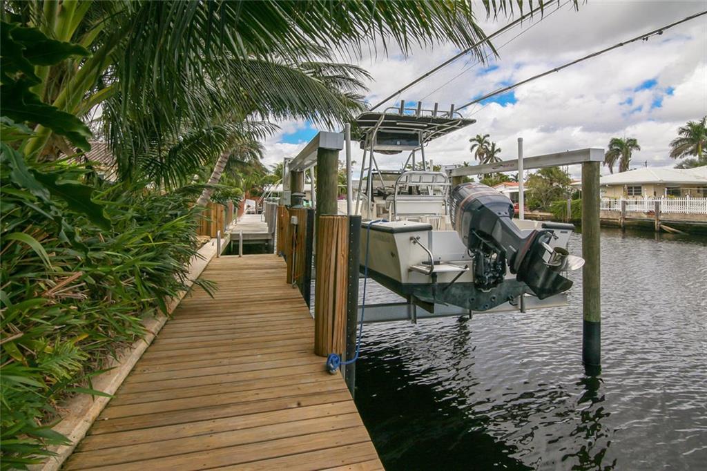 Beautiful waterfront home in desirable Lake Estates, Ft Lauderdale! Completely renovated, 4/3 split floor plan. Gorgeous kitchen with wood cabinetry, granite and SS appliances. Saturnia marble & wood laminate flooring throughout. Tastefully updated bathrooms. Backyard is a private, tropical oasis with luscious landscaping, marble pavers & summer kitchen/BBQ. Impact glass windows & doors. Roof 2013. AC 2016. 80' Dock with Boat Lift capacity up to 15k lbs.