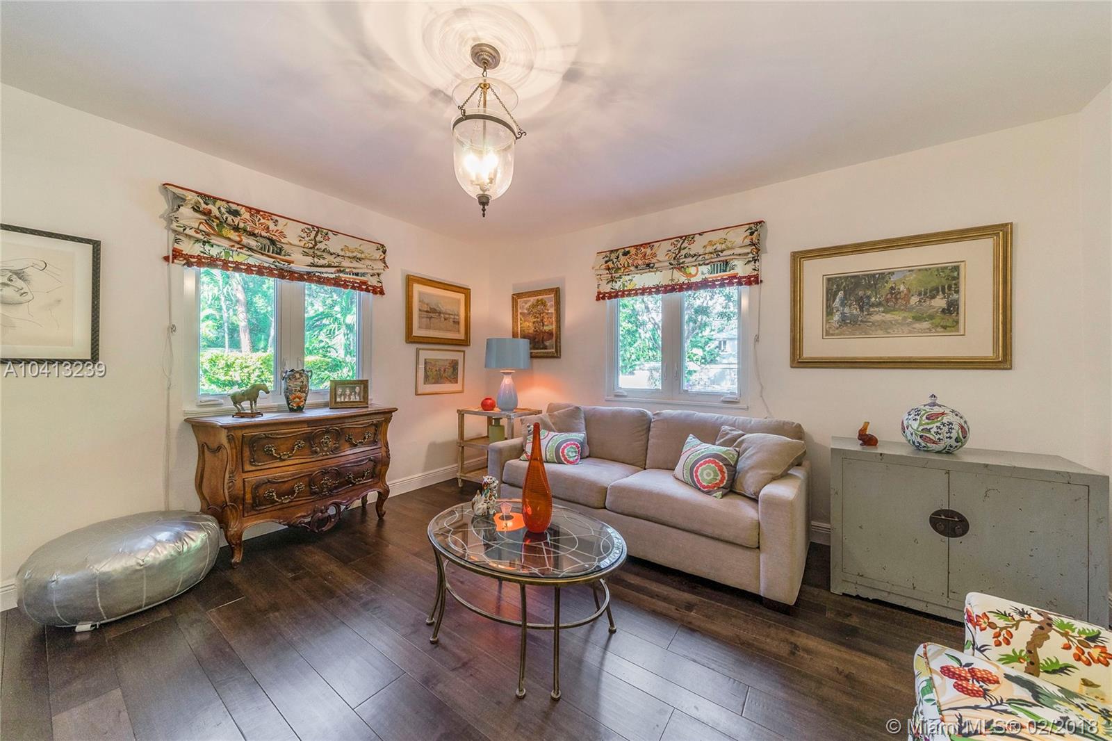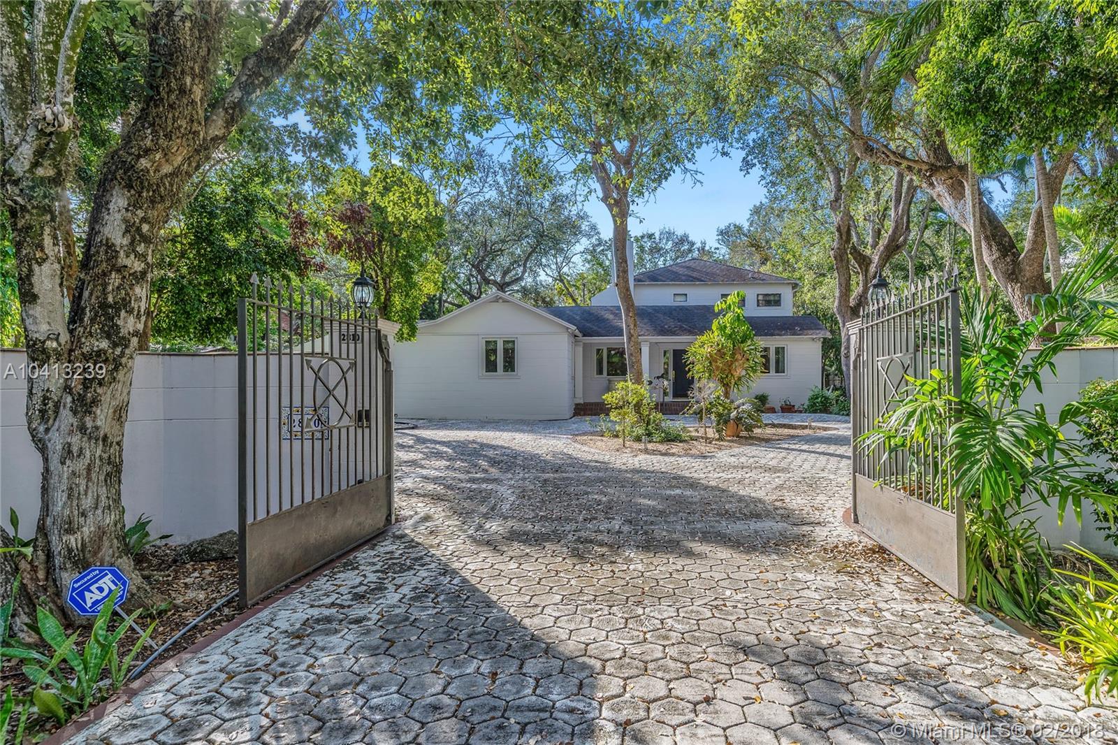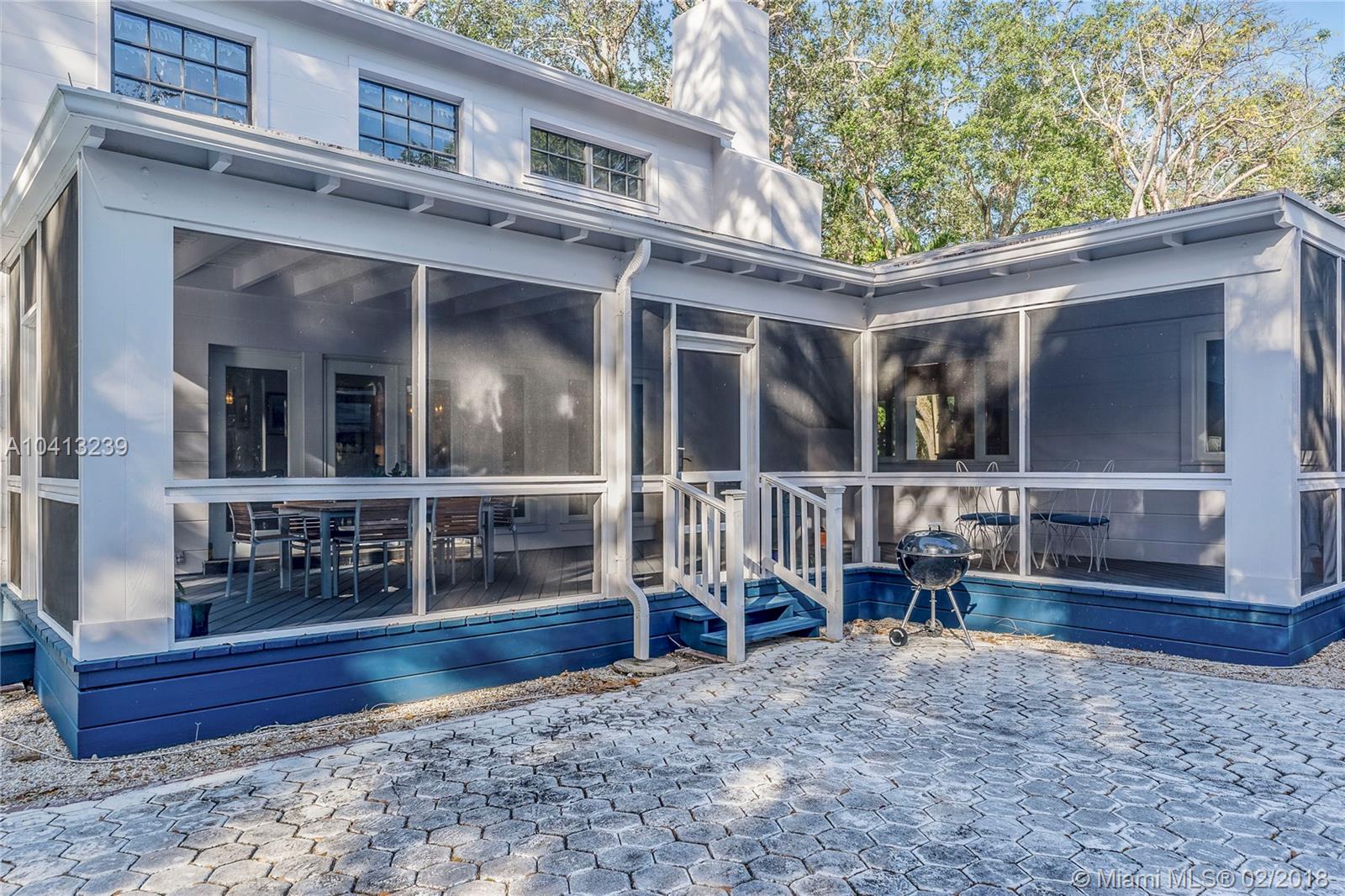 A rare find on the most beautiful Oak lined street in Coconut Grove, just a few minutes walk to Ransom, Kennedy Park and the water. On 18,000 square feet, tucked behind walls and gates, the two bedrooms downstairs have their own baths. The second floor is devoted entirely to the Master and its sitting room. The living room has a large stone fireplace and a peaked beam ceiling. The flow of the house is spacious, with the kitchen open to the family room that leads to the patio and pool. Excludes chandeliers and sconces