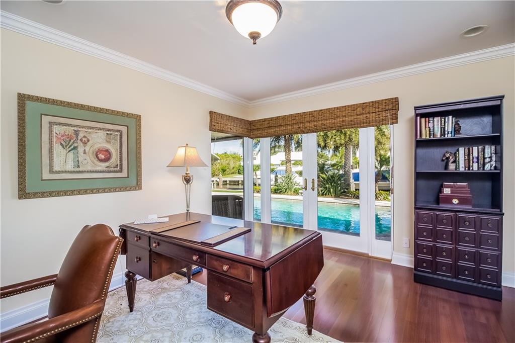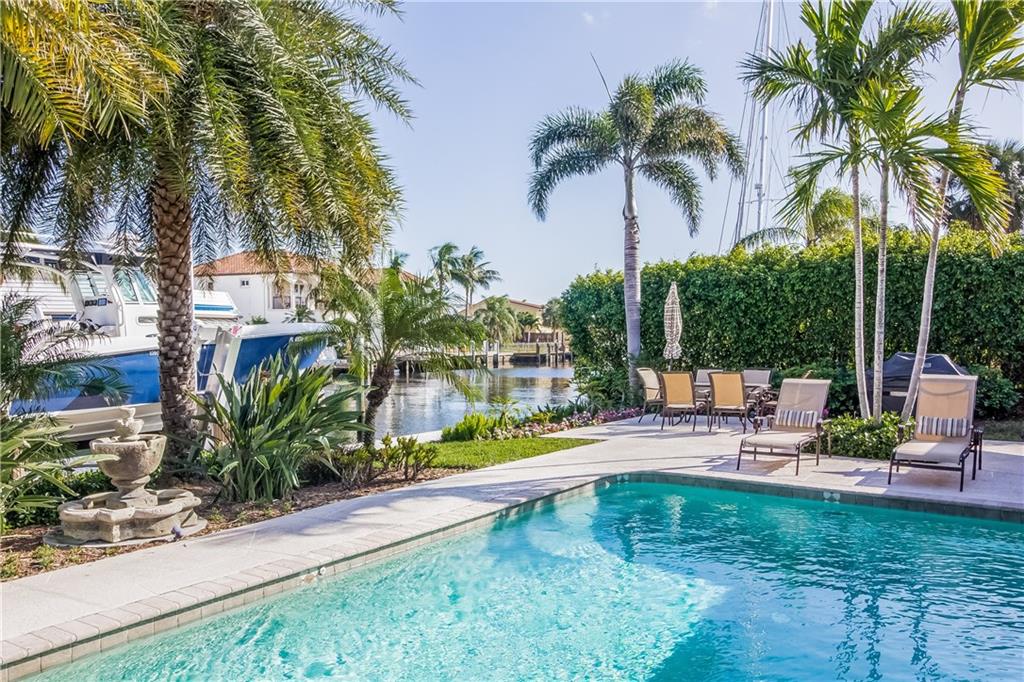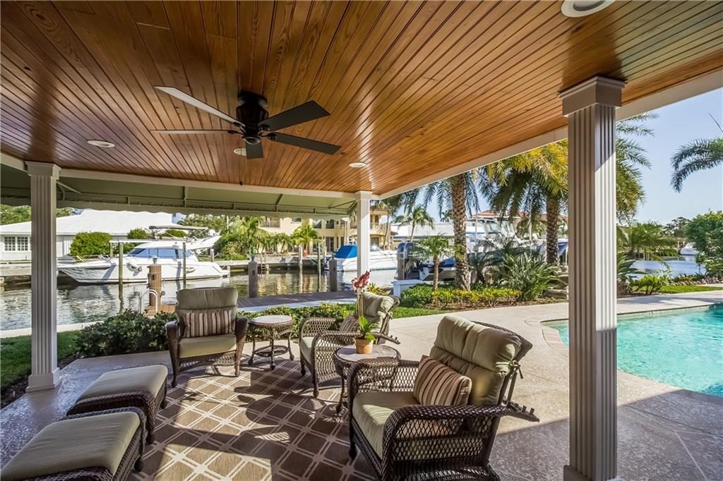 Elegant home boasting rare 145 ft. of deepwater on Bird's Bay Canal. Large 4/4 has two private offices,gourmet kitchen featuring natural gas & large granite island opening to wonderful family room & covered lanai.Magnificent pool & yard with southeast breezes. New dock, raised seawall and 17,000 lb. lift create a boater's paradise!Home has many updates including impact windows & doors,wood floors in living room & master suite.Gorgeous curb appeal,tucked away in cul-de-sac creating the ultimate in privacy!