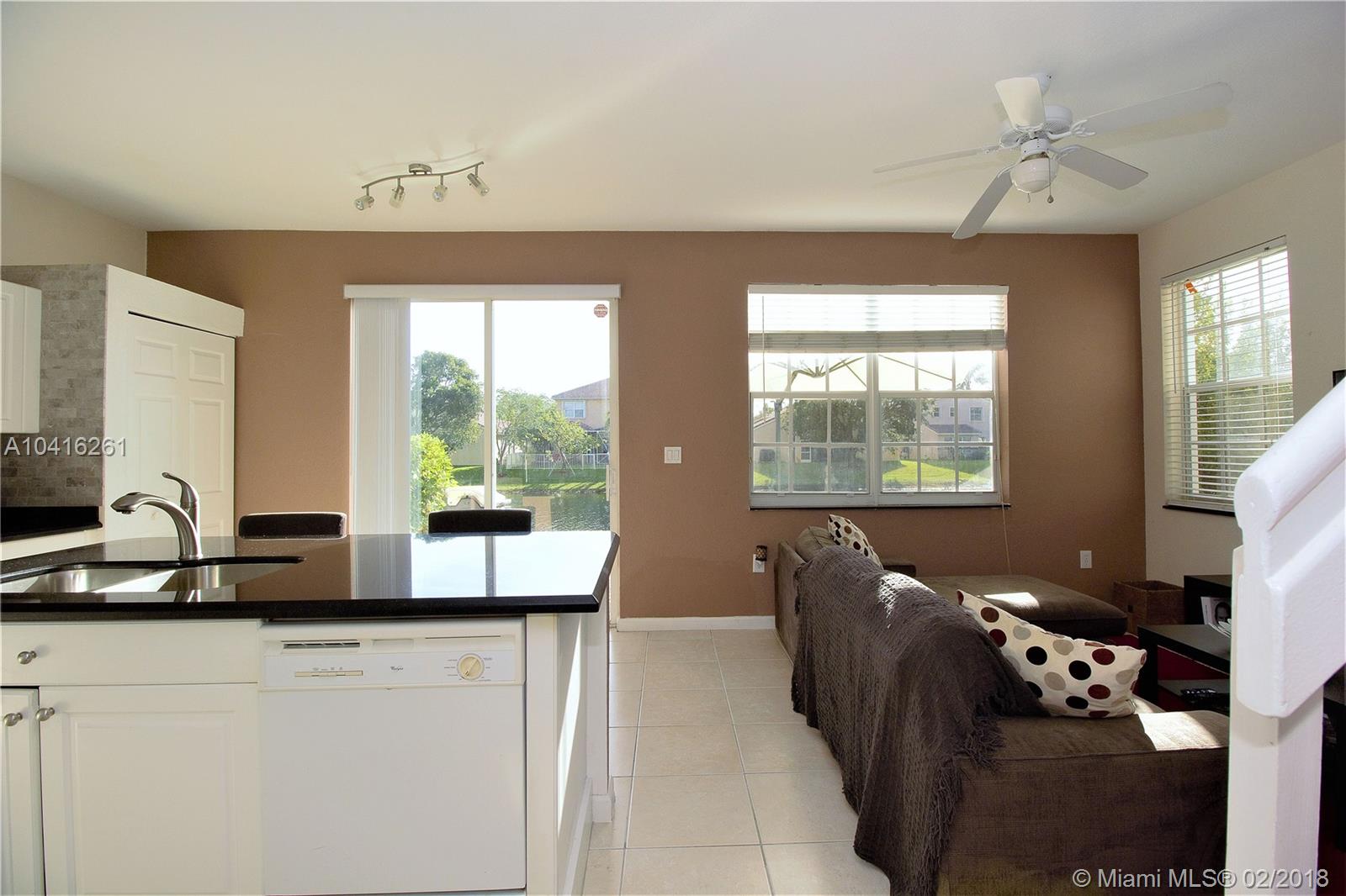 WOW! THIS MAGNIFICENT WATERFRONT TOWNHOUSE IS IN ONE OF THE BEST GATED COMMUNITIES IN MIRAMAR! EXPERIENCE YOUR PEACEFUL LAKEVIEW ONCE YOU WALK IN! THIS HOME FEATURES AN OPEN KITCHEN CONCEPT WITH GRANITE COUNTERTOPS, GRANITE BACK SPLASH, AND AN ISLAND. THIS HOME OFFERS AN EXTENDED PATIO ON THE WATER THAT OTHER TOWNHOUSES DON'T OFFER AND ADDITIONAL SIDE YARD FOR MORE PRIVACY. THERE IS ALSO A 2 CAR GARAGE, TILE FLOORS, WOOD FLOORS UPSTAIRS, AND MUCH MORE. THE MAINTENANCE INCLUDES LAWN SERVICE AND ACCESS TO THE RESORT STYLE CLUBHOUSE THAT OFFERS TENNIS AND BASKETBALL COURTS, STATE OF THE ART GYM, CLUBHOUSE FOR PARTIES, KIDS PLAYGROUND, PRIVATE BEACH AND MUCH MORE! GRADE A SCHOOLS ARE WITHIN WALKING DISTANCE TO THE HOME. OWNER SAYS BRING OFFERS. THIS GEM WILL NOT LAST!