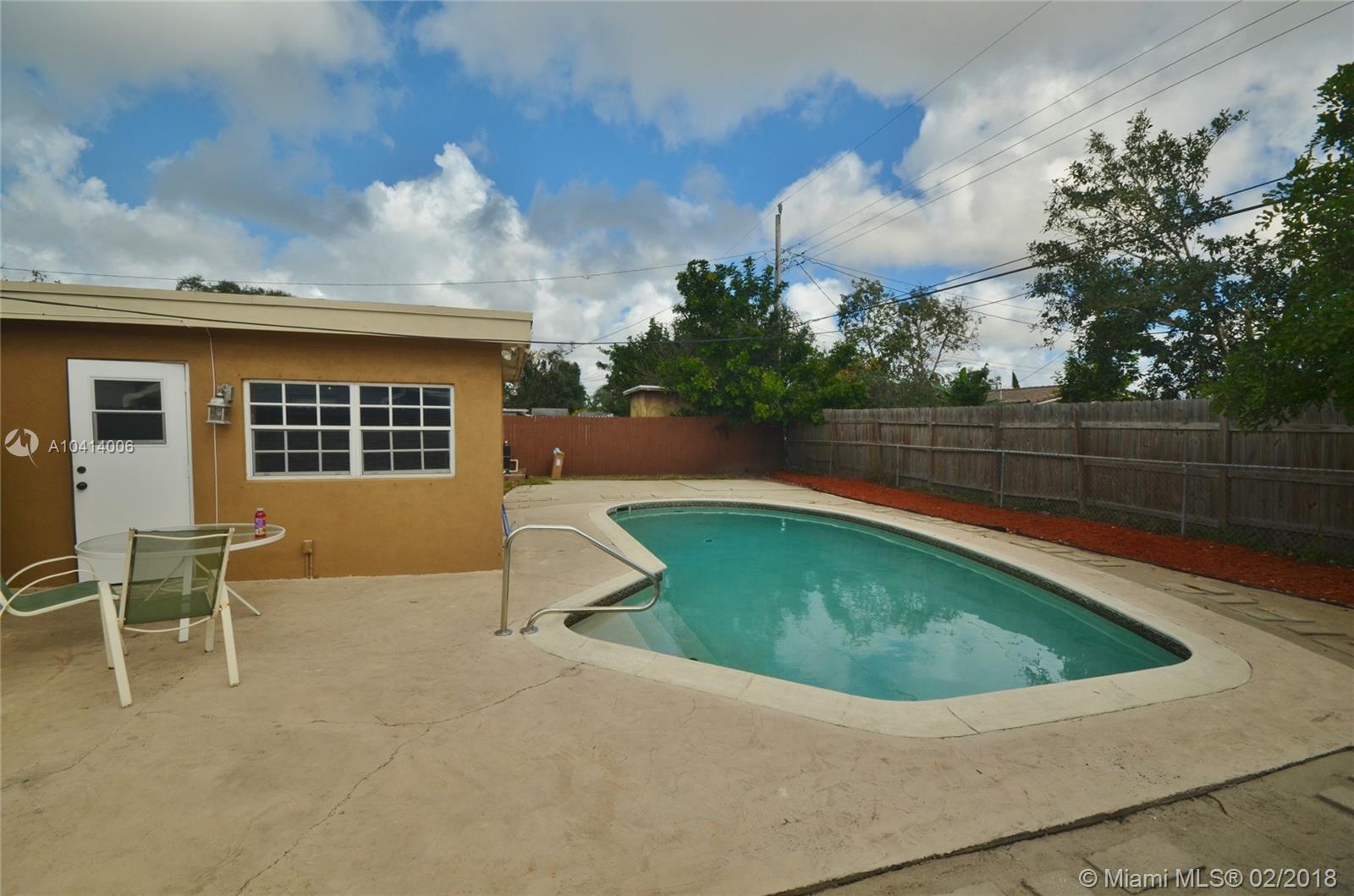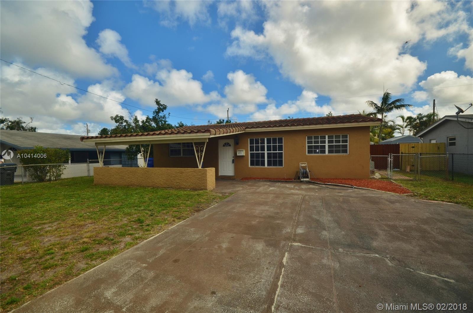 NO HOA! Central Hollywood POOL HOME with 3bedroom & 3bath. Freshly painted interior with white tile floors throughout. This house is a perfect starter home awaiting new owners who will make it their own or investor. Large lot has full privacy fence, large parking pad and 1-car carport. Very quiet street perfect for families. The Florida room was enclosed and the 3rd bath added as pool bath. Exterior laundry room is attached but accessible from patio. If a pool is your dream, this is the lowest priced pool home in this area! Minutes from HardRock Casino, beaches, airports, transportation, schools and shopping. Close to everything you love about South Florida. SHOWINGS START SUNDAY FEBRUARY 11TH. ! year Home Warranty Included with full price contract. Boat/RV park OK no HOA restrictions.