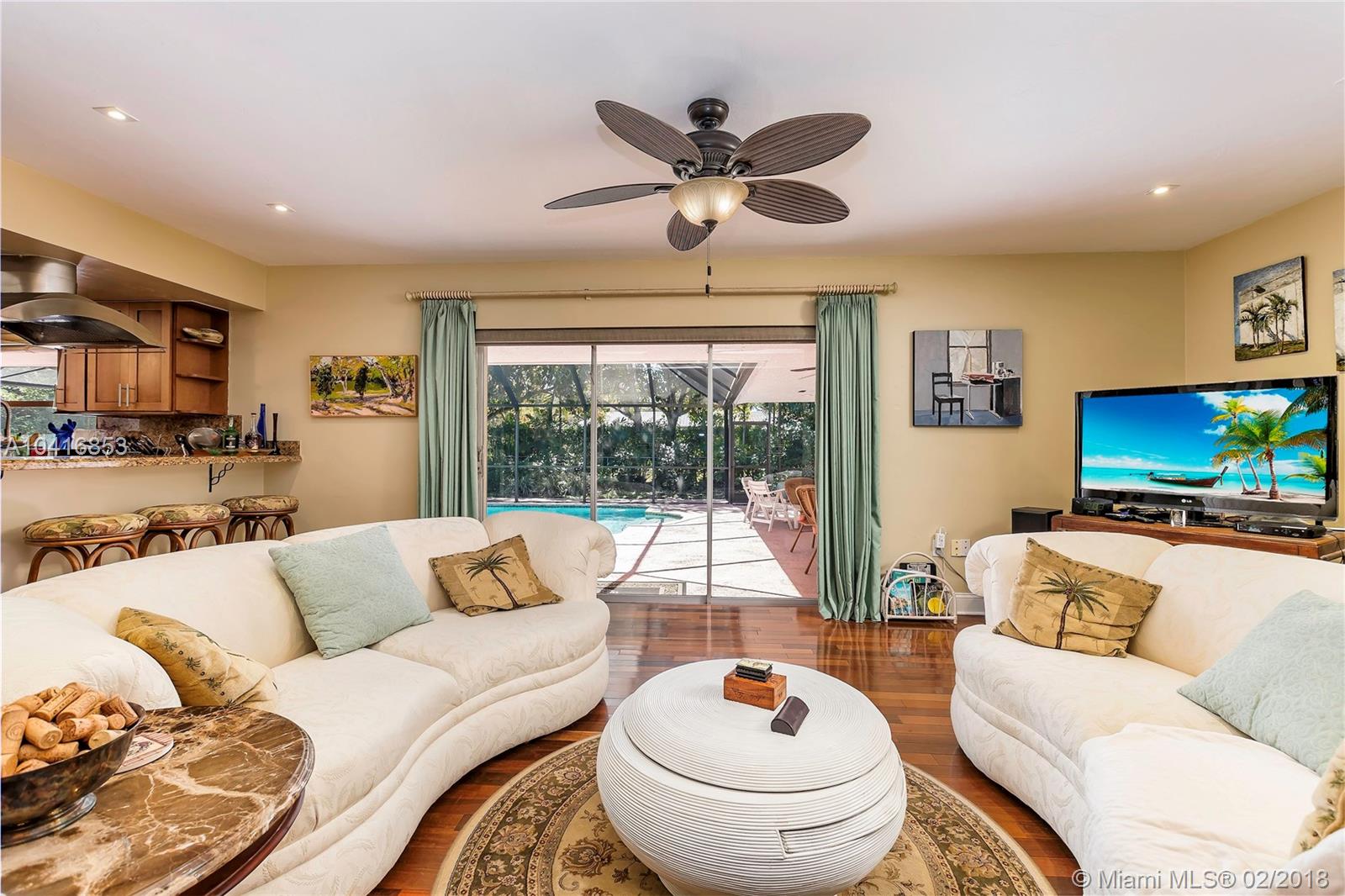 This spacious 5 bedroom, 3 bath, cul-de-sac home in Pinecrest has been meticulously maintained. The home features updated bathrooms, updated kitchen with stainless steel appliances, double oven, and granite countertops. Brazilian walnut wood and tile floors throughout, in-door laundry room with sink, breakfast nook, large family room, formal dining room, and den/office. Two car side load garage, large yard with mango, sapodilla, papaya, lychee trees. The serene backyard and screened in pool is perfect for entertaining all year round. Walking distance to top rated Pinecrest public schools. Close to restaurants, the New Whole Foods, shopping malls, and the Palmetto Expressway.