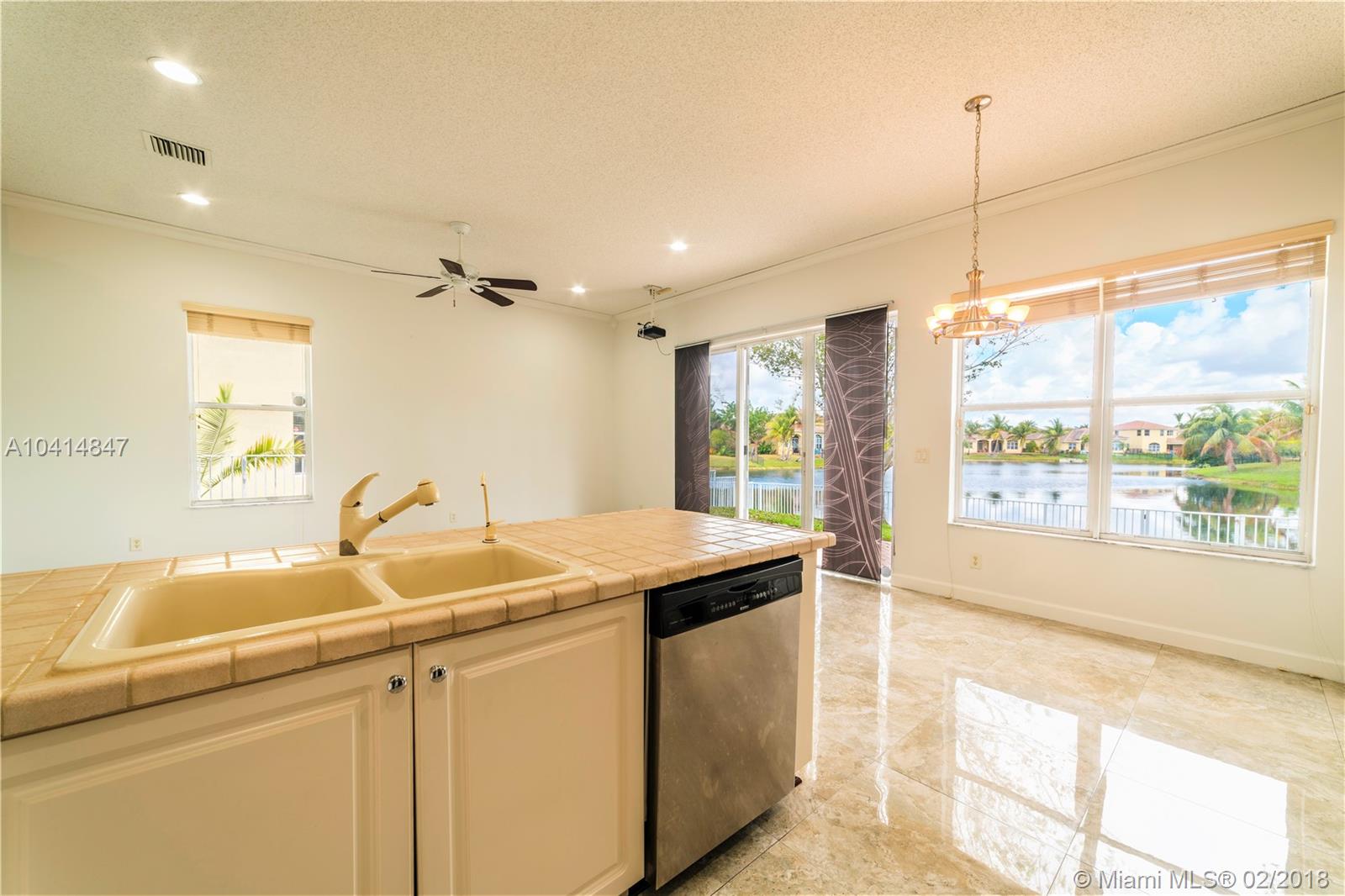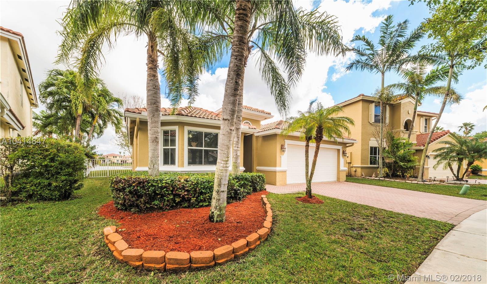Beautiful one-story lakefront 4 bed/3 full bath home with stunning lake views and tropical palm trees. Located in tranquil, desirable gated Monarch Lakes community. Spacious, bright and airy with high ceilings and crown molding throughout. Recently painted interior and exterior, well maintained and impeccably clean. Separate dining and living room, large master bedroom with custom closet cabinetry, and front bedrooms perfect for office/in-laws. Open kitchen with SS appliances and family room overlook scenic, serene lake and fenced-in wide back patio with pavers from end to end. Expansive two-car garage. Includes water softener and screen projector for entertainment. Centrally located near schools, shopping and major highways. Rarely available find in lovely Mariposa Isles. Tour on YouTube.