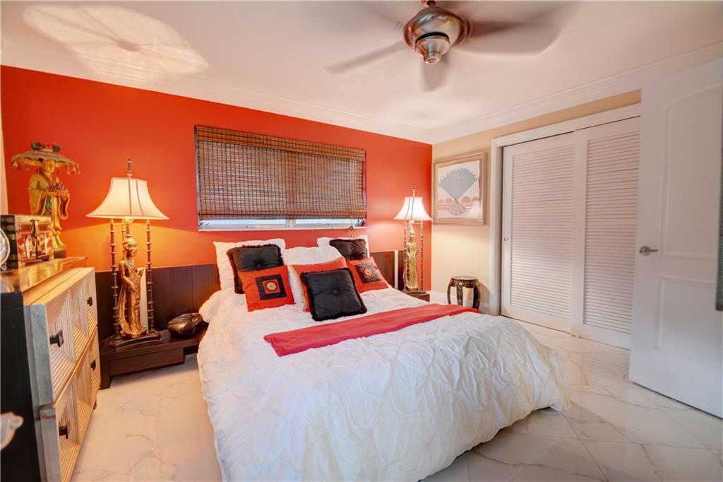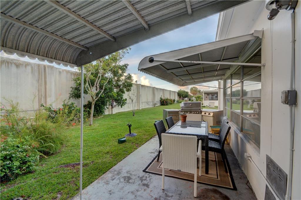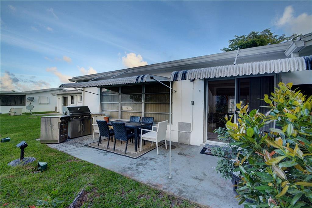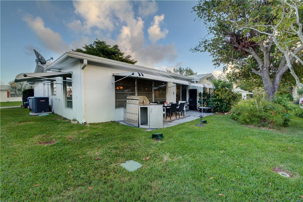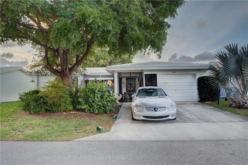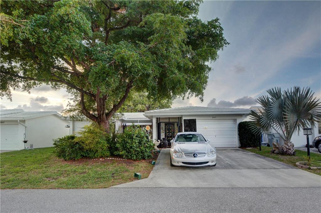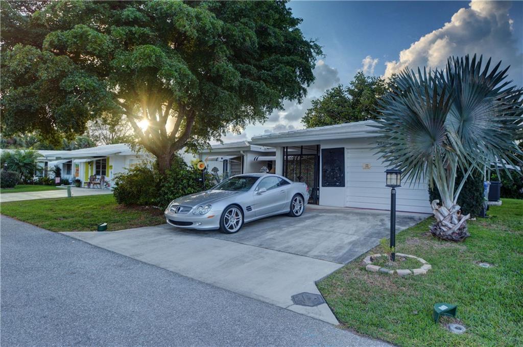 Charming updated 2 bedrooms, 2 bath house. Porcelain tile throughout, updated kitchen & bathroom. Crown molding in every rooms. 1 car garage, washer and drying. Bright & spacious open floor plan, with lots of natural light. Private tropical garden are in the back & front of the house. Great location, minutes to the Beach, restaurants & shopping. Pet OK. Have your motorcycle in your garage. Amenities include a 9 hole golf course, 2 pools, club house & bus service. FREE GOLF for owners. MUST SEE!!