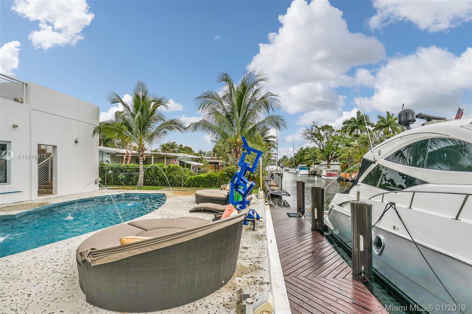 " Castillo Del Rio " 70ft Waterfront Luxury Modern Custom built home. 6 B/ 5Ba, Gourmet Kitchen to entertain intimate couple, or 50 guest. Heated Pool, Dock, No Fixed bridges to the Ocean. Private entrance for Guest or Crew quarters. High Tech smarthouse, but user friendly. One of a kind ! Bring your toys! Stop paying rent at marinas and storage . Park 1 car inside living room! 10+ car parking, RV, Motorcycles, Jetskis, Electric veh.charging. No HOA. Private Jets- FLL airport only minutes away. Beaches, Las Olas Blvd Restaurants and shops. * 25 mi to Dwntwn Miami. *60 mi to Bimini Bahamas. Rooftop deck to enjoy Sunrise and Sunsets. Listing agent is a Native Floridian, yachting boater and can answer most questions about the area. Available immediately. Easy to show.
