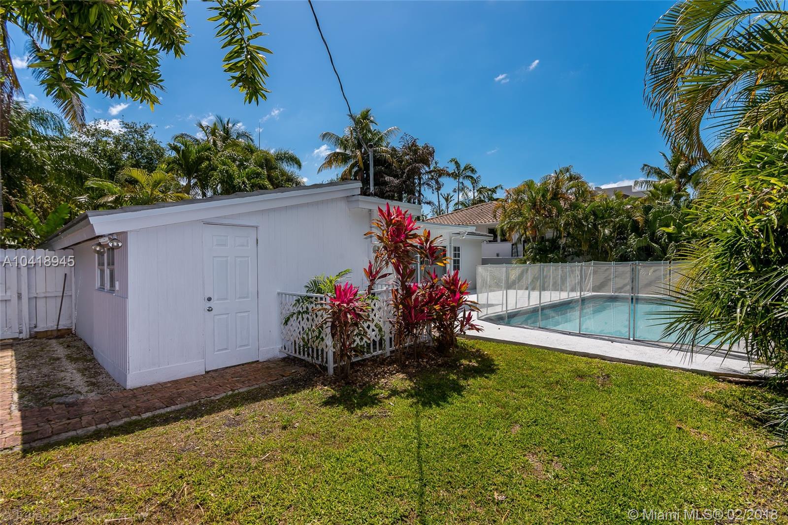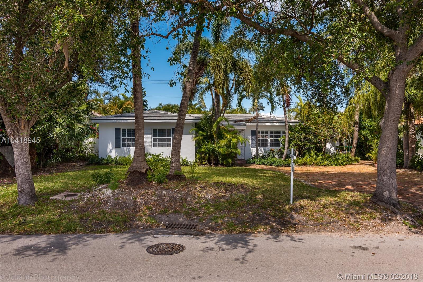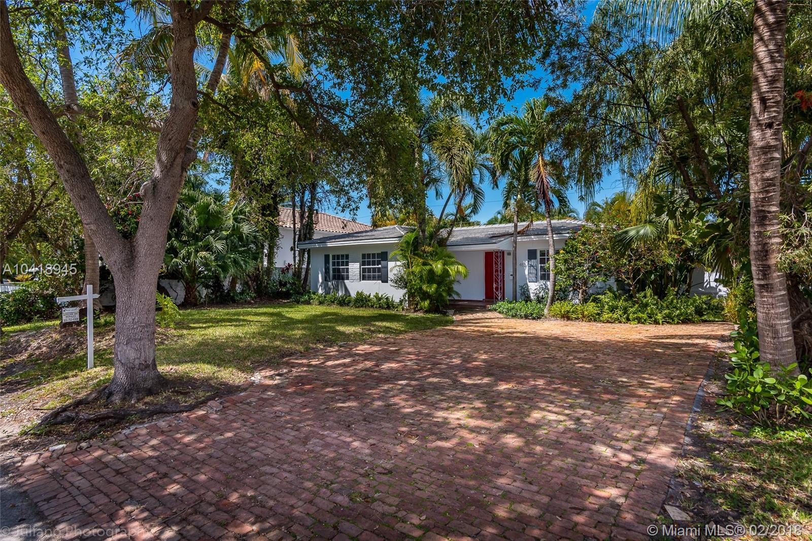 Charming home in Key Biscayne style with new roof and new air conditioners. Home is 2000 sq. ft. as per owner. Four bedroom home with Master bedroom on the right and 3 bedrooms on the left. Large pool, terrace, garden in front and in back. Already on sewer. Lot is larger than most. School is half a block away, the Park is nearby and Community ceter ver close. Rented at present until July 15, and there is a possibility that the renters want to stay longer. Sold "As Is" after inspections.