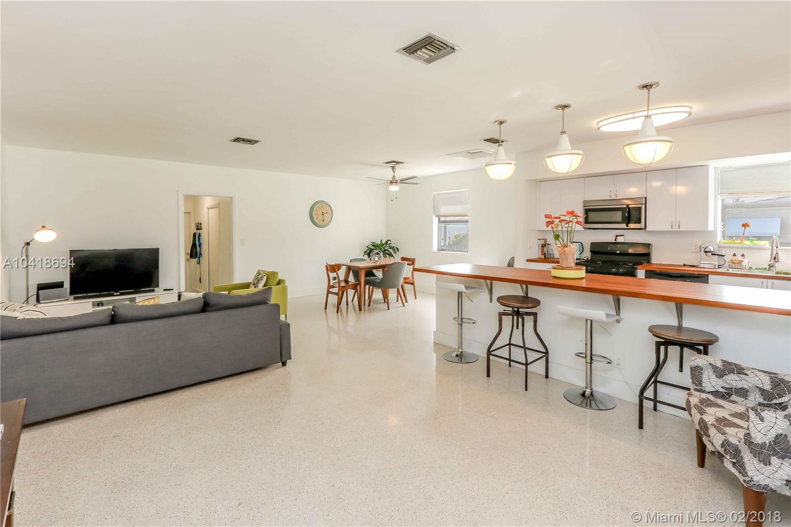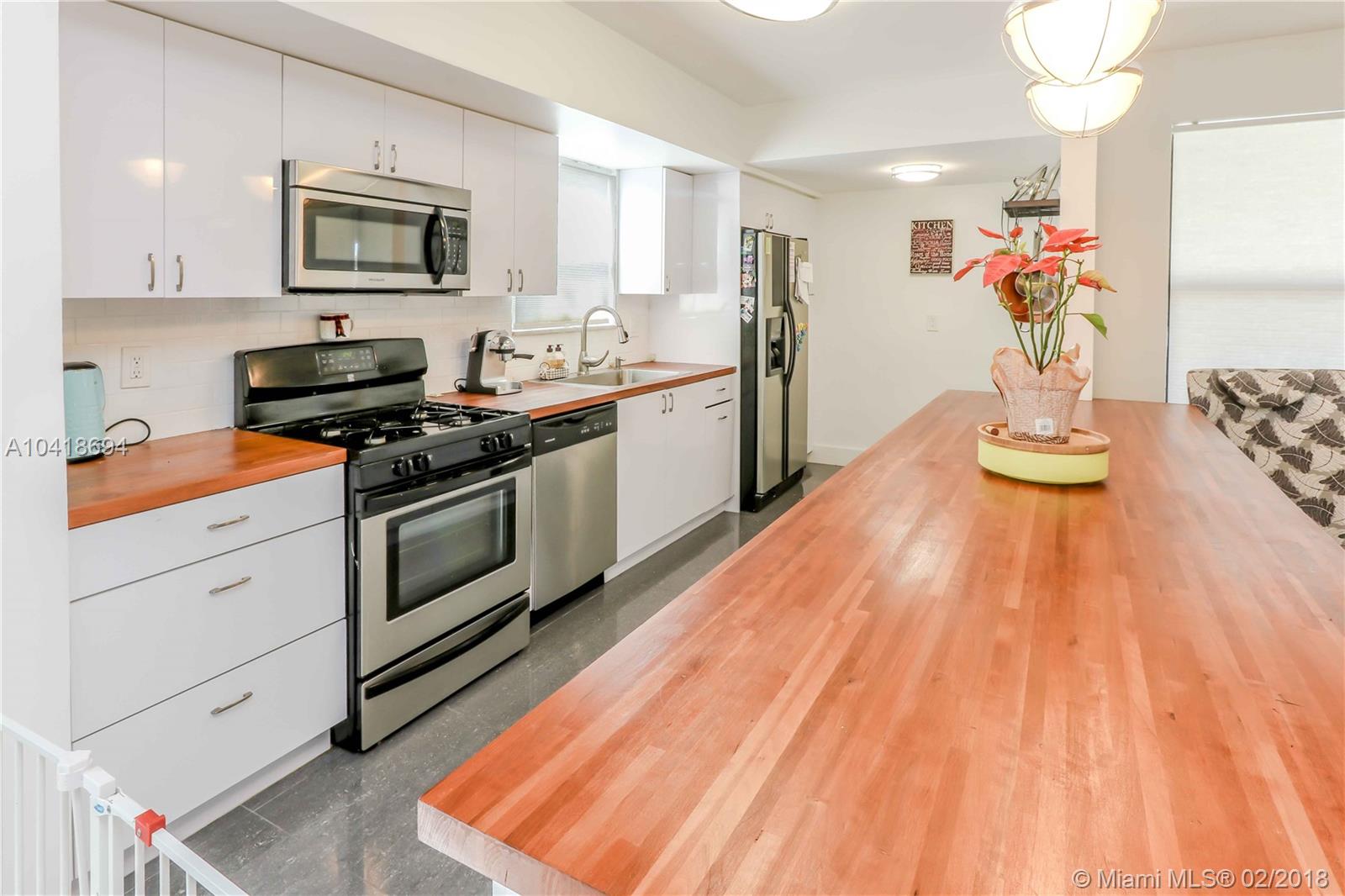 Meticulously renovated mid century modern home in a highly desirable area. Property is a 2/1 with a BONUS ROOM perfect for an office, studio or kid's room. It also features a full laundry room with plenty of space. Restored Terrazzo floors lead into an open concept space that showcases a custom kitchen worthy of any chef with a gas stove and beautiful butcher block countertops perfect for entertaining! The home has a brand new A/C unit with warranty, stainless steel appliances, W/D, new windows with permit, new electrical panel, new tankless water heater, modern light fixtures, new ceiling fans and a fenced in yard safe for kids and pets. Located in a very quiet and family friendly street in the heart of Hallandale close to Gulfstream Park, Whole Foods Market and more!
