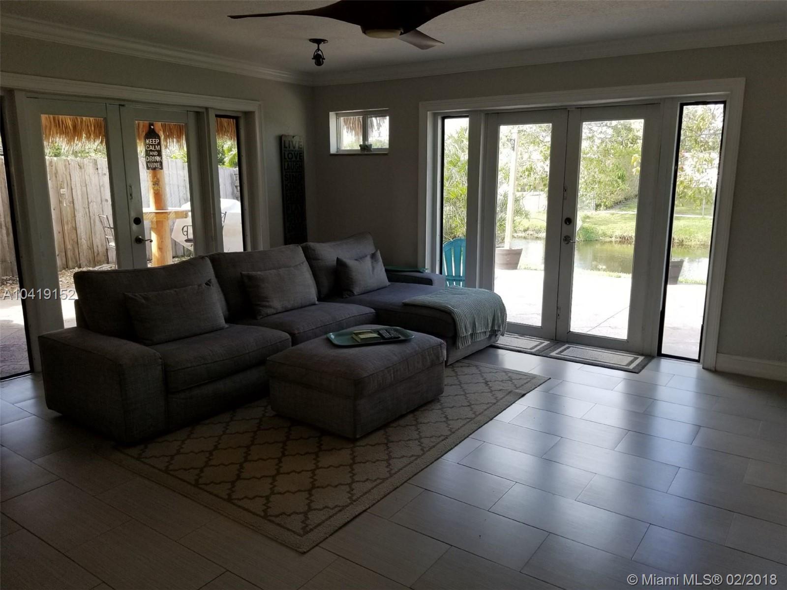 Beautiful and immaculate updated home! Move-in ready! Must see! Open floor plan with a water-view! New 12" x 24" tile, updated bathrooms with modern wall tile, crown and window molding throughout, large back patio and tiki hut, spacious kitchen, stainless appliances (all under warranty), integrated closets, tankless water heater, fresh paint throughout, stone trim and wall, impact-glass windows and doors, top-of-the-line ceiling fans, stamped-concrete driveway and patio, large 10'x10' shed/workshop, new programmable sprinkler system, and security alarm. Furniture and bar negotiable.