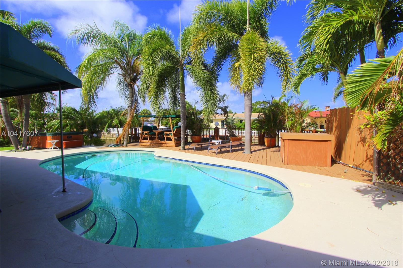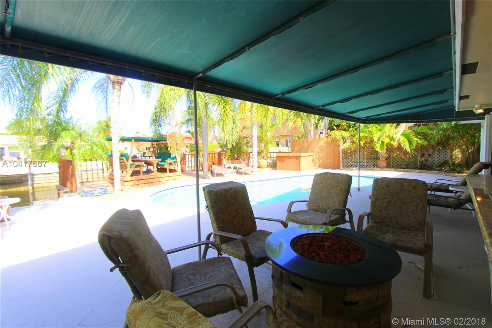 This beautiful waterfront, 3 bedroom/2 bathroom home in Pompano Beach offers an inviting and spacious great Florida Room, split floor plan, serene private yard with dockage and brand new tiled roof. Its backyard offers three seating areas with water view; two of which are covered, pool, outdoor shower, deck, fire pit, hot tub and much more. The split floor plan and its wide open living areas give you the best of both worlds encompassing a private warm feel with inviting open spaces for everyone to enjoy.