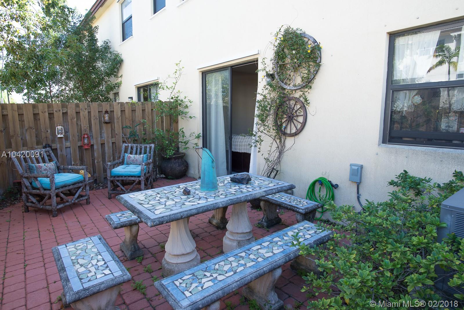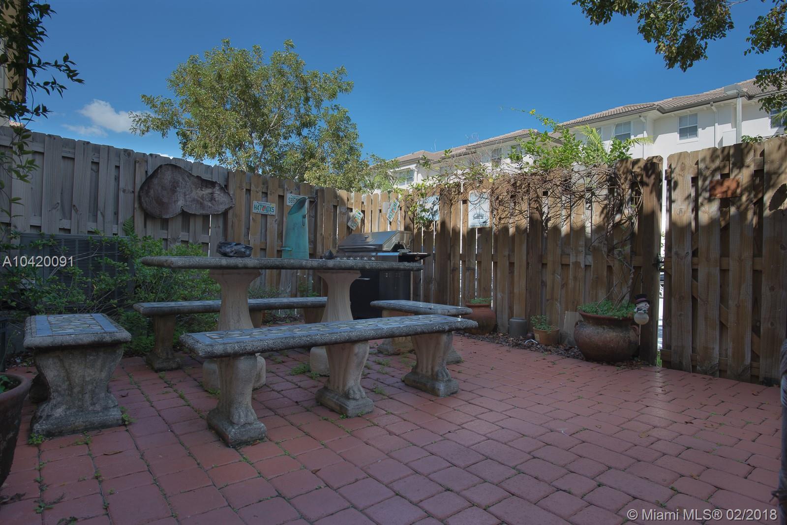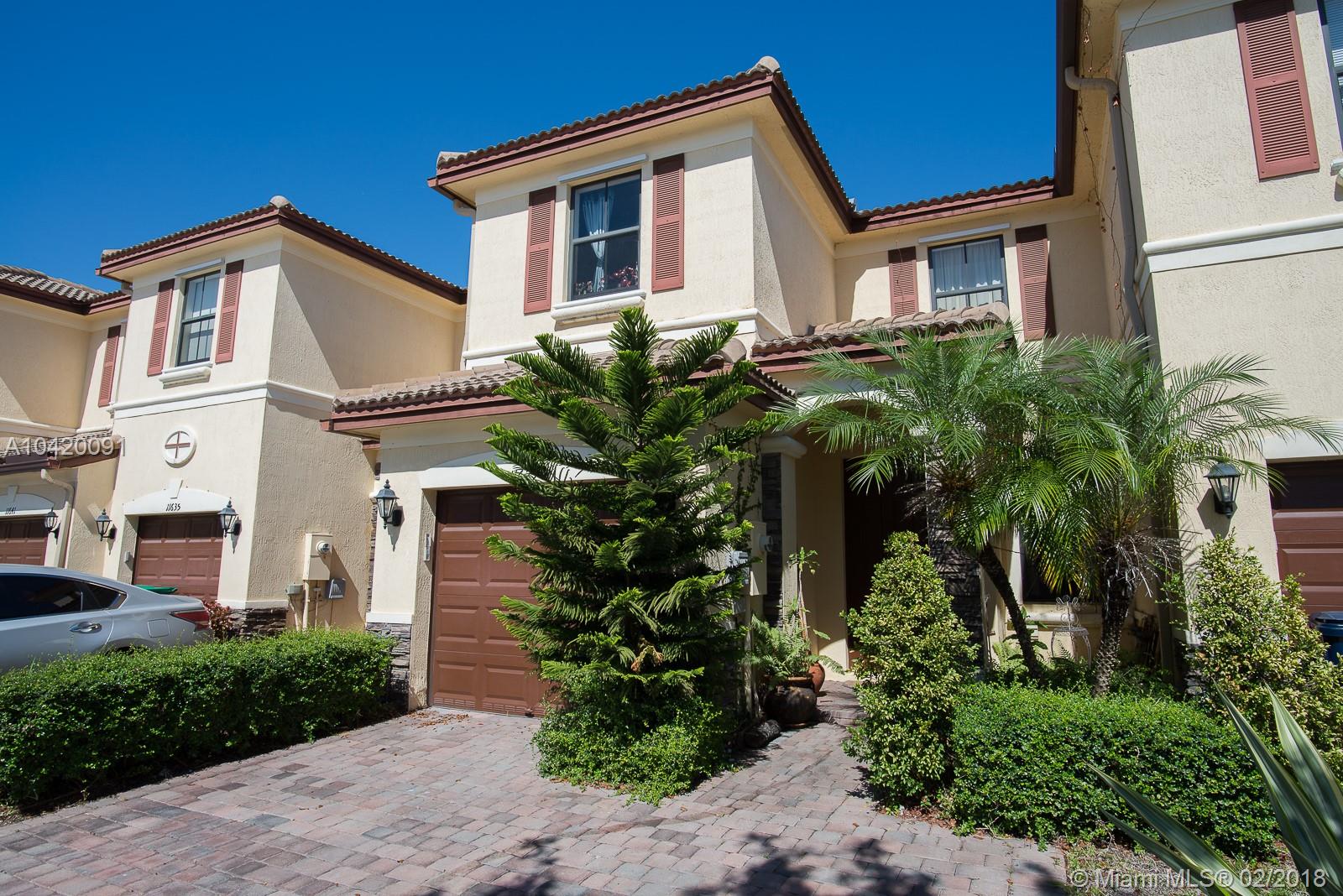 Great Opportunity to own this Townhouse 3 Bed/2.5 Baths. Functional floor plan with formal living & dining room. Nice Kitchen overlooking family room, Wood-Finish Cabinets,Stainless Steel Appliances, Granite Countertops with breakfast area bar. The Family Room also gives access to an outdoor Patio. The 2nd floor includes a Laundry Room, 2 Bedrooms both with access to a full bath with vanity and tub, Master Suite, with a walk-in closet, master bath with dual sinks, marble countertop, vanity, and glass enclosed shower. Walking distance to community pool and mail boxes area. No Neighbors on the back. Excellent location. Close to great schools, mayor highways, and Doral Legacy Park in which you can gather to enjoy sports, cultural arts. Current owner will move one month after closing.