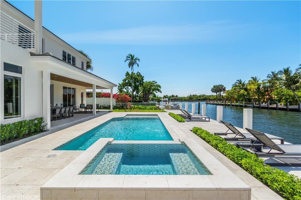 Impressive 2 Story modern/Transitional design new construction home is now complete and ready for immediate occupancy! Fabulous Coral Ridge location with southern exposure and positioned on 120 ft wide "Rio Verde"canal just 2 lots from the point offering awesome views of the Intracoastal waterway & Birch State Park. Modern interior design, featuring a rich combination of Marble and wood flooring, glass balconies, amazing kitchen w/ designer series cabinetry, custom "Neolith" counters & top of the line appliances, elevator, den/office, media room. Amazing pool/spa area with gazebo, summer kitchen & views, views, views!