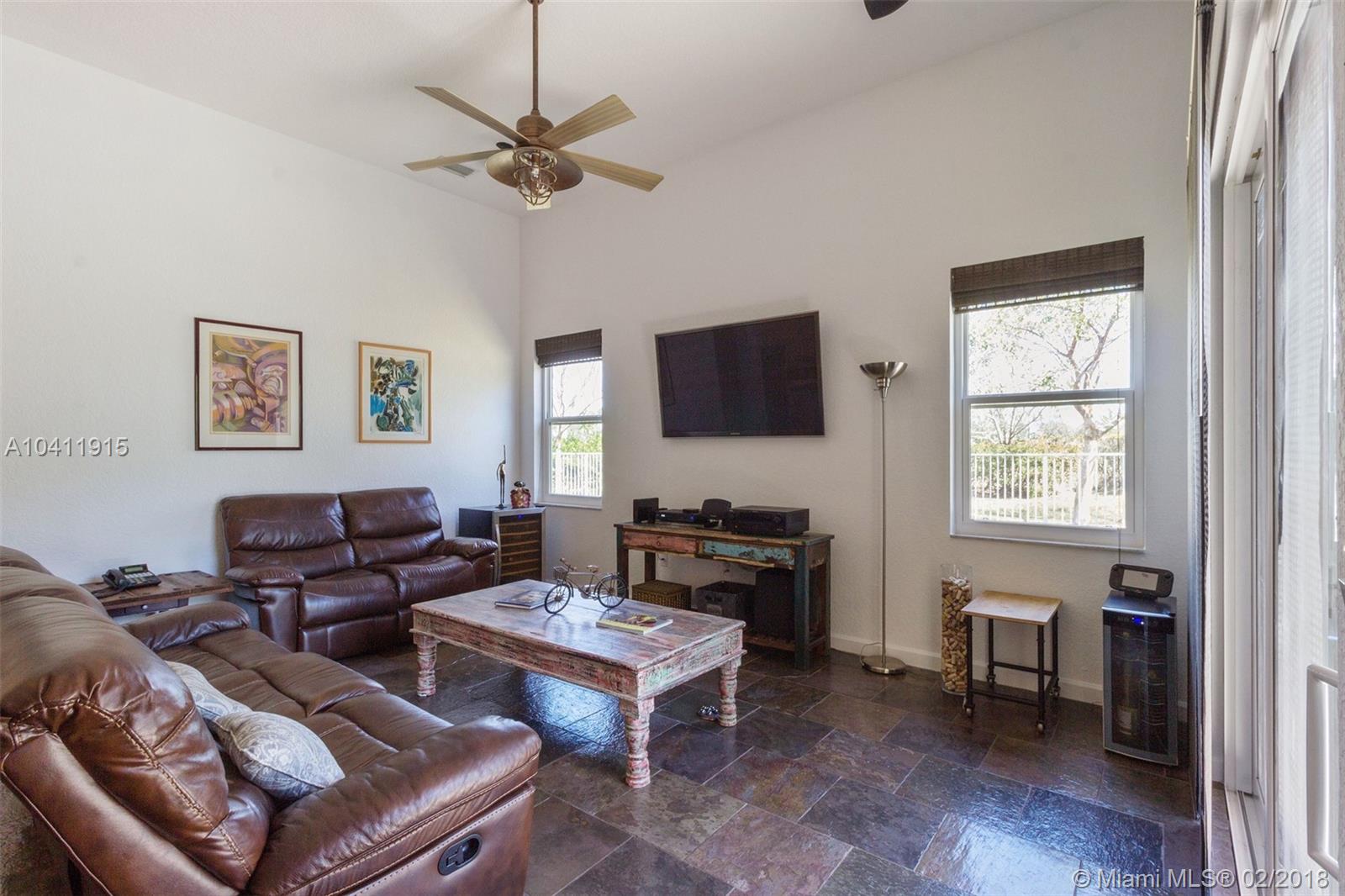 Beautiful one story home in the prestigious gated community of Harbor Lakes Estates. This home features 5 bedrooms, 3 baths and a 3 car garages. Triple glass high efficiency impact windows and patio doors throughout the house, recently painted, natural slate flooring in all the common areas, high ceilings, upgraded kitchen with new stainless steel appliances, granite countertops, 5.1 home theater system, Hunter Douglas window treatments, custom closets, dual Nest thermostats, private backyard overlooking the preserve with a free style pool to enjoy the outdoors with complete privacy. A must see!