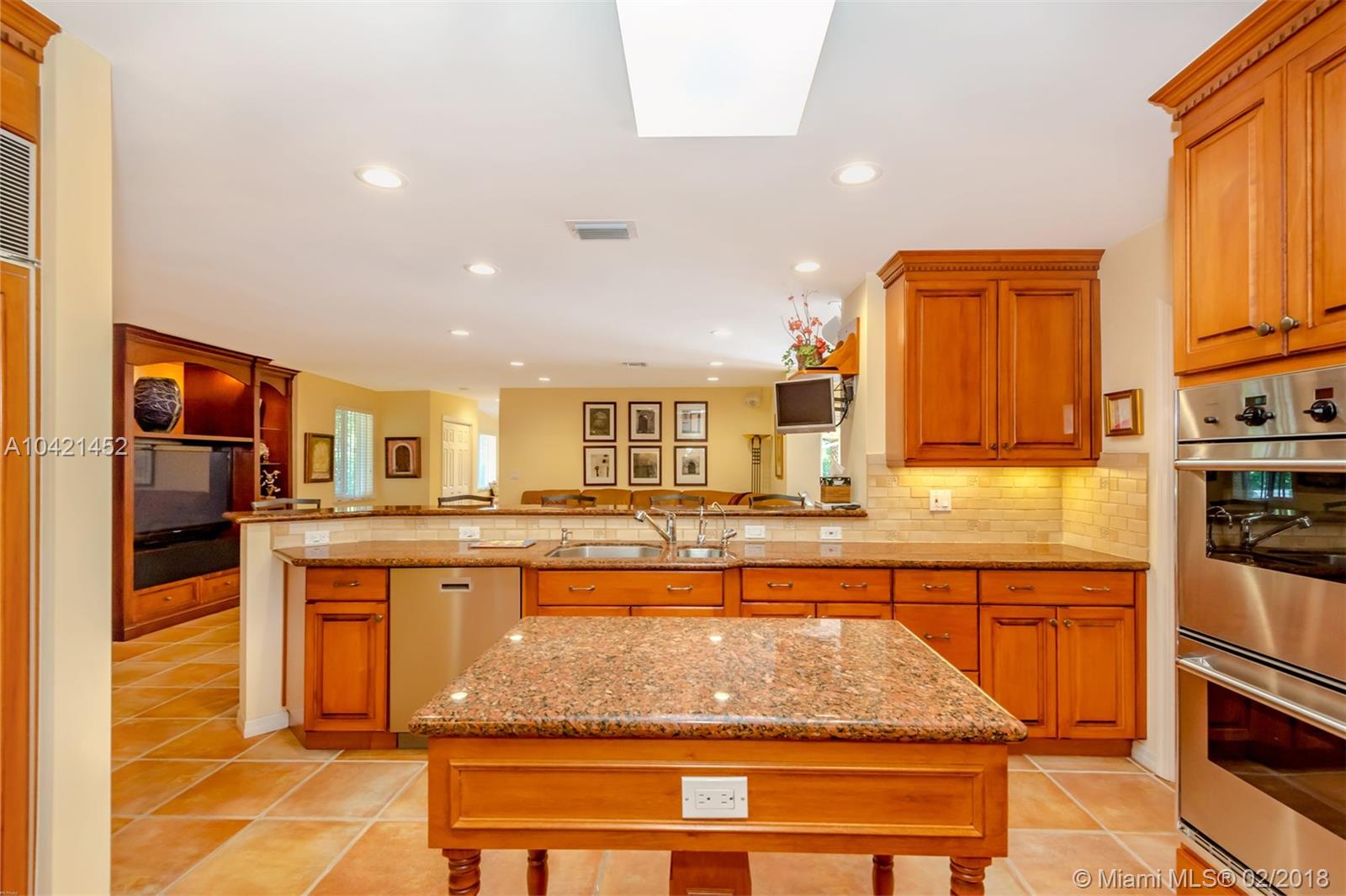 Wonderful ranch-style North Pinecrest home (renovated by Hollub Homes) features 4 bedrooms, 4 full baths, formal dining and living rooms, open kitchen to large family room, as well as separate television/media room. A covered terrace surrounds an extra-deep swimming pool with diving board; expansive fenced and landscaped backyard and basketball court. Includes custom cabinets/built-ins, abundant closets/storage, advanced security system (with cameras), new generator, surround-sound speaker system, air-conditioned garage, and hurricane/impact windows/doors. Excellent Palmetto/Pinecrest school district. Easy to show; please call for an appointment