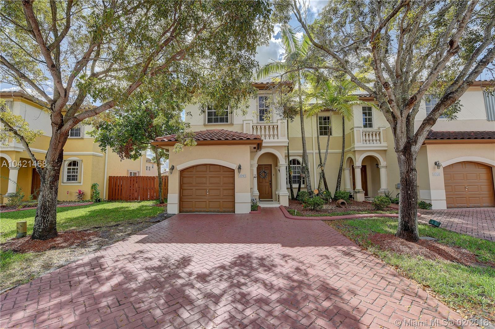 STUNNING IMPECCABLE CORNER TOWNHOME IN PRESTIGIOUS VIZCAYA IN MIRAMAR. 3 BEDROOMS 2 AND A HALF BATHS, WITH EXTRA LAND ON THE SIDE OF THE HOUSE. WHITE KITCHEN WITH GRANITE COUNTER TOPS, SS APPLIANCES, FRONT LOADER WASHER AND DRYER, ACCORDION SHUTTERS, ENERGY EFFICIENT AC UNIT FROM 2015, WATER HEATER 2016, NEW GRASS IN THE BACK, SMART RINGER WITH CAMERA, KEYLESS ENTRY, AND SMART THERMOSTAT. ORIGINAL OWNERS THAT MAINTAIN A PEST CONTROL CONTRACT EVERY 2 MONTHS, CLEAN ROOF, THERE ARE 3 ENTRANCES 2 ARE GUARDED 24/7. EXCLUDED: DINING AND HALLWAY CHANDELIER.