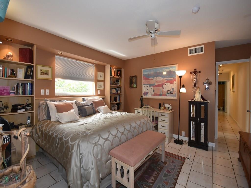 Substantially redone, over 2800 SF. Ceramic flrs, newer wood/granite kit w/ huge pantry, wet bar w/ décor lighting in fam rm, decor window shades, newer windows & full accordion shutters, new elec panel, baths redone, gar is now lg office w/ 3rd cent A/C, new A/C ducts & insulation, mstr has all built-in dressers. Lots of closets, mostly Calif build-outs, wood burning fireplace. Laundry rm build-ins. Camera & security system. Pool/paver patio, southern exposure. Stamped concrete drive. Near best schools.