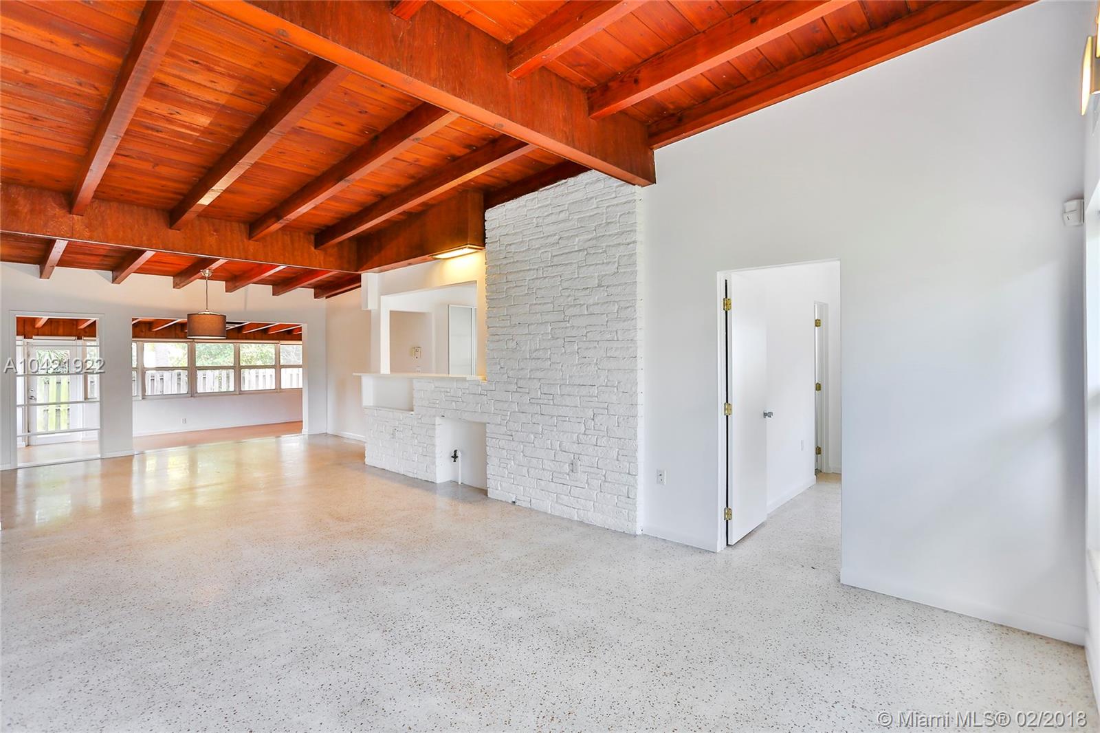 Beautiful, modern home with a spacious, open floor plan and terrazzo floors throughout. Split floor plan with 3 bedrooms, 3 full bathrooms, an office, and a 1-car garage. High wood beamed ceilings and a decorative fire place add to the charm of this comfortable home. A combination living and dining area leads to a large family room at the back of the house, which opens out to the deck in the private, fenced backyard with shade trees and tropical landscaping. Walk to the beach, shopping, community center/pool, Bal Harbor Shops, Four Seasons Surf Club. Zoned for A rated Bay Harbor Schools. Call today!