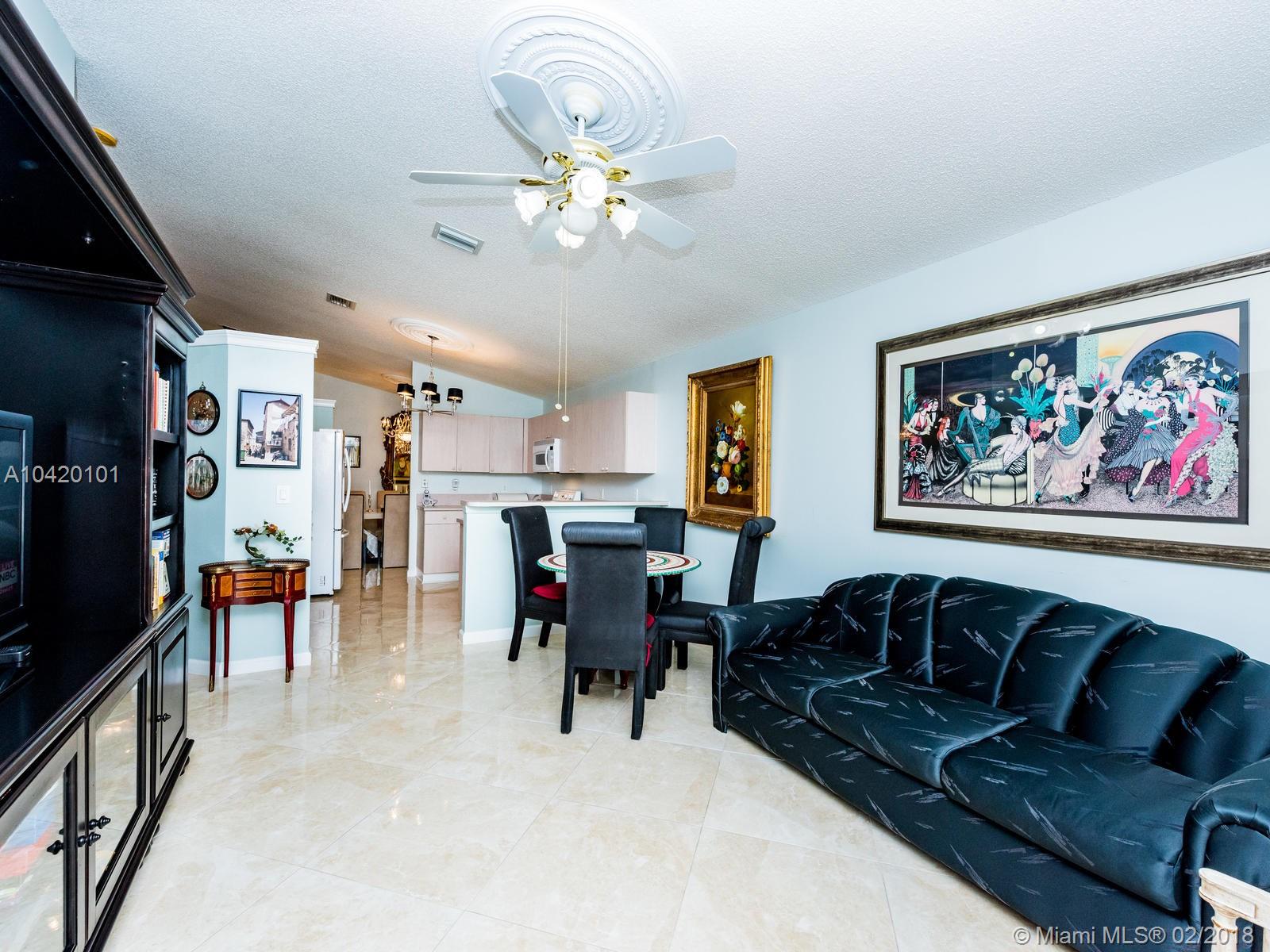 Beautiful single story waterfront home in Stirling Meadows, Davie. 3/2 with gorgeous floors, impeccably maintained. Custom trim in the bathrooms with one bedroom currently a walk-in closet with custom shelves, easily converted back. Fabulous location. Community Pool, close to major roadways, shopping, etc. Great storage space with a 2 car garage. Removable ramp at the entryway.