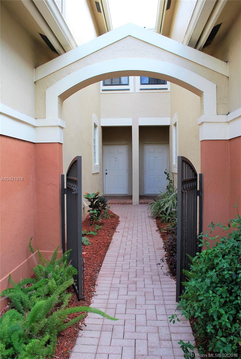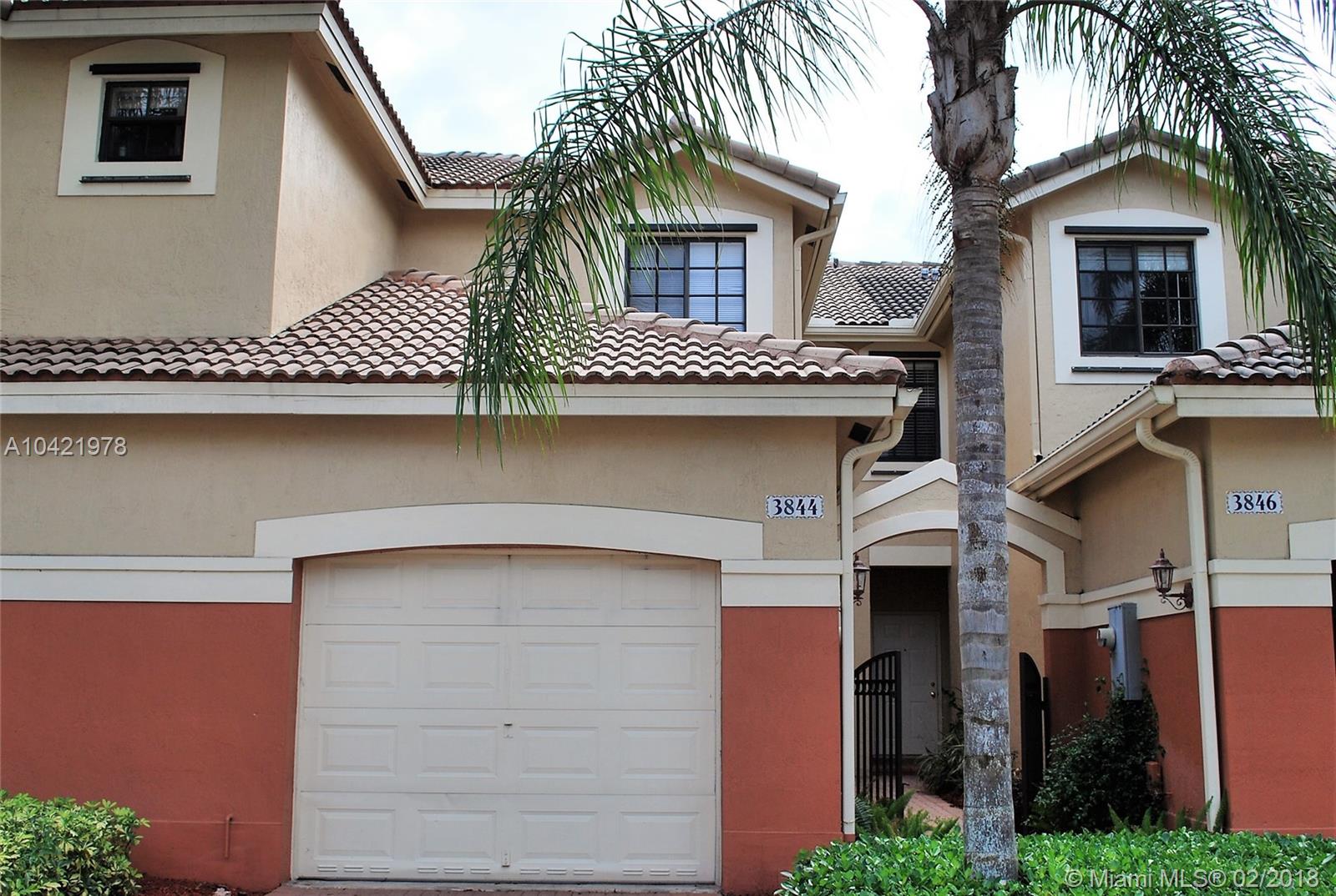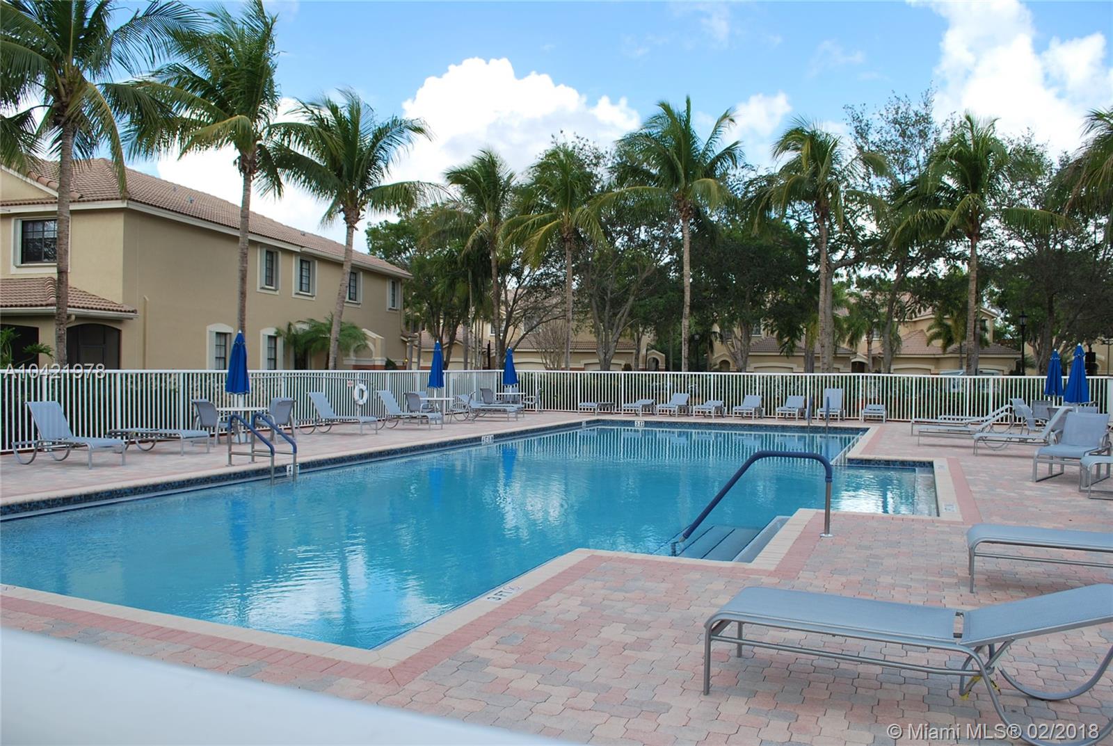 Sought after private "Courtyard at the Grove" Excellent location! Great opportunity to own a 3/2/1 townhouse with a 1 car garage, located in a gated community with a security guard. This beautiful property is spacious with over 1,600 of SqFt of living areas, light and bright with no neighbors in the back and a private lot with screened patio. It features tile in kitchen and parquet flooring throughout. This is a great community with A+ schools at walking distance, Falcon Cove and Cypress Bay. As well as the Weston Library and Parks. It has a community pool and a playground. Pets are also welcome. Owner motivated to make a reasonable deal.