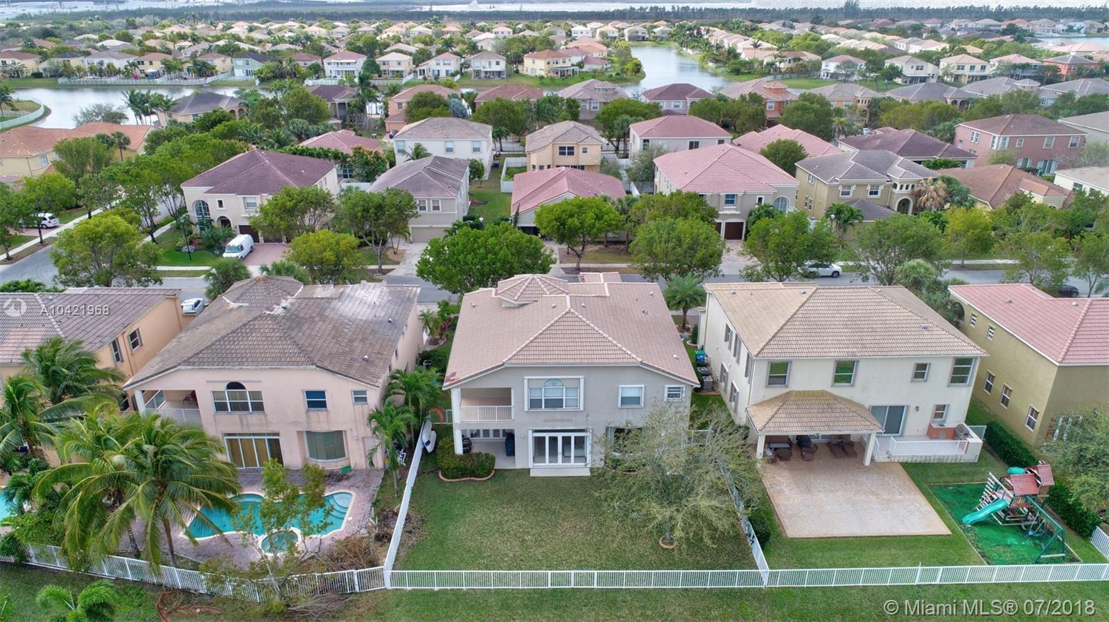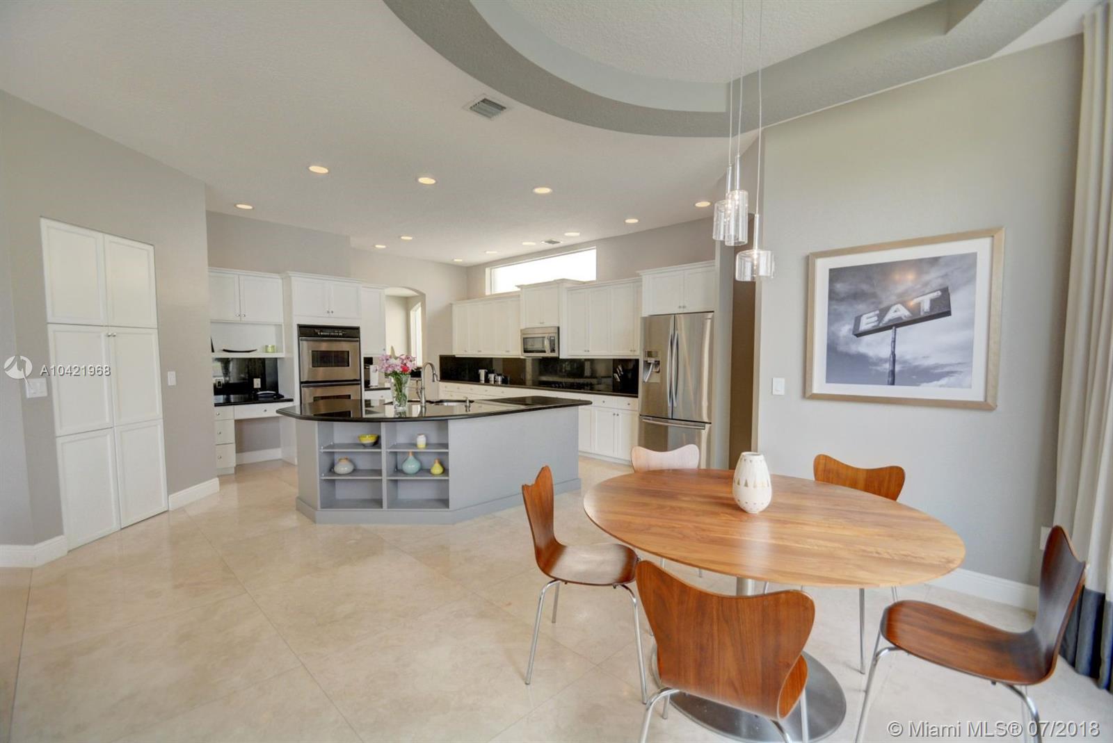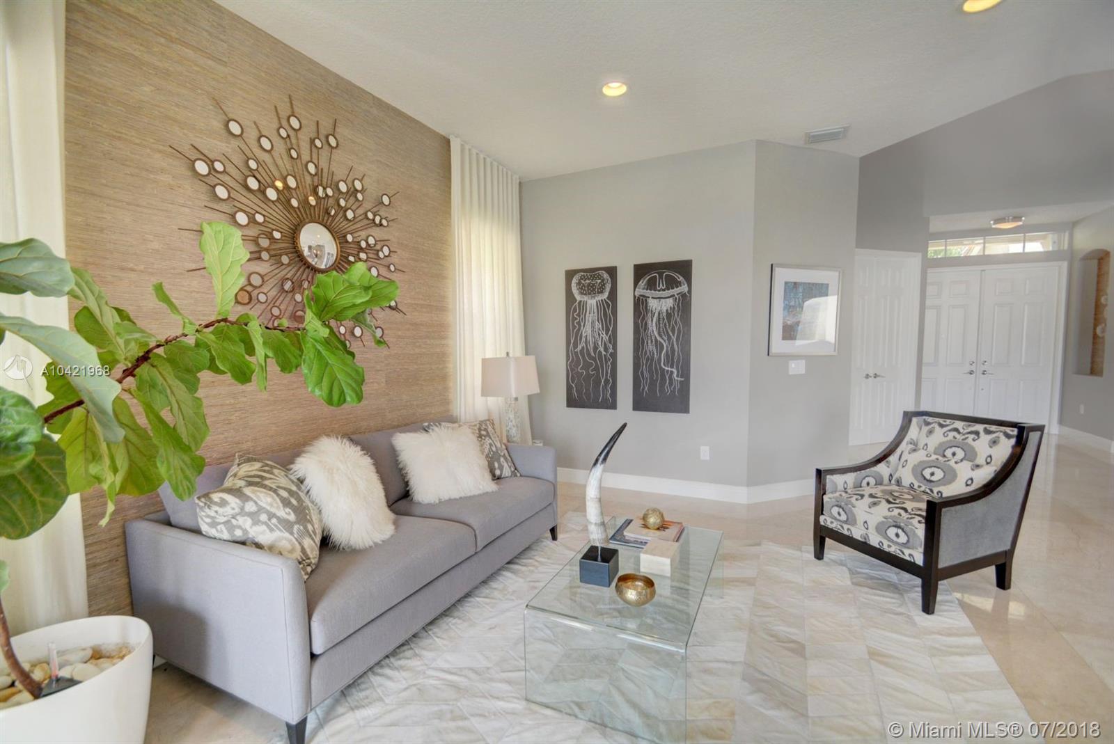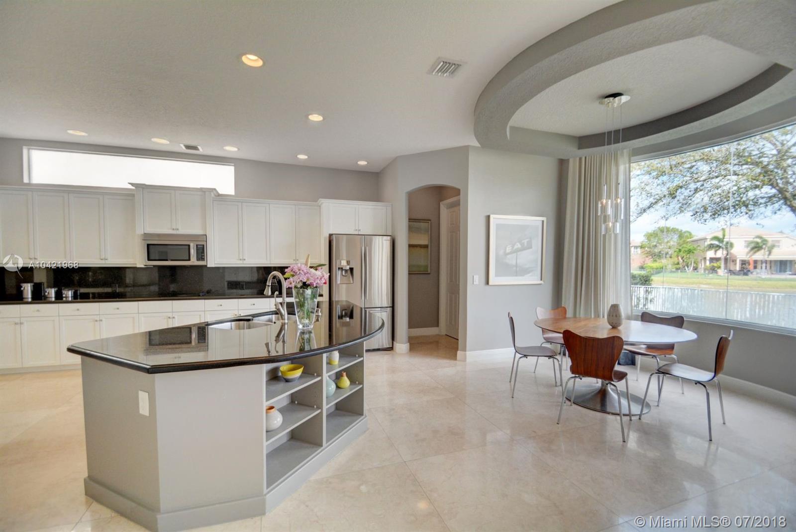 MAGNIFICENT LAKEFRONT, designer perfection 5143 total square feet, 3'x 3' Crema Marfil marble flooring throughout first floor, upgraded granite kitchen with butler’s pantry, stainless steel appliances, double ovens, custom linen drapes adorn living room and family room areas, 8 foot tall glass French doors lead to the backyard with waterfront views, accordion shutters and impact windows, new lighting, freshly painted, 2 newly remodeled bathrooms, huge master bedroom suite with outside balcony, extra-large walk-in closet with built-ins, master bath with whirlpool tub, glass enclosed double head shower, formal dining room, fenced yard. Located inside Riviera Isles Resort-Style community, 24/7 guard gated. Amenities include: tennis & basketball courts, fitness center, lagoon-style pool.