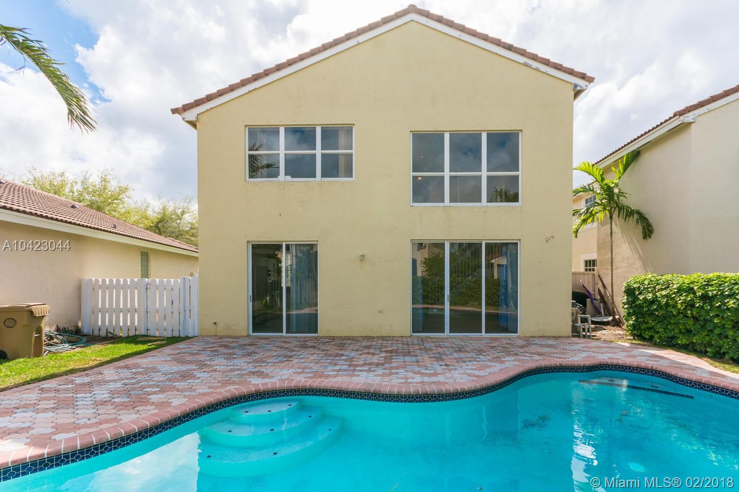 LOCATED IN A GATED COMMUNITY SITS THIS BEAUTIFUL HOME CONSISTING OF 3 BEDROOM + DEN DOWNSTAIRS ( 4 BEDROOMS CONVERTED TO 3 LARGE BEDROOMS UPSTAIRS) 2.5 BATH TWO STORY HOME WITH A GORGEOUS POOL AREA, MARBLE TILE THROUGHOUT LIVING AREAS. UPDATED KITCHEN CABINETS, GRANITE COUNTER TOPS, STAINLESS STEEL APPLIANCES. FAMILY ROOM RIGHT OFF KITCHEN. HIGH CEILINGS IN THE LIVING ROOM. LARGE MASTER BEDROOM W/ WALK-IN CLOSET AND MASTER BATHROOM. CLOSE TO MAJOR HIGHWAY! GREAT SCHOOL DISTRICT.