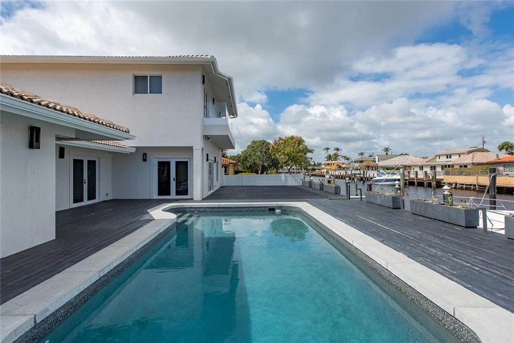 Stunning, sophisticated renovation of this waterfront home is a must see!! 80' of dockage & no fixed bridges to the ocean! Located in the desirable beach area of Bermuda-Riviera & within the Bayview school district. Huge 6BR/6BA features an open floor plan, amazing kitchen with island, high ceilings, Master Suites on first and second floor, custom LED lighting throughout, impact resistant windows/doors. Waterfront pool area and extended dock, perfect for entertaining with a view towards the intracoastal!