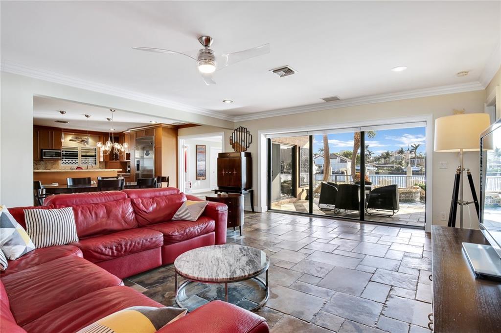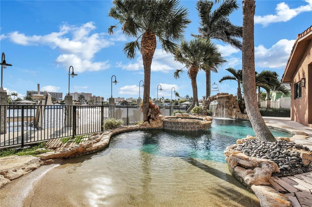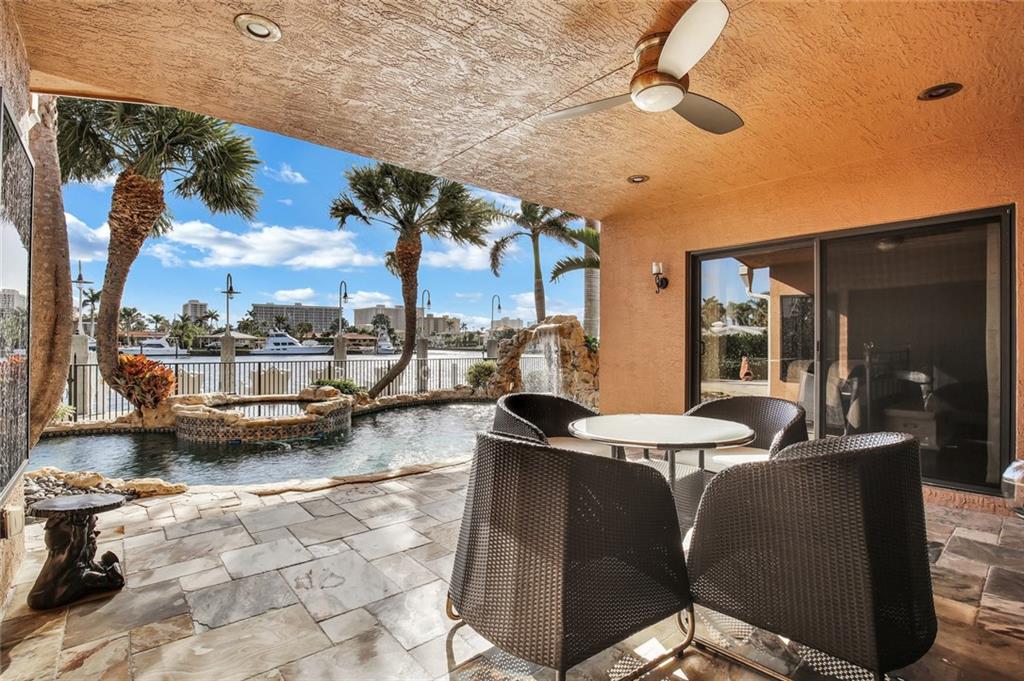 Rarely available home with 79' of deep water on Lake Capri in Harbor Village. Breathtaking views! This 3-bed, 3 bath home has been completely remodeled! Updated plumbing, electric, kitchen with 54-inch gas stove, marble bathrooms, beautiful slate and wood flooring and tankless hot water heaters. Also, impact windows & doors, 25KW generator with auto transfer switch, 780 sq. ft. concrete dock, 10k lbs. boat lift, salt water pool with waterfall, and marble paver driveway. Home and pool are built on pilings.