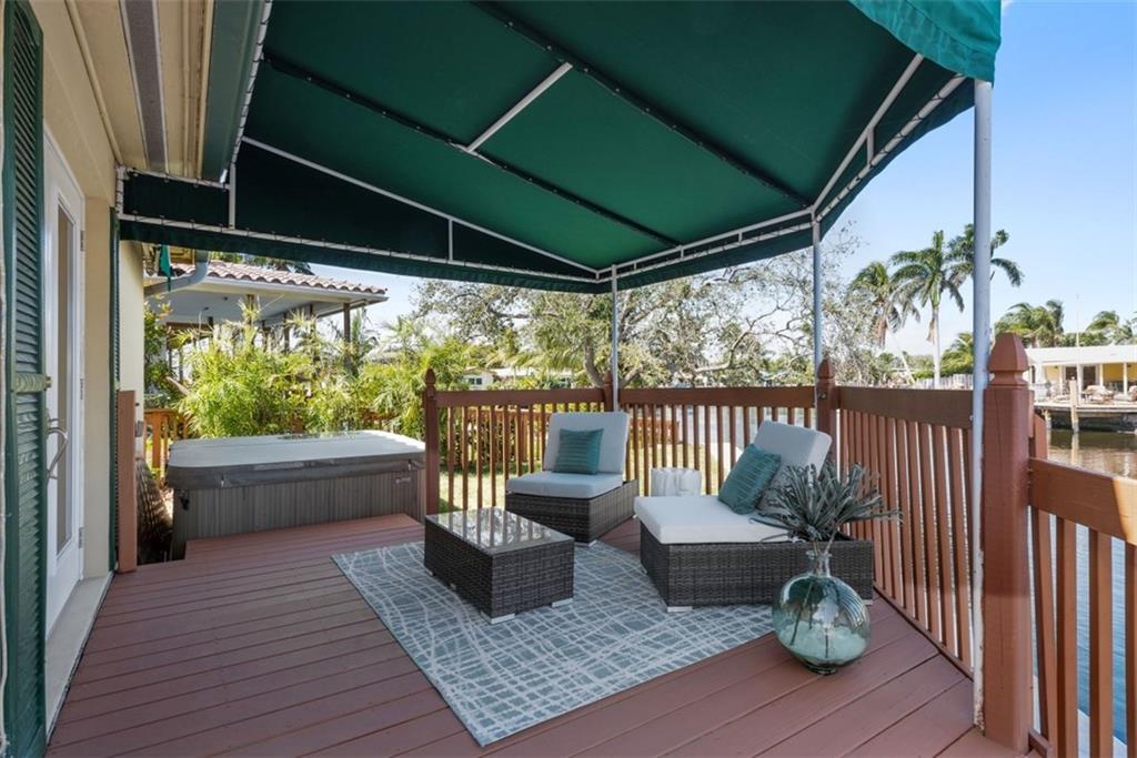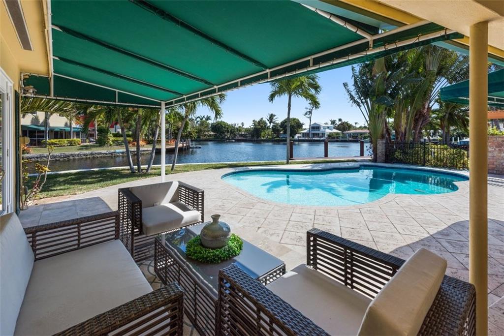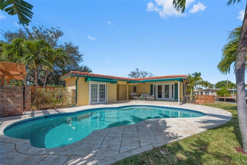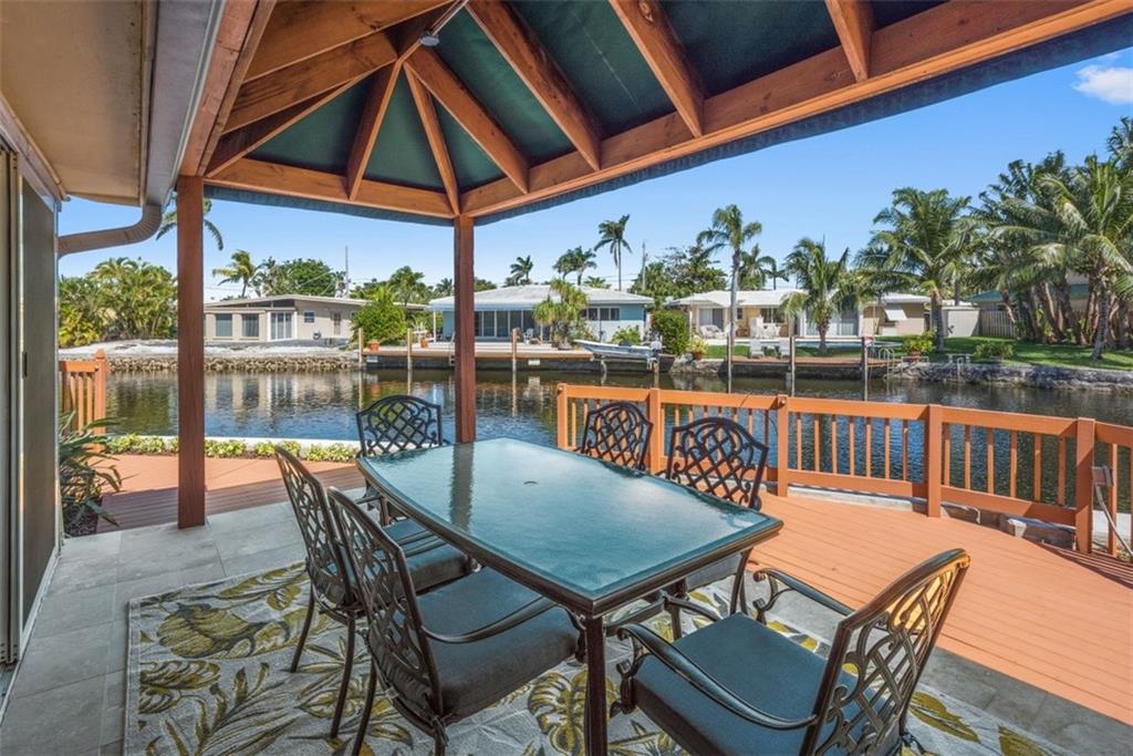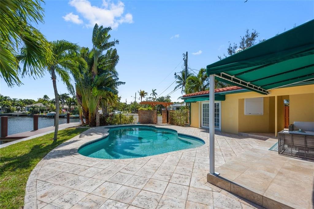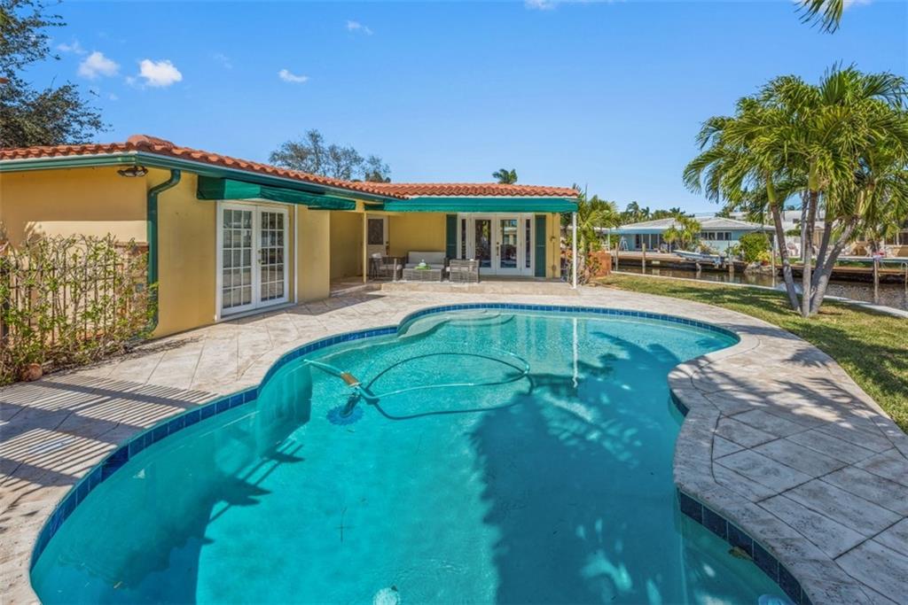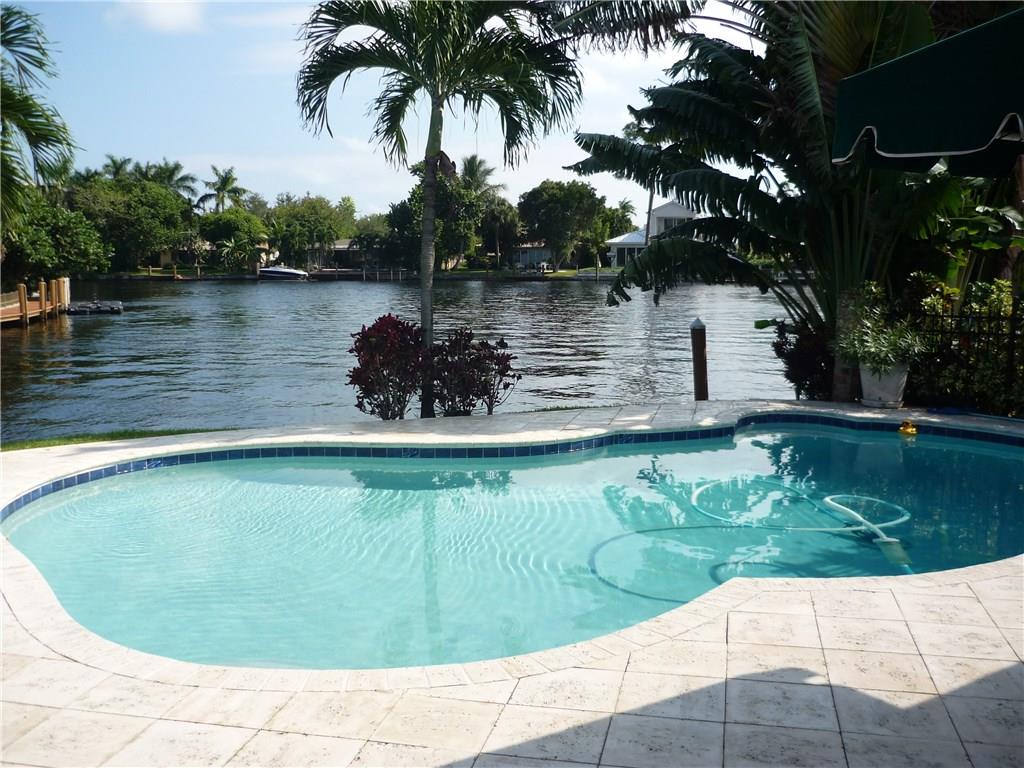 Beautiful home situated on a tributary to the Middle River with ocean access. This move-in ready gem offers 2 bedrooms, 2 baths, heated pool, private salt water hot tub off the master bedroom. A newly constructed seawall and 30 foot private dock accent the 185 ft of waterfront for this home. A 150 sq ft private cabana off the pool can be used as an additional bedroom/bonus room. 3 covered outdoor entertaining areas, overlooking the water, totaling 650 sq ft make this home special. Wonderful neighborhood.