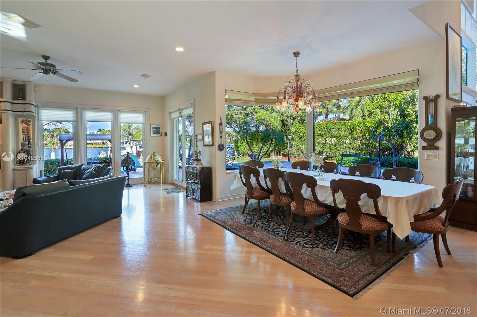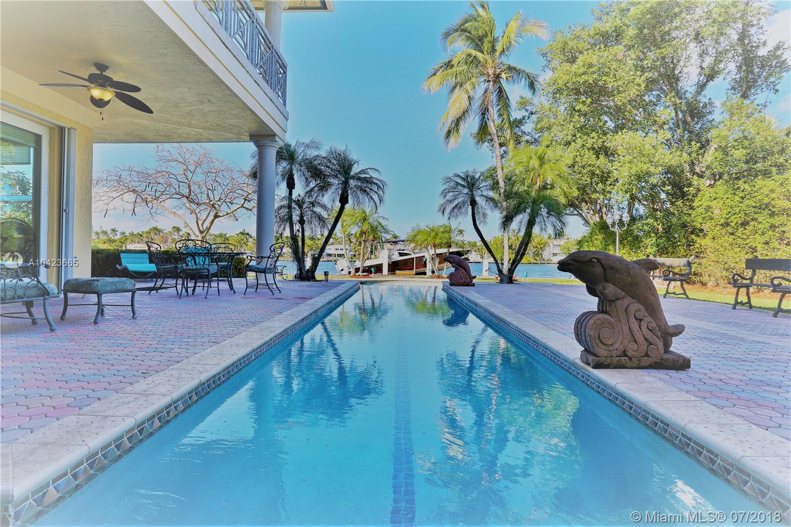 This is a rare opportunity to own a large, one of-a-kind, 100 ft waterfront masterpiece, perfectly located on a lushly landscaped oversized 23,400 SF Lot with over 6000 SF. Property features: Soaring ceiling heights, 5 bed 6.5 baths, 3 rooms are ground level - 2nd floor extra large master suite with huge loft area , additional detached room and bath, 2 car garage , porte cochere entrance , pool side bath, Generator , Impact glass and doors , Hardwood floors thru out, a stylish pool area with 80ft Dock and Boat lift up to 14,000 lbs, AND Gorgeous water views everywhere! Open House Saturday June 9th, 11AM-2PM.