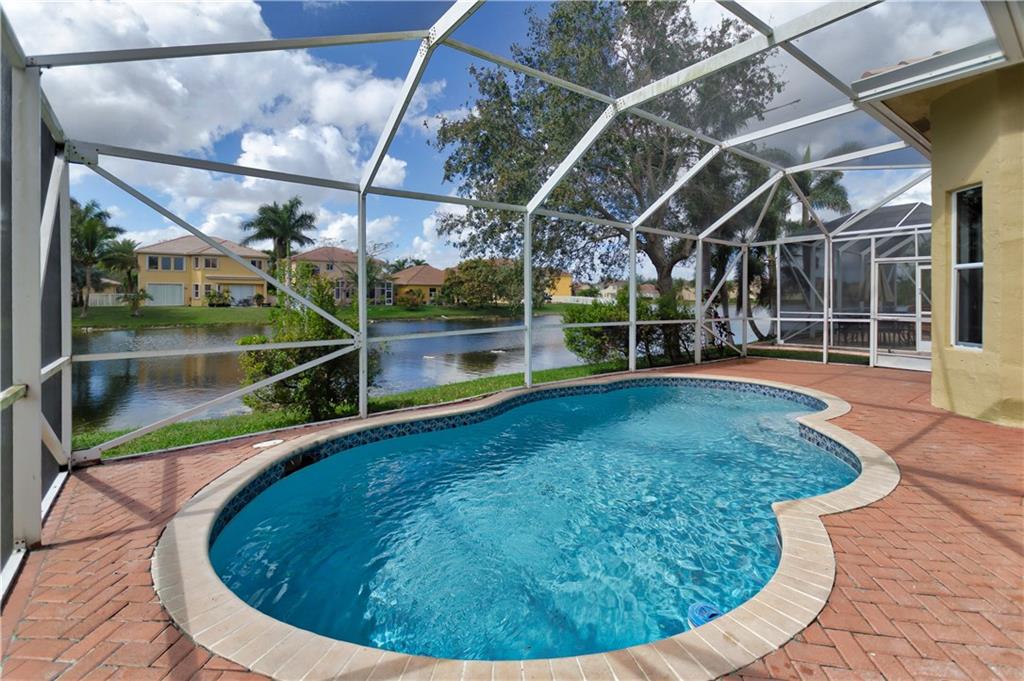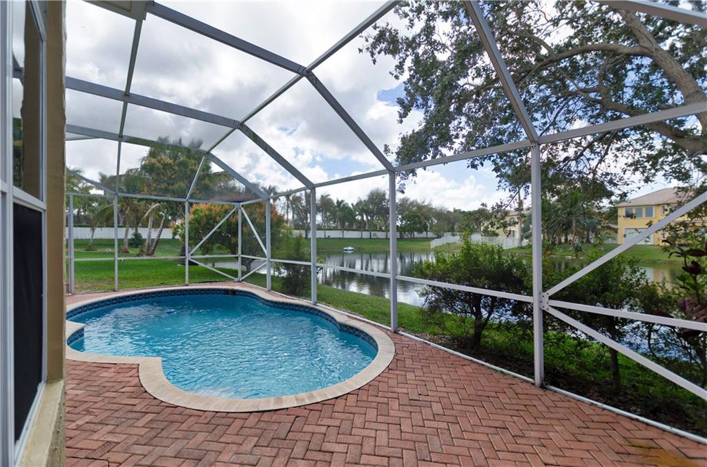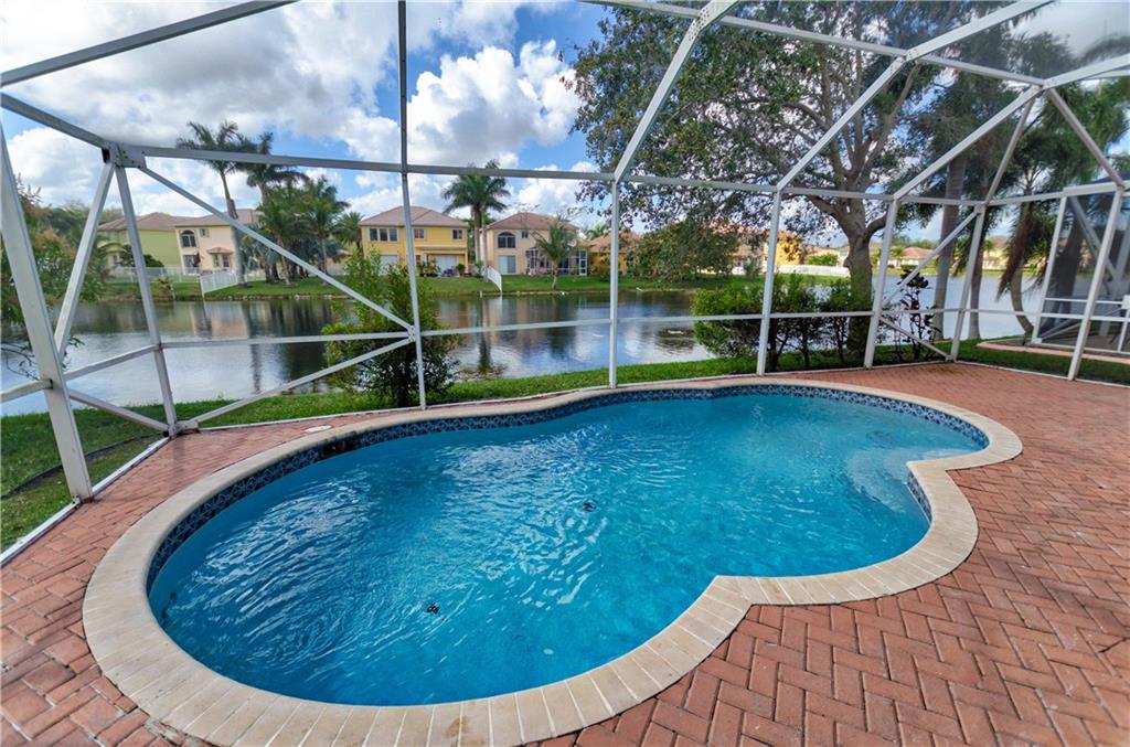 Fabulous lakefront 3 bedroom 2 1/2 bathroom house in exclusive gated Monarch Lakes community! This home has a beautiful private screened in pool nestled away right on the water! Huge, open floorplan, freshly painted inside and out, brand new fantasy brown marble countertops and new stainless steel appliances in kitchen, too much to list! Upstairs has huge loft area and laminate floors. Community also has pool and playground. See it fast, won't last long!