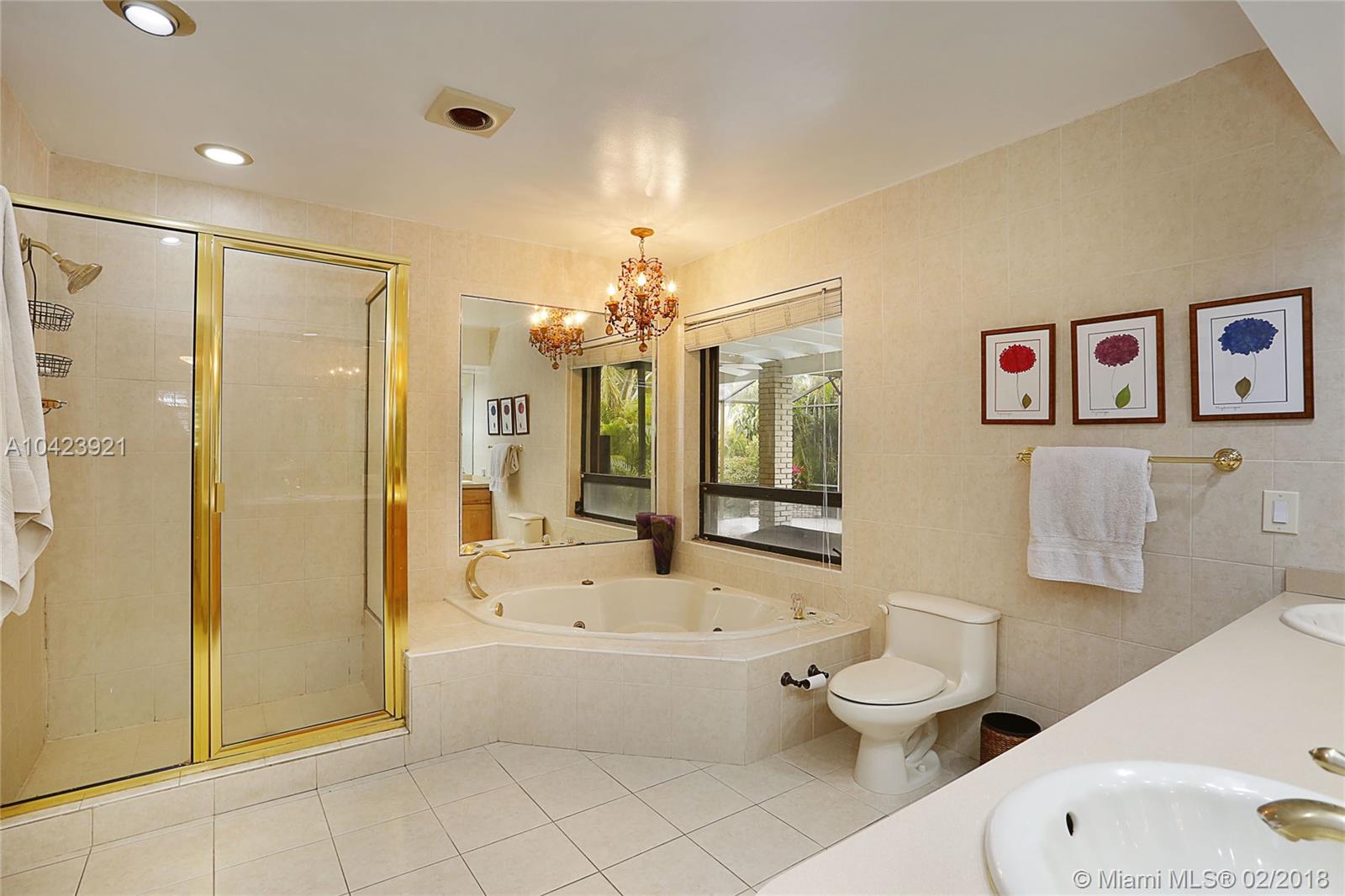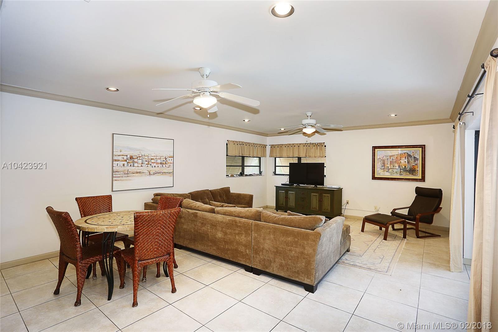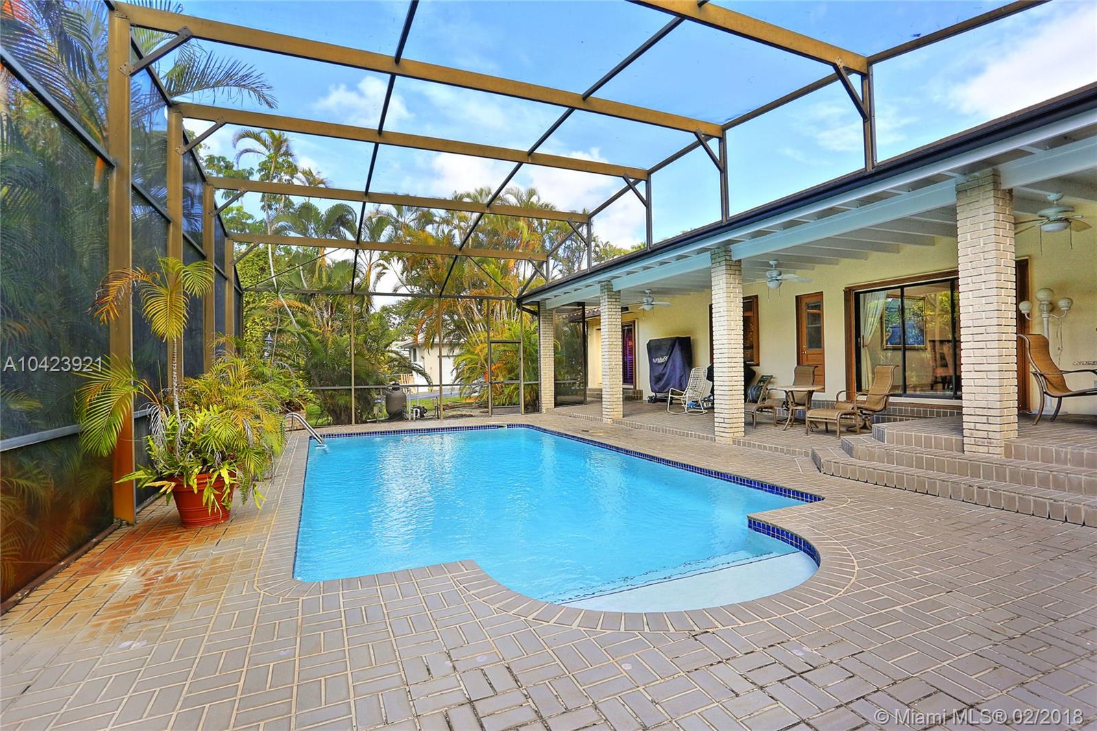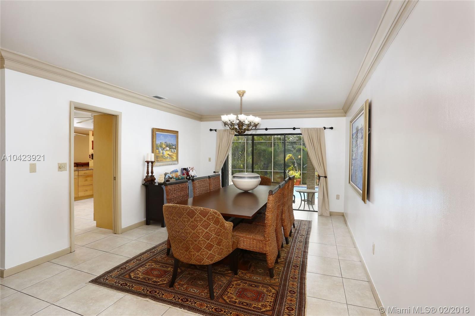Located in guard gated Gables by the Sea, this 3,626 SF, 5 BR, 3 BA home is the perfect opportunity to live in as-is or renovate to perfection in the Pinecrest Elem District! The split-BR floorplan is laid out beautifully w/ the formal liv & din rm open to one another. Kitchen has wood cabinetry, breakfast bar, & pool views from its pass-through window & it is conveniently connected to the large fam room. Step outside through sliding glass doors to the covered patio, screened porch, sparkling pool, and tropical yard! The ample master BR has a sizeable bath w/ dual vanities, soaking tub & separate shower, & 2 walk-in closets. 2 add’l BRs are situated near the master, while the other 2 are on the other side of the house. 2 car gar, 15,376 SF lot, huge laundry rm, newer roof and a/c’s.
