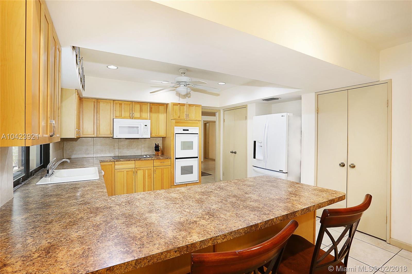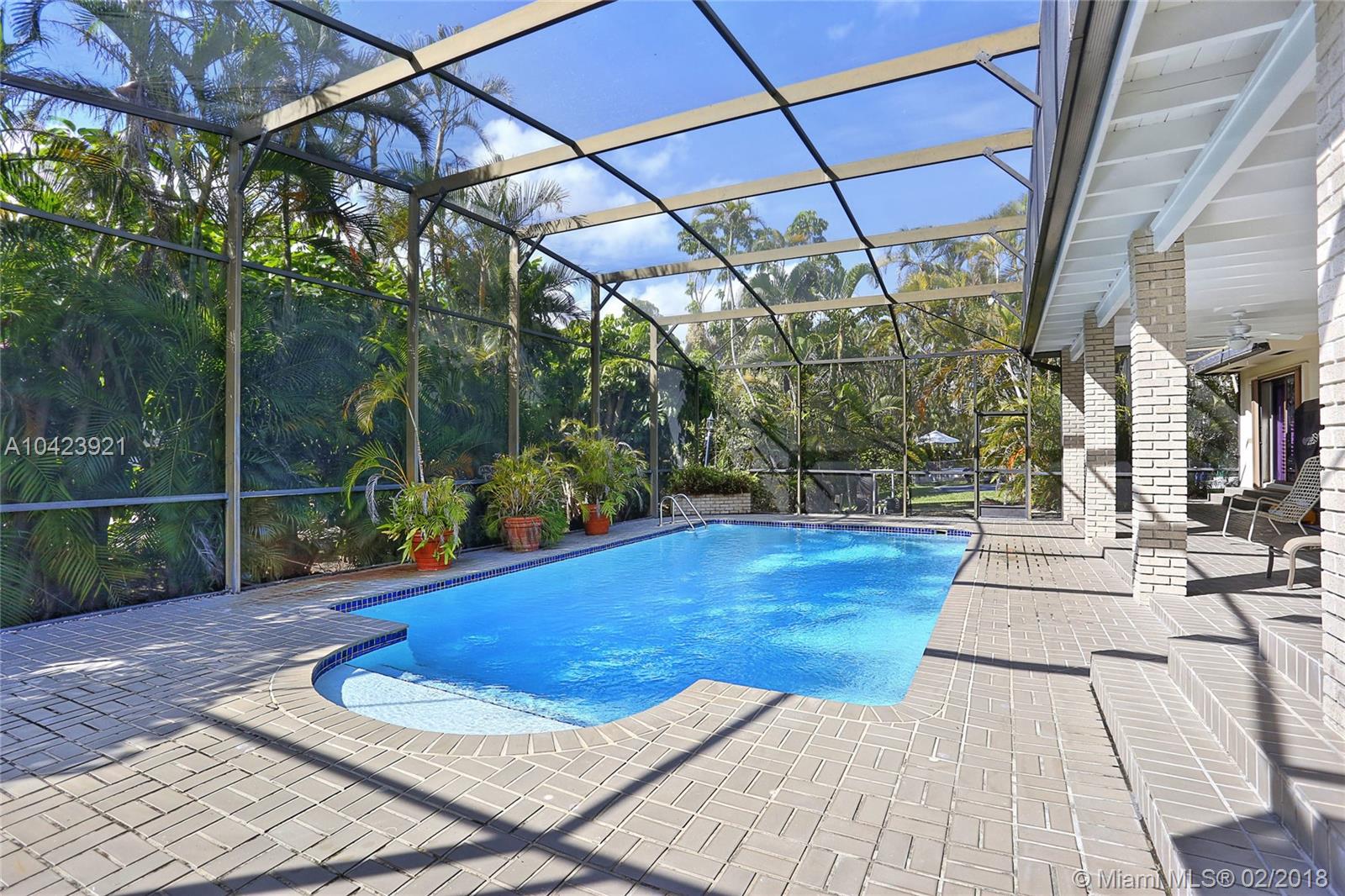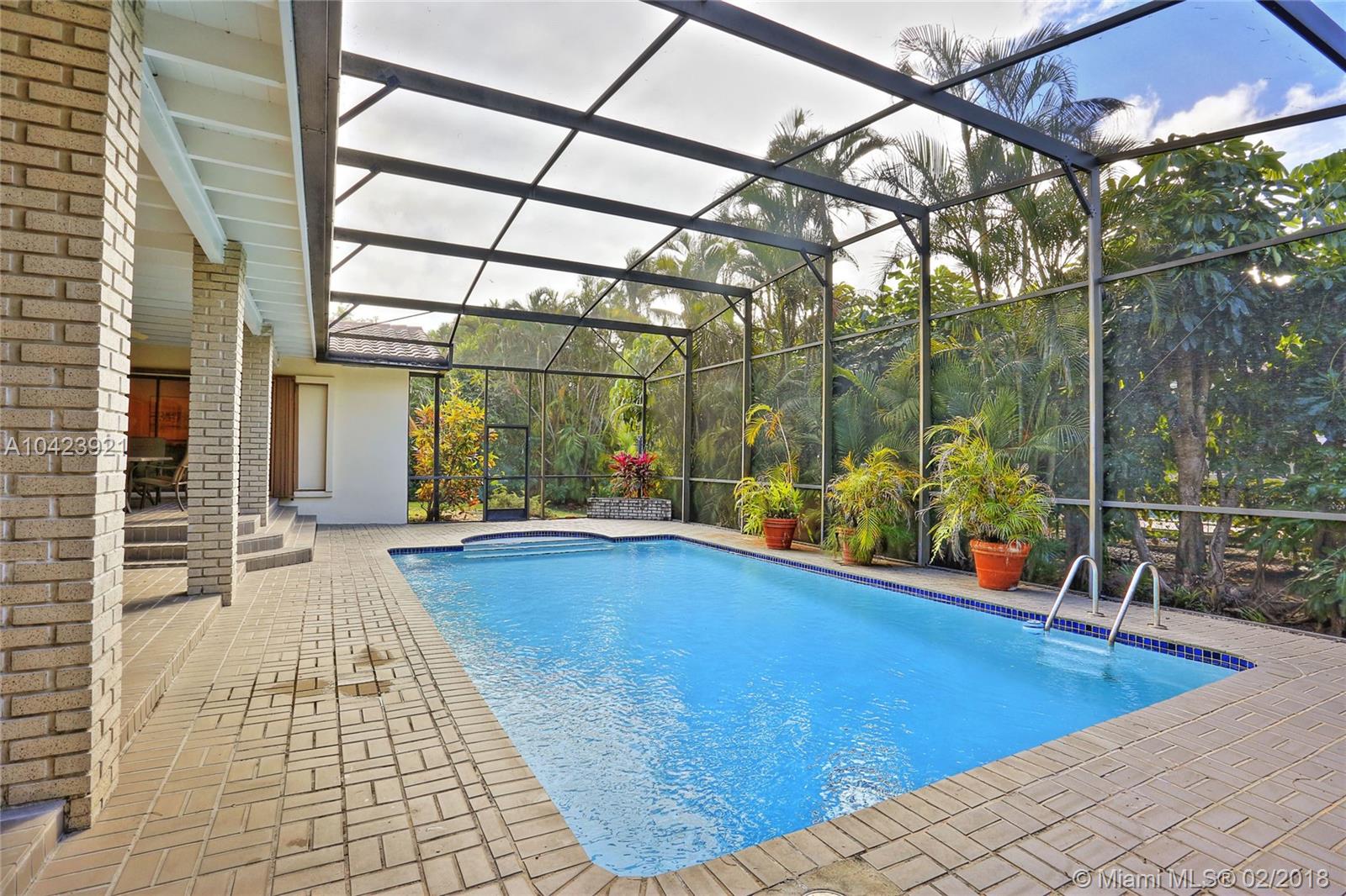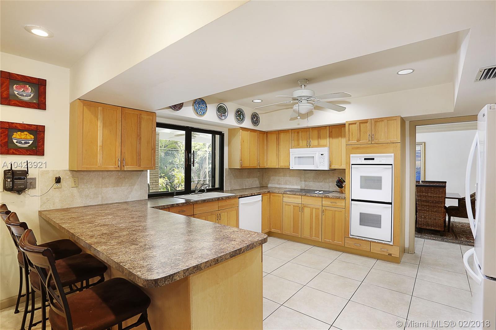Located in guard gated Gables by the Sea, this 3,626 SF, 5 BR, 3 BA home is the perfect opportunity to live in as-is or renovate to perfection in the Pinecrest Elem District! The split-BR floorplan is laid out beautifully w/ the formal liv & din rm open to one another. Kitchen has wood cabinetry, breakfast bar, & pool views from its pass-through window & it is conveniently connected to the large fam room. Step outside through sliding glass doors to the covered patio, screened porch, sparkling pool, and tropical yard! The ample master BR has a sizeable bath w/ dual vanities, soaking tub & separate shower, & 2 walk-in closets. 2 add’l BRs are situated near the master, while the other 2 are on the other side of the house. 2 car gar, 15,376 SF lot, huge laundry rm, newer roof and a/c’s.