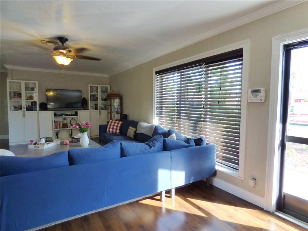 This home will make you smile!! IT IS THE ONE YOU'VE BEEN LOOKING FOR. This sprawling corner lot is private, completely fenced & lushly landscaped with Mango, Aqui & Avocado trees as well as other native trees & plants. Living room is spacious & open & with impact windows all around storm season is a "breeze". The kitchen & baths, doors, baseboards & crown are tastefully updated as are the appliances. There is an indoor laundry room & an energy saving tankless hot water heater! Alarm system wi/ cameras.