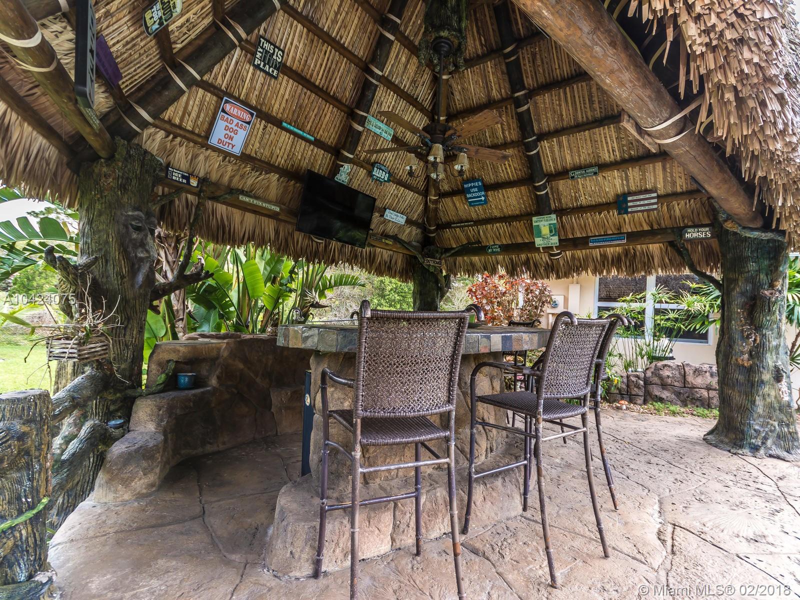 OWNER SAYS SELL !!! Bring your boat, bring your horse, bring your RV, & don't forget the golf cart...they will all fit on this amazing lot! This one story home boasts 4 bedrooms & 3.5 baths and is set up to entertain! With it's north/south exposure, you'll have natural light all day long in every room. Vaulted ceilings, impact glass, 2 a/c units, & separate laundry are just some of the features in your new home. When you step out back, you'll be entering your own private getaway with a freeform pool and spa, outdoor shower,built in charcoal grill, fire pit, and just WAIT until you see this tiki hut and bar!! It truly is an entertainer's paradise. The canal on the east side makes for an easy afternoon of fishing. You're 5 minutes from both 595 & 75, making for a quick commute.
