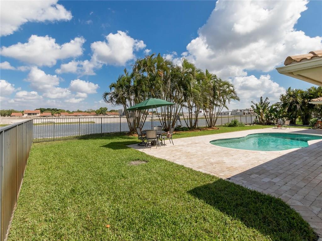 'MODEL AND PICTURE PERFECT' THIS IS A "WOW". OPEN AIRY & BRIGHT CHARMING HOME WITH EXPANSIVE LAKE AND FENCED GARDEN VIEWS FEATURING TUMBLESTONE COVERED PATIO AND ENTRY WAY, TRAVERTINE FLOORING THRUOUT WITH CUSTOM STAINLESS STEEL KITCHEN, MARBLE BATHROOMS, DOUBLE ZONE A/C, 7YR ROOF, CIRCULAR PAVERED DRIVEWAY, TROPICAL LANDSCAPED GARDEN WITH VARIOUS FRUIT AND VEGETABLE TREES, RAINGUTTERS AND "IMPACT WINDOWS & DOORS" THRUOUT. LARGE BEDROOMS WITH CLOSET BUILT-INS. A MUST SEE!!A PLEASURE TO SHOW!!!