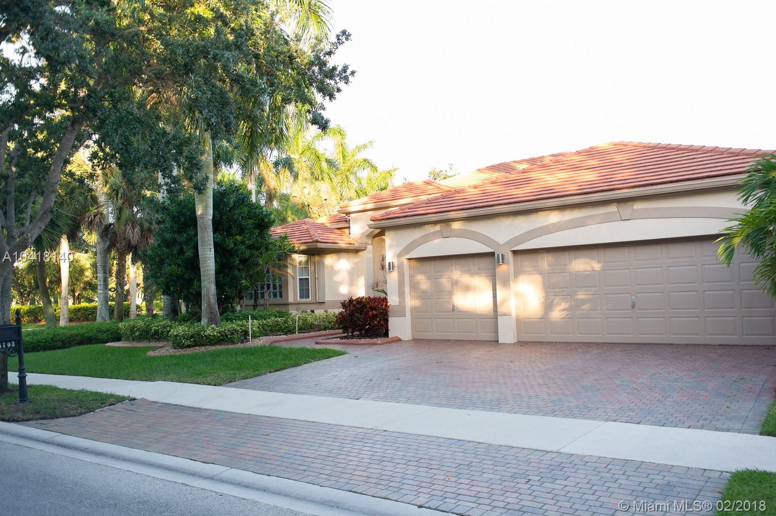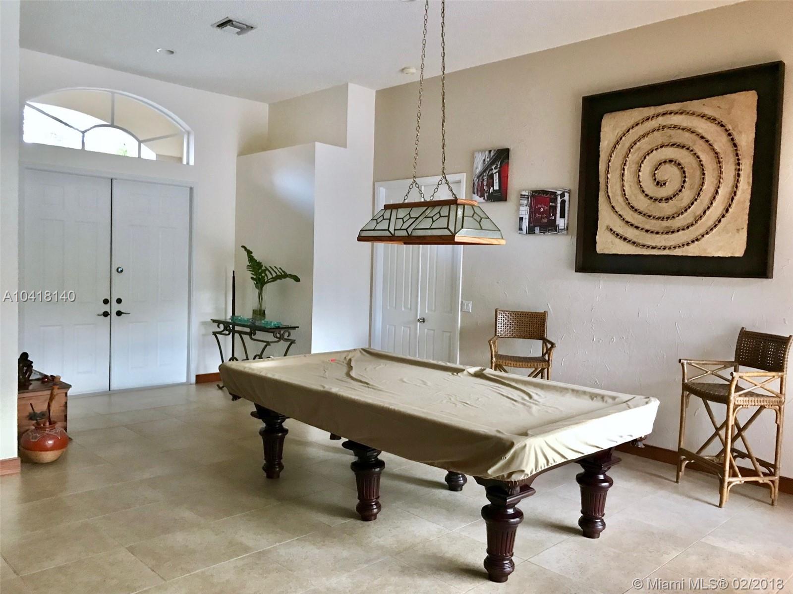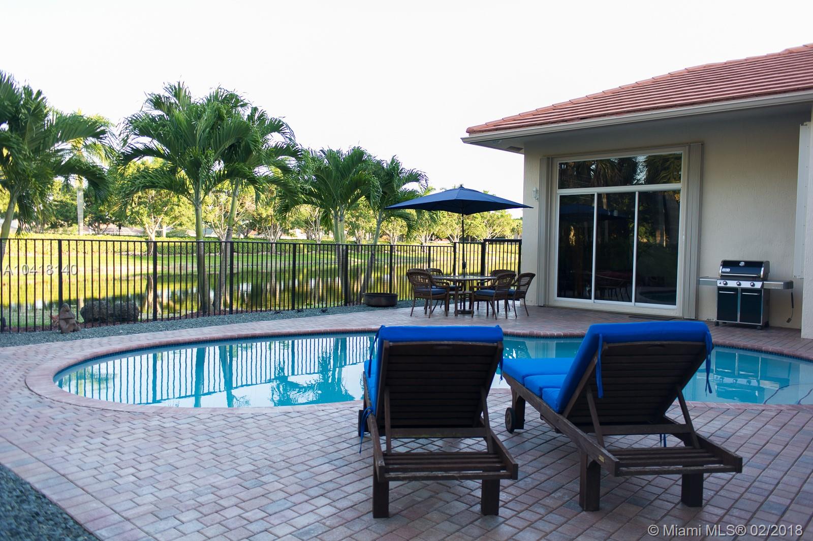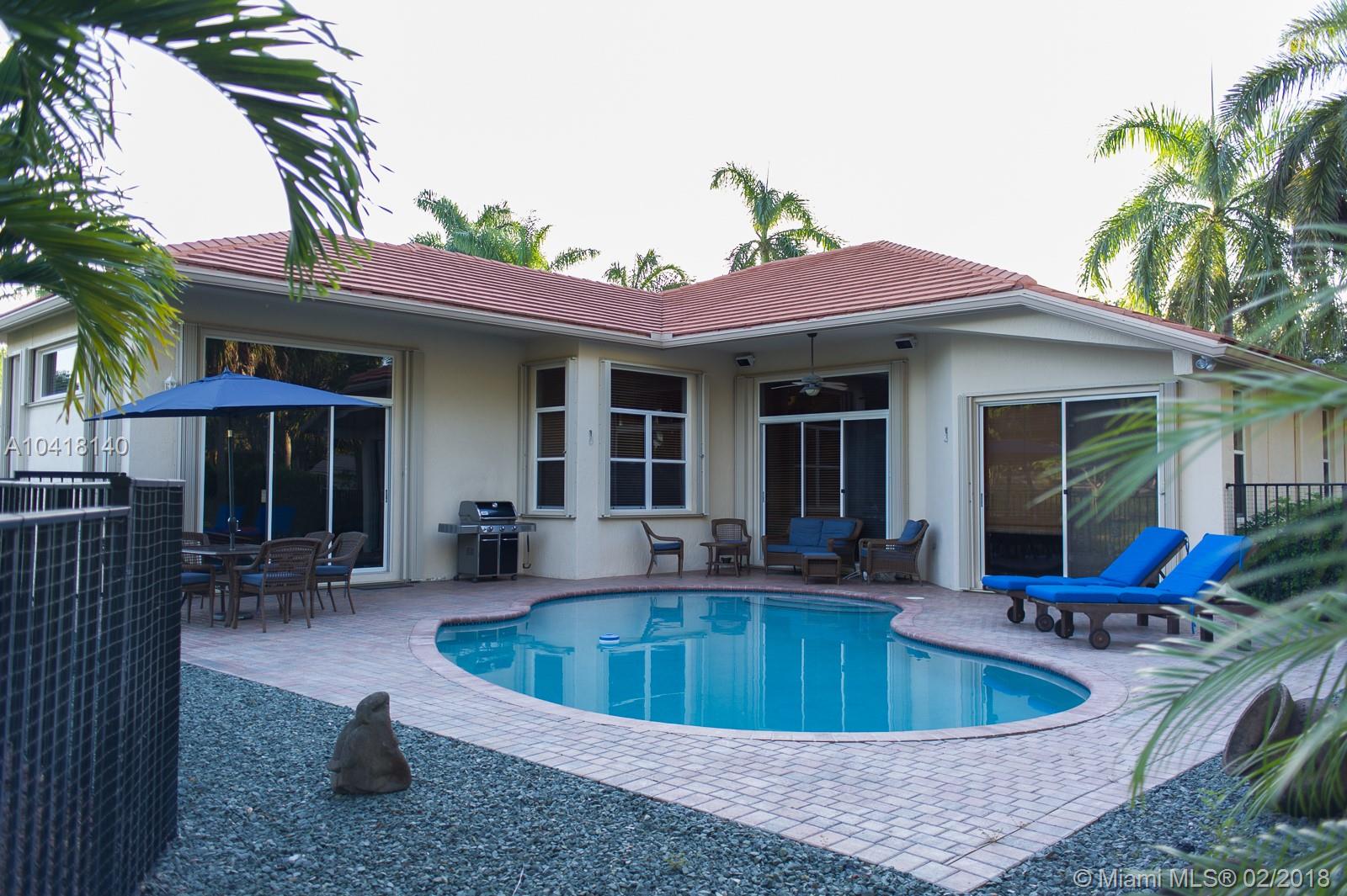 Beautiful corner house in The Ridges. 1 story, 4/3, with pool and a only one neighbor. Tile floor in living areas, wood and laminated in the rooms. Master bath is huge and in some cases it was originally build as a 5th room by builder. 2nd and 3rd bedroom share a bathroom and 4th bedroom has a cabana bath. EXTENDED FAMILY ROOM!! Diamond Brite two years old. READY TO MOVE IN EASY TO SHOW