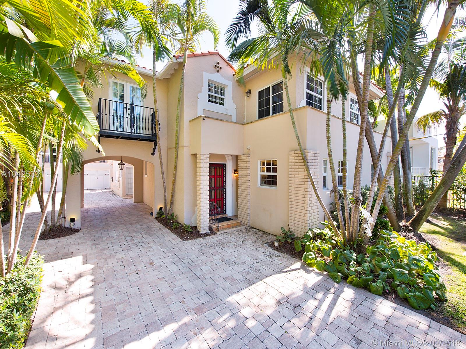 This is one of the most sought after locations in all of Miami Beach, the southernmost part of North Bay Rd. Sunset Harbor Shops & all the restaurants & shopping is literally 1 block away, yet this home is situated on a quiet Residential street with the Who's Who as Neighbors. This spectacular home is from a great decade for construction, full of architectural design & appeal. Included w/the large 2 story main house (4BR's, 4BA's, Den, Formal Living, Formal Dining, Bonus area off kitchen, Roof terrace) is a detached 2 car garage with full bathroom for pool guests on the ground level, and a residential space above with kitchenette, full bath, closet & balcony (great as an office, bonus room, or ideal for short term guests). Amazing pool with BBQ area, fully secured. Call to schedule a tour!