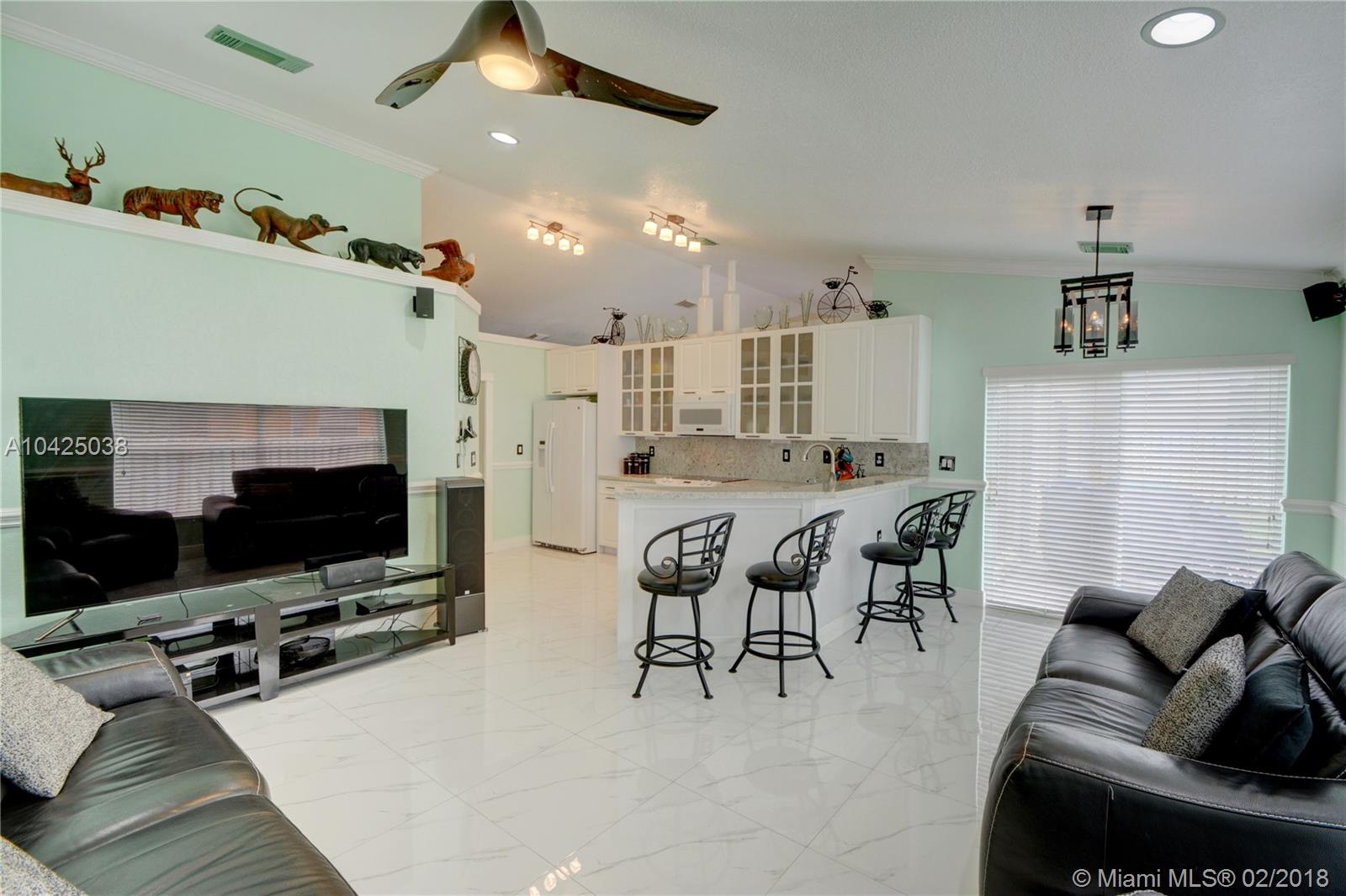 3 bedroom-2 bath impeccably update home with 2 car garage mostly-fenced yard nestled on a beautiful tree-lined street! Recently remodeled kitchen & bath! Superb location! Literally minutes to Pembroke Lakes Mall & Pembroke Gardens Mall. Centrally located. Close to I-75! Close to CB Smith Park! Accordion Shutters! New Roof in 2008! Pre-Approved Buyers only. Family room ceiling fan & chandelier/light fixture do not convey.