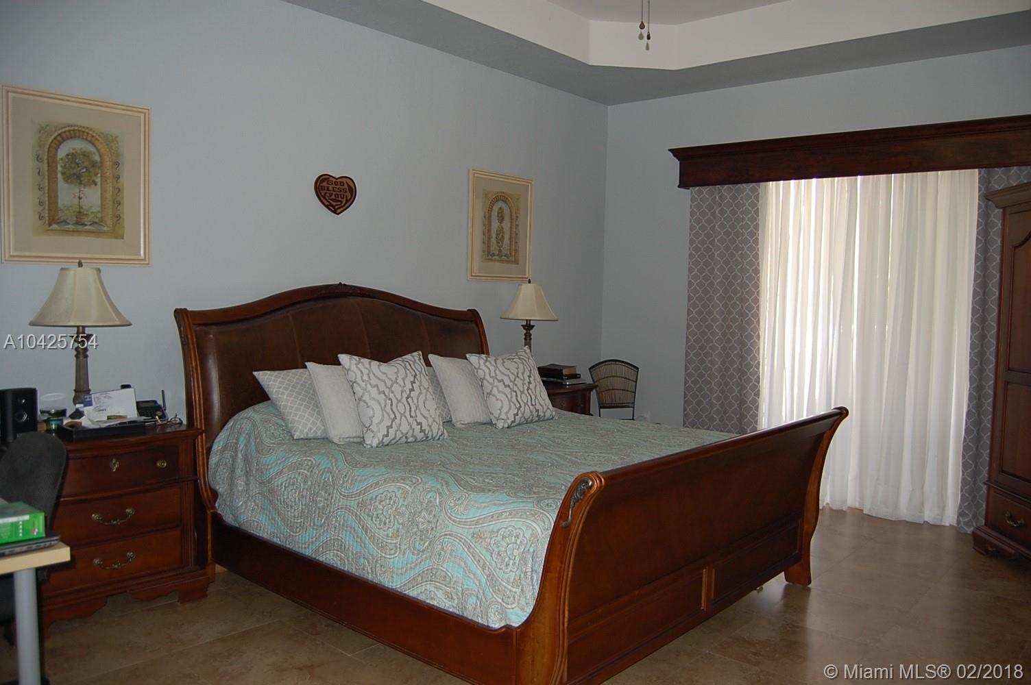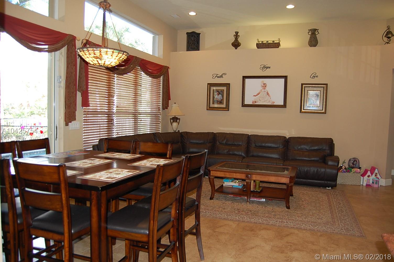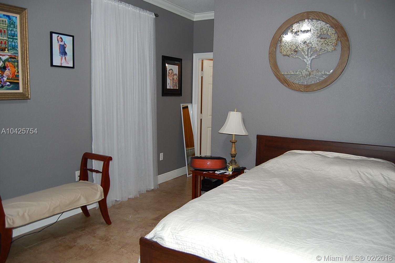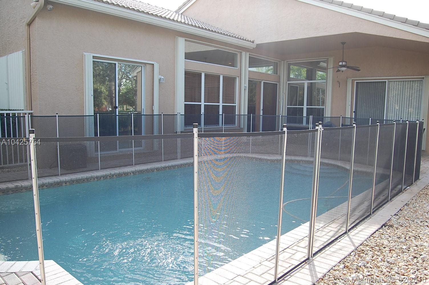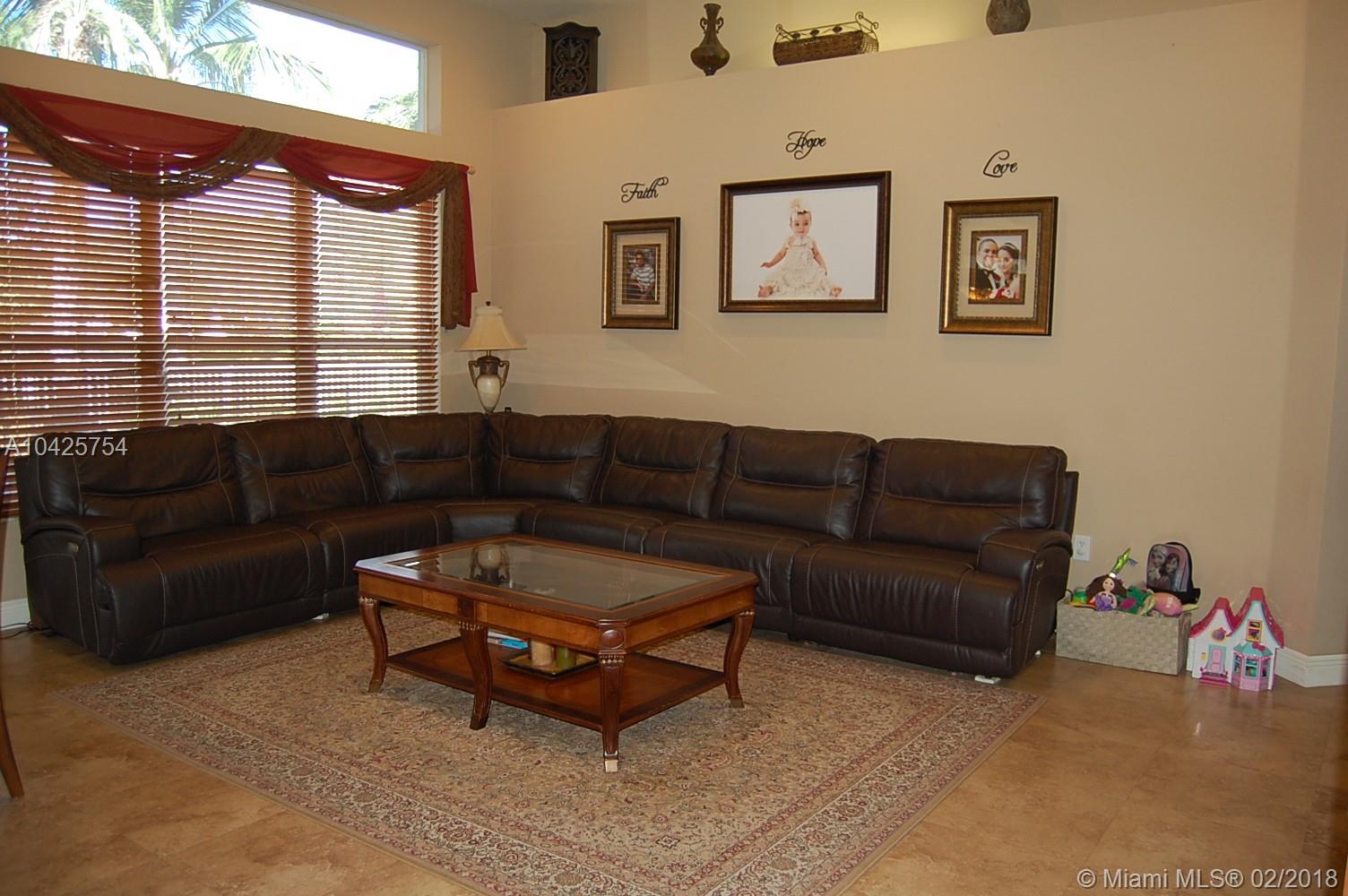 Magnificent 5 bedroom, 3 bath corner lot home with pool & fully updated kitchen, flooring & bathrooms. Exquisite Master bathroom with marble shower, His & Hers quartz top vanities & gorgeous tub. Feels & looks like a fabulous spa! This beautiful home features a three-way split bedroom plan, volume ceilings, open concept family room & kitchen, porcelain flooring, Jack & Jill bathroom, crown molding, accordion shutters. You'll love the covered patio area with brick pavers & a sparkling clean pool. This home is perfect for a large family. Sunset Lakes is a gated community w/ 24-hr manned security, multi-million dollar Clubhouse pool, gym & amenities. Close to A-rated schools, shopping & major highways.