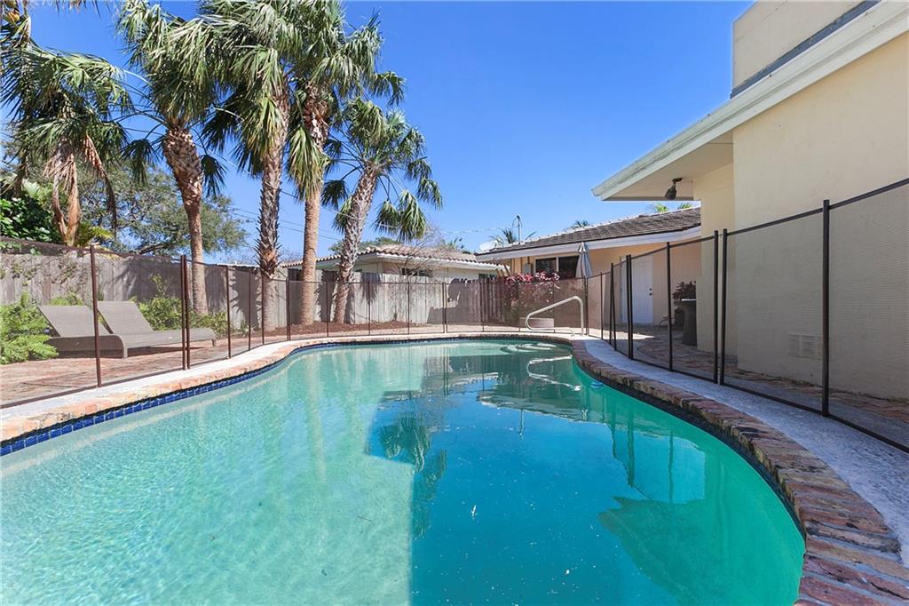 Live the Florida dream on this oversized corner lot minutes away from the beach. Immaculate/move in ready. New High Impact windows/doors. Grand open layout w/ wood floors throughout. Gorgeous sun-filled Florida room. Chef kitchen w/ high end appliances. Private backyard feat. a sparkling pool nestled in lush landscaping. Large side yard. 3 huge bdrms w/ large windows shining in tons of light. Gorgeous master bath with all the finishings. 2 car garage w/ bonus storage room. New dishwasher & washer/dryer.