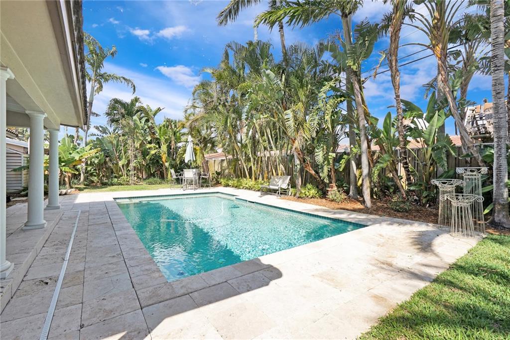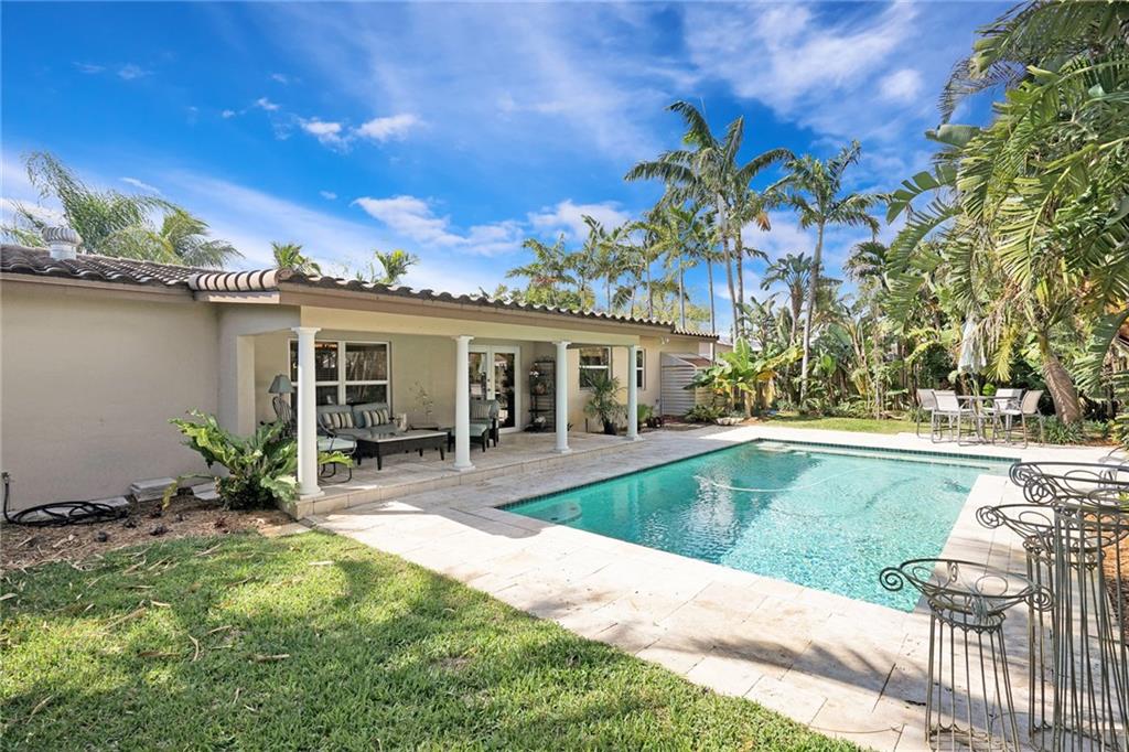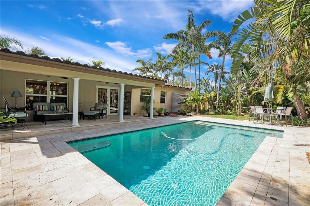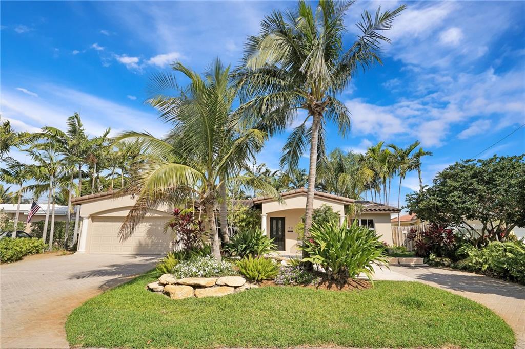 This is not the average house! This wonderful 2Bed+Study/2Bath/2CG home has great curb appeal from the paver driveway, the lovely, custom entrance, impact windows & mature landscaping. Enter to an elegant home, complete with a gourmets kitchen appointed with gorgeous cabinetry, quartz counter tops, a gas stove & top of the line appliances! A beautiful backyard, covered patio & huge Travertine pool area ready for entertainment. This is a must see, call for showing today! Located in HOT Coral Ridge Isles!