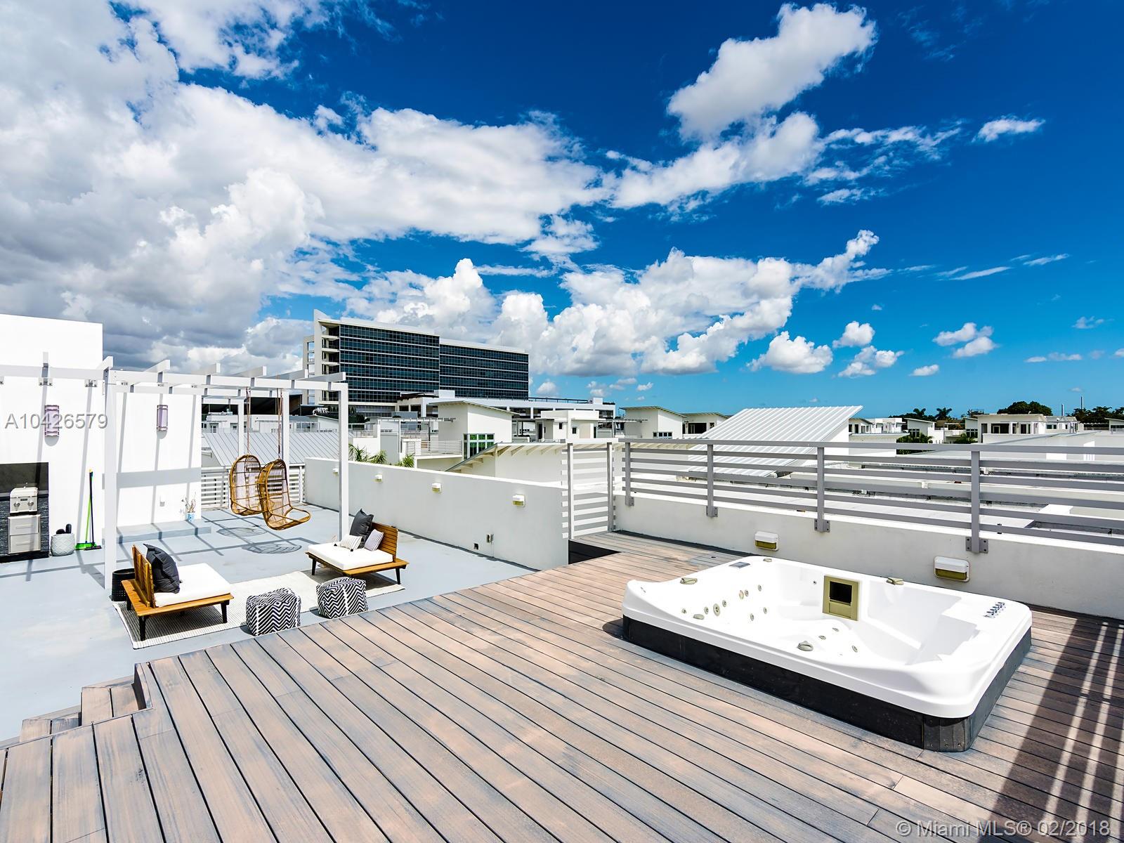 Largest & BEST 3-story corner lot on the market with roof-top deck & outdoor kitchen nestled in most desired location in Doral. Close to nightlife & shops, this home has it all! Located in gated community with 24 hour security. Decorated & styled by local interior designer. Property features impact windows & doors, elevator, wine cellar, open-living floor plan, Italian kitchen cabinets, quartz counter tops & backslash, large island, high end stainless steel appliances & cook top, large custom closets, designer cabinets, fixtures, spa master bath w/ his & her vanities & soaker tub, porcelain tiles, wood floors, security system, high energy efficient a/c, smart cable wiring. 1 full bedroom & bath downstairs. Large roof top terrace with cabana bath, kitchen & jacuzzi. *Furniture negotiable*