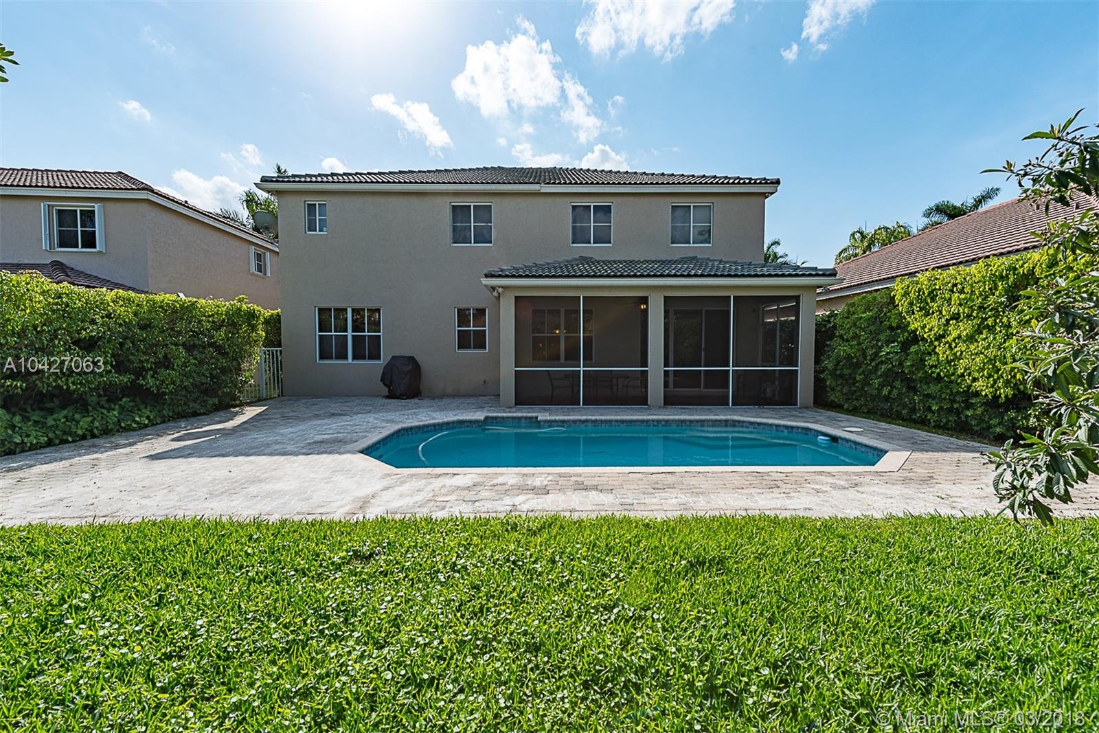 CURB APPEAL!SAVANNA AT WESTON-POOL HOME WITH 6 BEDROOMS, 4 FULL BATHS, A HUGE BONUS ROOM AND 3 CAR GARAGE.ONE BEDROOM AND ONE FULL BATH ON MAIN LEVEL.UPGRADED KITCHEN FEATURES GRANITE COUNTERS, ISLAND,STAINLESS APPLIANCES,BREAKFAST AREA AND PANTRY. FORMAL DINING AND LIVING ROOMS, FAMILY ROOM, SEPARATE LAUNDY ROOM,SCREENED COVERED PATIO. TILE DOWN AND LAMINATE ON STAIRS AND 2ND FLOOR. 6TH BEDROOM IS CURRENTLY USED AS OFFICE OFF MASTER BEDROOM. ENJOY THE SAVANNA CLUBHOUSE AMENITIES.