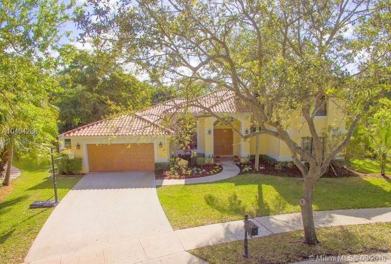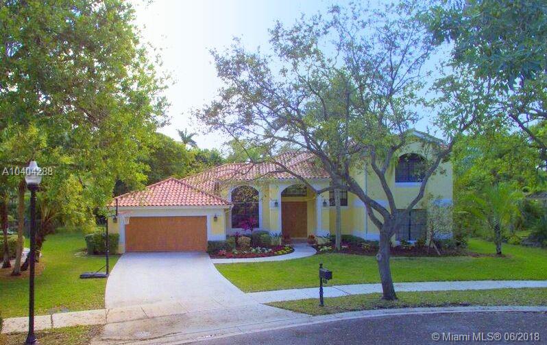 Beautifully maintained, freshly painted two-story 5/4/2CG situated in cul-de-sac in charming boutique Weston comm! Large kitchen, granite with long snack bar, stainless appli, beautiful fixtures, updated bathrooms, new a/c & water heater, pool with heated spa (new), outdoor living, backyard is incredible, lush landscaping, shrubs around entire property, your own private oasis retreat! Magnificent Peace Mound Park, close to highways, 24HR guard gate, A+ schools. WELCOME HOME!