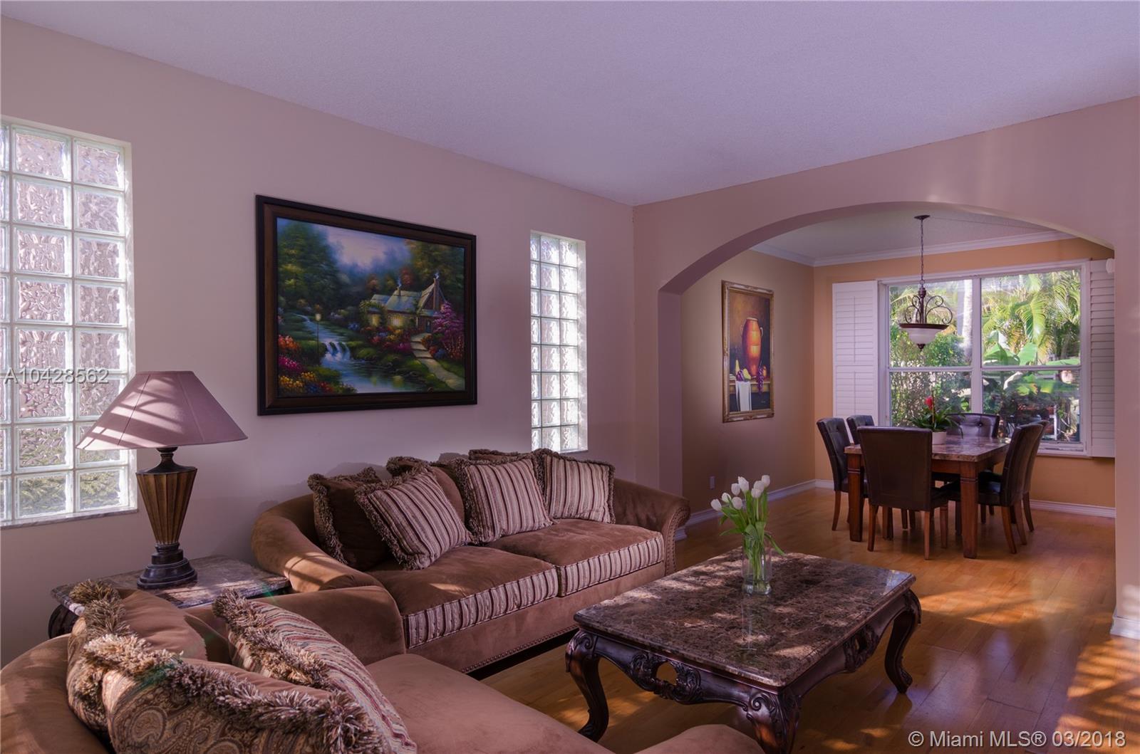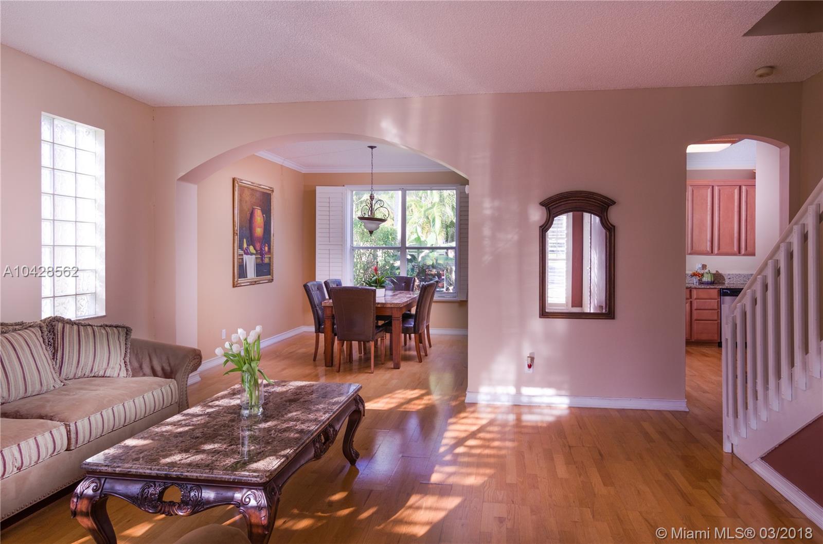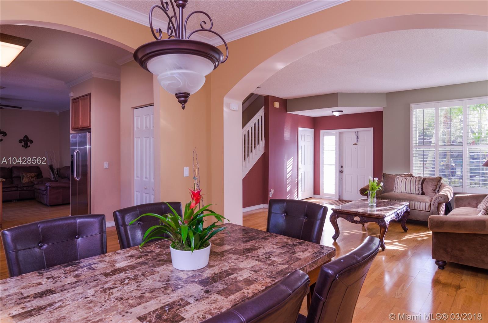 Beautiful 4 bedroom and 2.5 bath at Opal Creek in Weston!! Gated Community. 2 car garage. Open floor plan with formal dining and living areas. Crown molding. Kitchen with granite countertops and stainless steel appliances. Renovated Bathrooms. Master Bathroom with spa Jacuzzi tub. Hardwood floors down stairs and carpet upstairs. Family room off the kitchen leads to a private backyard. Large walk-in closet in Master bedroom. Community offers manned gate, pool, child playground. 24/7 security guard. Located near I-75, Low HOA, GREAT LOCATION!!! GREAT SCHOOLS!!!GREAT NEIGHBORHOOD!!