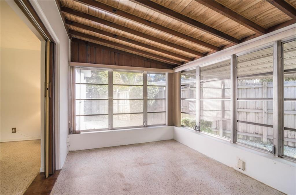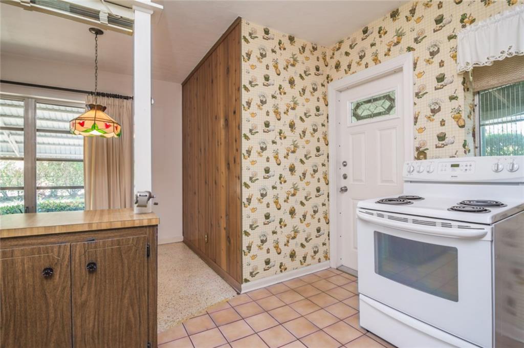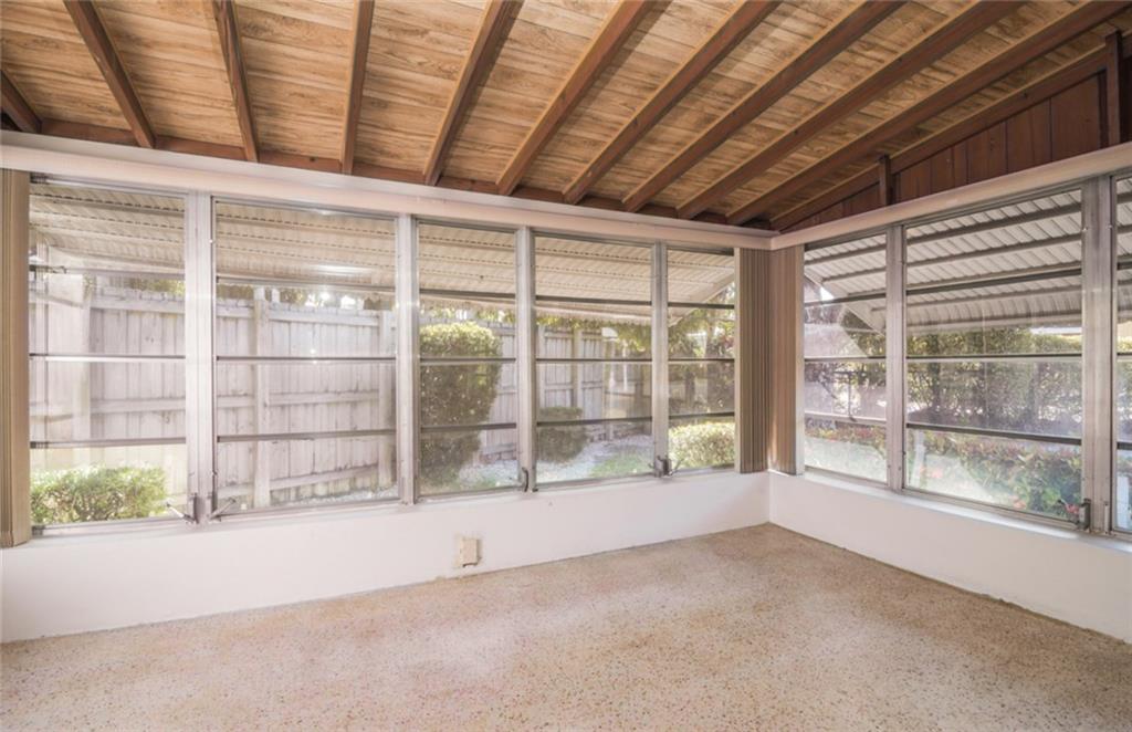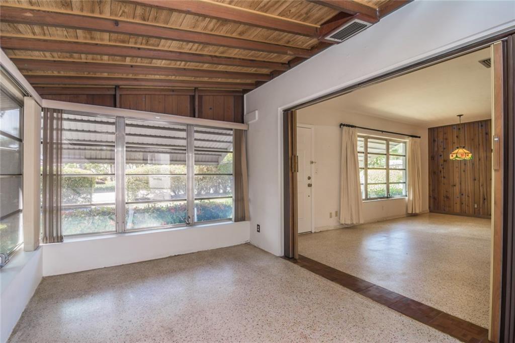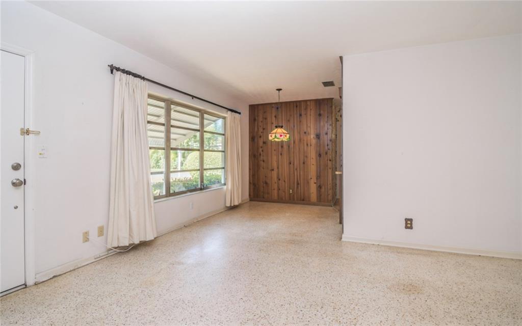 ORIGINAL OWNER PURCHASED THIS HOME AS NEW CONSTRUCTION IN 1952 FROM GILL BUILDERS, A HIGHLY REPUTABLE BUILDER OF THIS STYLE HOME IN THE AREA, AT THAT TIME...SET ON A PICTURESQUE CORNER LOT, THIS HOME IS SCREAMING WITH POTENTIAL FOR IT'S NEW OWNERS...TERRAZZO FLOORS COVERED WITH CARPETING FOR 65 YEARS!..NOT TACKED DOWN, CARPET JUST ROLLS AWAY...2 BEDROOMS, ONE BATH, AND A WOOD BEAMED CEILING IN THE FLORIDA ROOM, SURROUNDED BY WINDOWS...HUGE FRONT WINDOW OVERLOOKS THE WELL MANICURED YARD...ATTACHED CARPORT.