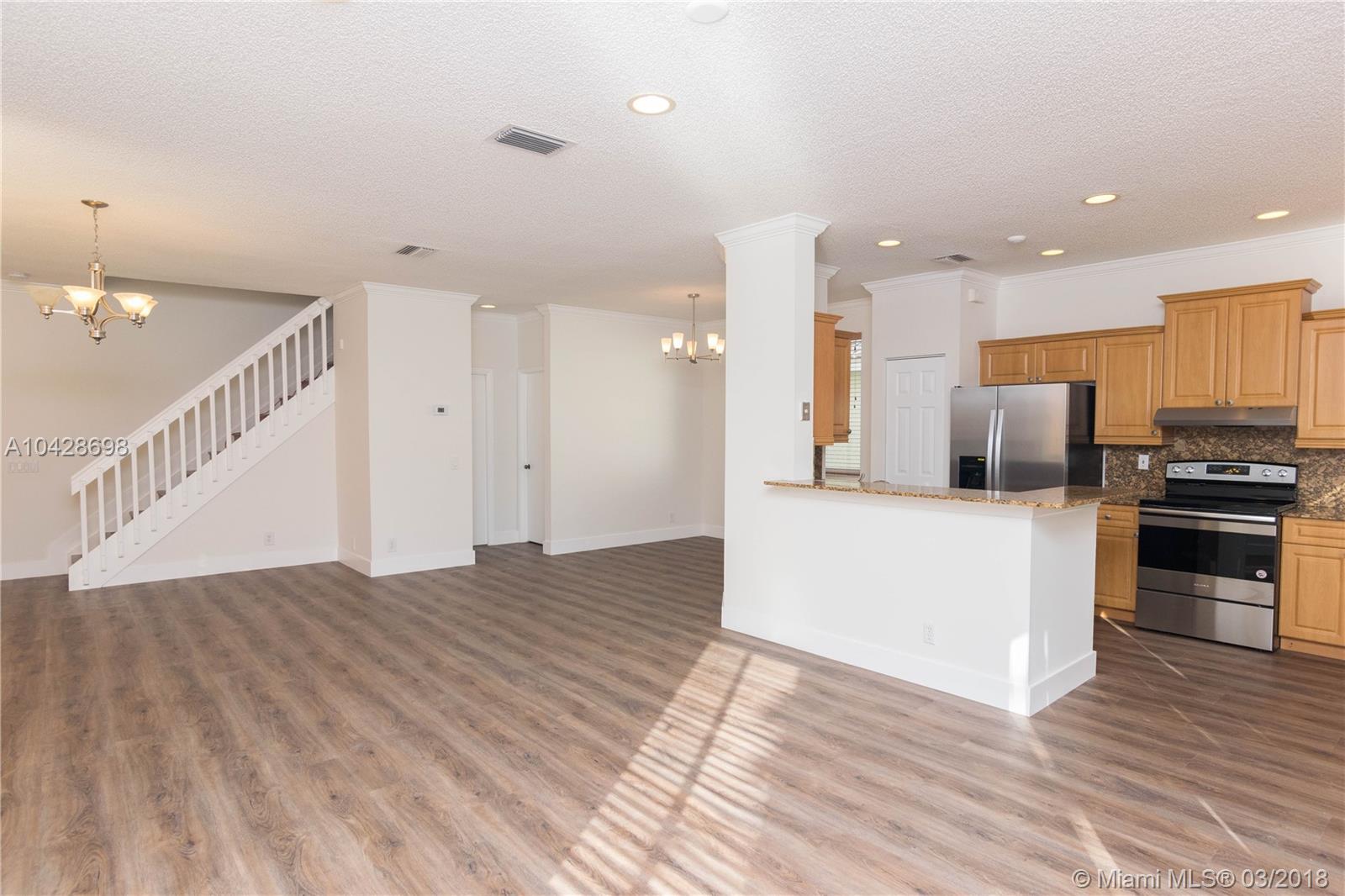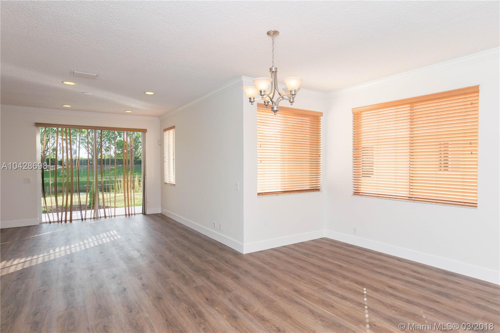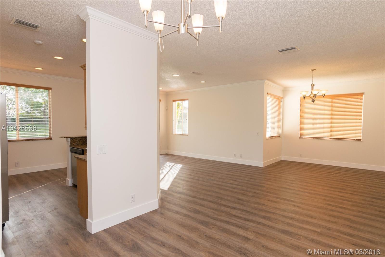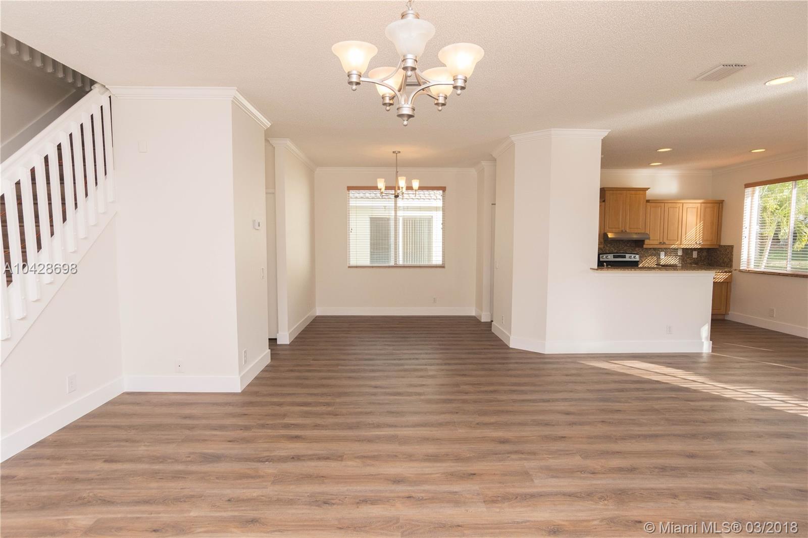 Open and modern layout with a wide and beautiful lake view. Waterproof laminated floors and brand new stainless steel appliances. Comfortable four bedrooms and brand new bathrooms. Freshly painted in and out. Great community plenty of amenities for children and family gathering. Walk distance to some of the greatest schools in Broward County. This is your dream house. You will love it!