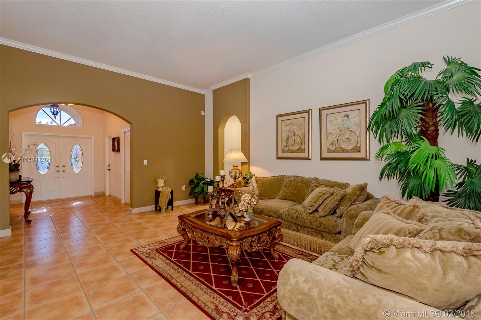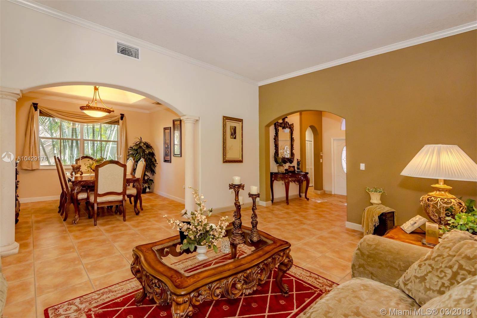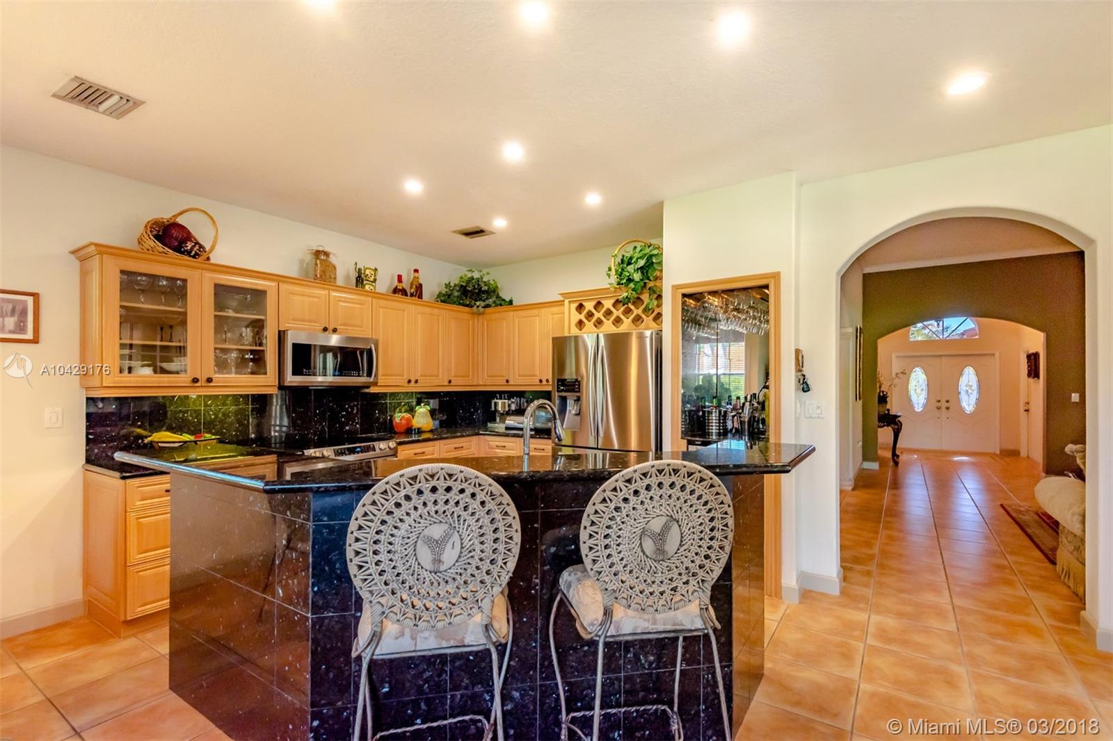 Spectacular home on cul-de-sac. More than 50K in upgrades! Open kitchen with new top of the line stainless steel appliances, mini bar with wine cooler and granite counter tops/backsplash/kitchen island. Completely upgraded new bathrooms with frameless glass showers enclosure and master bath with Jacuzzi. New washer and dryer, crown moldings, elegant light fixtures, tile flooring thru-out, surround sound, LED hi-hats thru-out, new tankless water heater, new A/C unit. Garage used as 4th bedroom (easy to convert back). Gorgeous oversized fenced backyard, stylish patio with custom pergola, Jacuzzi for 6 people, Keystone tile on terrace, stone veneer on columns/walls and professional landscaping, perfect for entertaining. Great location! Close to everything.