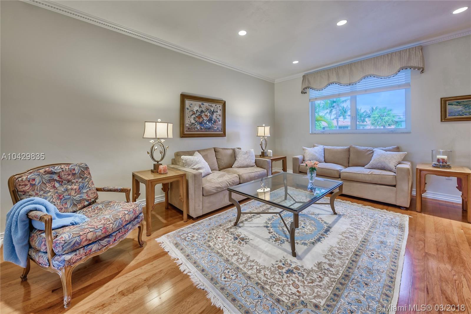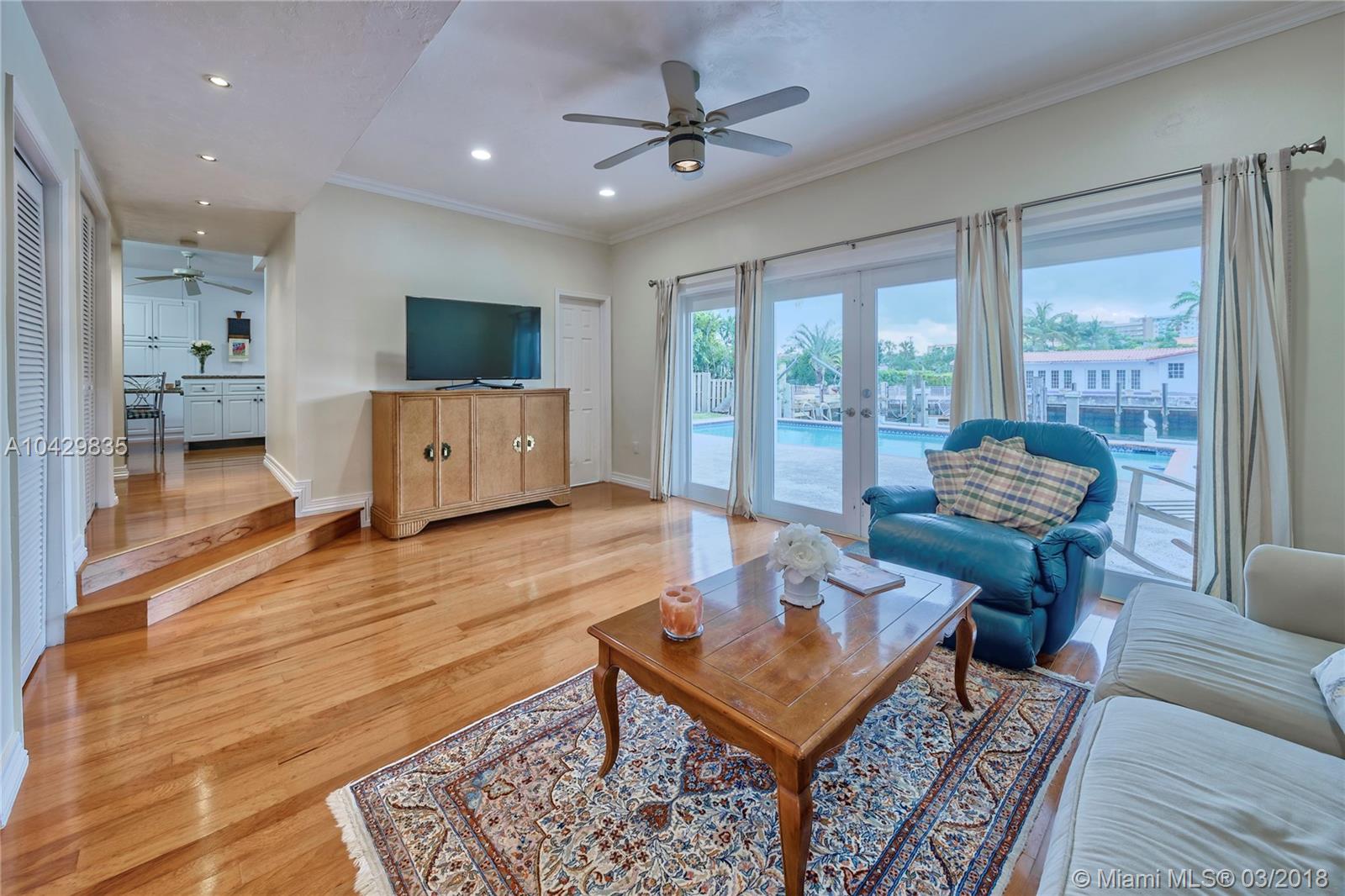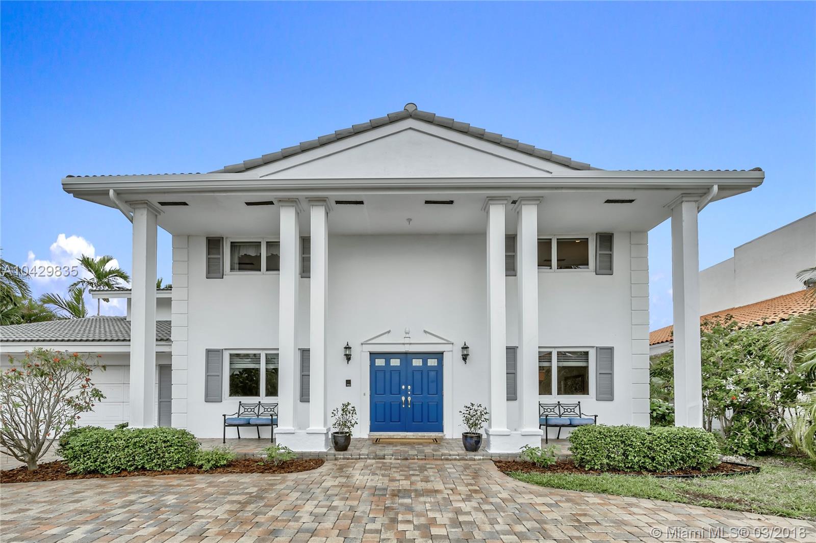 Walk to the beach from this beautiful 5 bed/4 baths waterfront home. 1st floor has foyer entry, guest full bath, living, family, & dining rms. Open kitchen w/granite counters & backsplash overlooking water. Wood flooring. Room w/full bath perfect for in-law/maids quarter. 2nd floor has 4 bedrooms plus an oversized master suite w/large walk-in closet with built-in shelves. Master bath has marble tub & separate shower. Enjoy a large outdoor terrace from 2nd floor bedrooms, with exterior spiral staircase down to pool deck. Covered patio, BBQ area, & swimming pool. 55 ft of water frontage, with newly redone 27 ft wide dock. No fixed bridges to ocean. 2-car garage & circular driveway. Recent upgrades: new roof in 2015, pool pump & filters, & several impact resistant glass windows.