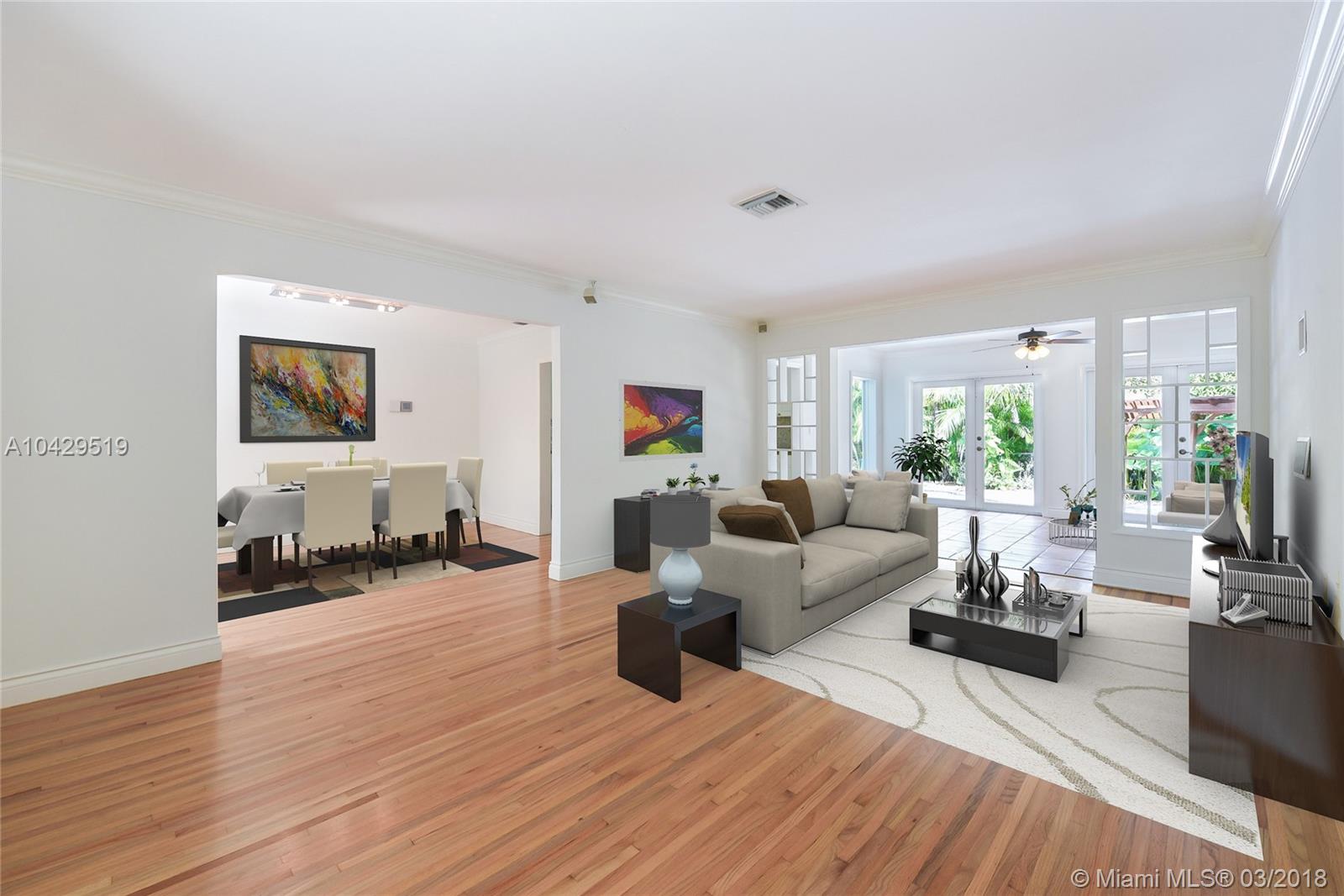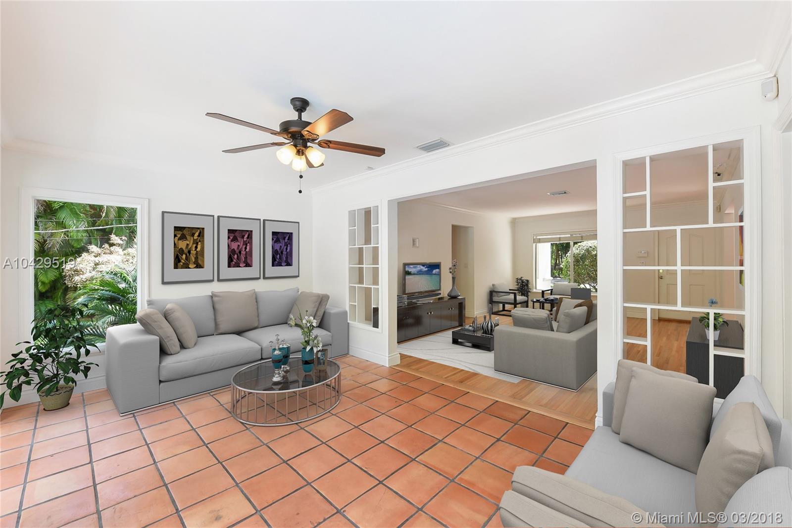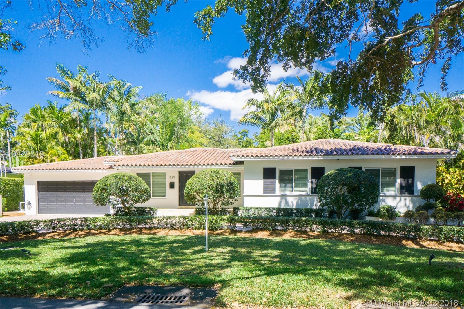 It's the one you've been waiting for! Picture perfect home on quiet, tree-lined Mendavia Avenue just a rock throw from Alhambra Park. Great social spaces include large formal living AND dining rooms, plus great fam room w/ spectacular pool & garden views - a magnificent home for entertaining inside & out! Updated features include wood & granite kitchen, renovated baths, newly re-finished hardwd floors, & impact glass. Lush landscaping, brick paver driveway, & oversized 2-car garage are icing on the cake!